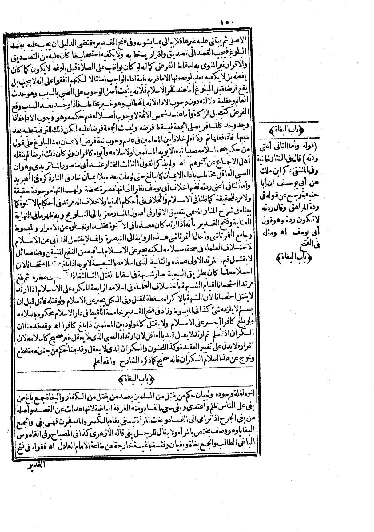 (بَابُ الْبُغَاةِ) أَخَّرَهُ لِقِلَّةِ وُجُودِهِ وَلِبَيَانِ حُكْمِ مَنْ يُقْتَلُ مِنْ الْمُسْلِمِينَ بَعْدَ مَنْ يُقْتَلُ مِنْ الْكُفَّارِ وَالْبُغَاةُ جَمْعُ بَاغٍ مَنْ بَغَى عَلَى النَّاسِ ظَلَمَ وَاعْتَدَى وَبَغَى سَعَى بِالْفَسَادِ وَمِنْهُ الْفِرْقَةُ الْبَاغِيَةُ لِأَنَّهَا عَدَلَتْ عَنْ الْقَصْدِ وَأَصْلُهُ مِنْ بَغَى الْجُرْحُ إذَا تَرَامَى إلَى الْفَسَادِ وَبَغَتْ الْمَرْأَةُ تَبْغِي بِغَاءً بِالْكَسْرِ وَالْمَدِّ فَجَرَتْ فَهِيَ بَغِيٌّ وَالْجَمْعُ الْبَغَايَا وَهُوَ وَصْفٌ يَخْتَصُّ بِالْمَرْأَةِ وَلَا يُقَالُ لِلرَّجُلِ بَغِيٌّ قَالَهُ الْأَزْهَرِيُّ كَذَا فِي الْمِصْبَاحِ وَفِي الْقَامُوسِ الْبَاغِي الطَّالِبُ وَالْجَمْعُ بُغَاةٌ وَبُغْيَانُ وَفِئَةٌ بَاغِيَةٌ خَارِجَةٌ عَنْ طَاعَةِ الْإِمَامِ الْعَادِلِ اهـ. فَقَوْلُهُ فِي فَتْحِ الْقَدِيرِ