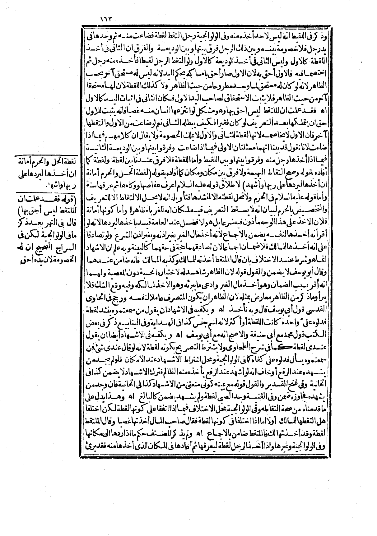 وَيَكْفِيهِ فِي الْإِشْهَادِ أَنْ يَقُولَ مَنْ سَمِعْتُمُوهُ يَنْشُدُ لُقَطَةً فَدُلُّوهُ عَلَيْهَا وَاحِدَةً كَانَتْ اللُّقَطَةُ أَوْ أَكْثَرَ لِأَنَّهُ اسْمُ جِنْسٍ كَذَا فِي الْهِدَايَةِ وَفِي الْيَنَابِيعِ ذُكِرَ فِي بَعْضِ الْكُتُبِ قَوْلُ مُحَمَّدٍ مَعَ أَبِي حَنِيفَةَ وَالْأَصَحُّ أَنَّهُ مَعَ أَبِي يُوسُفَ اهـ.