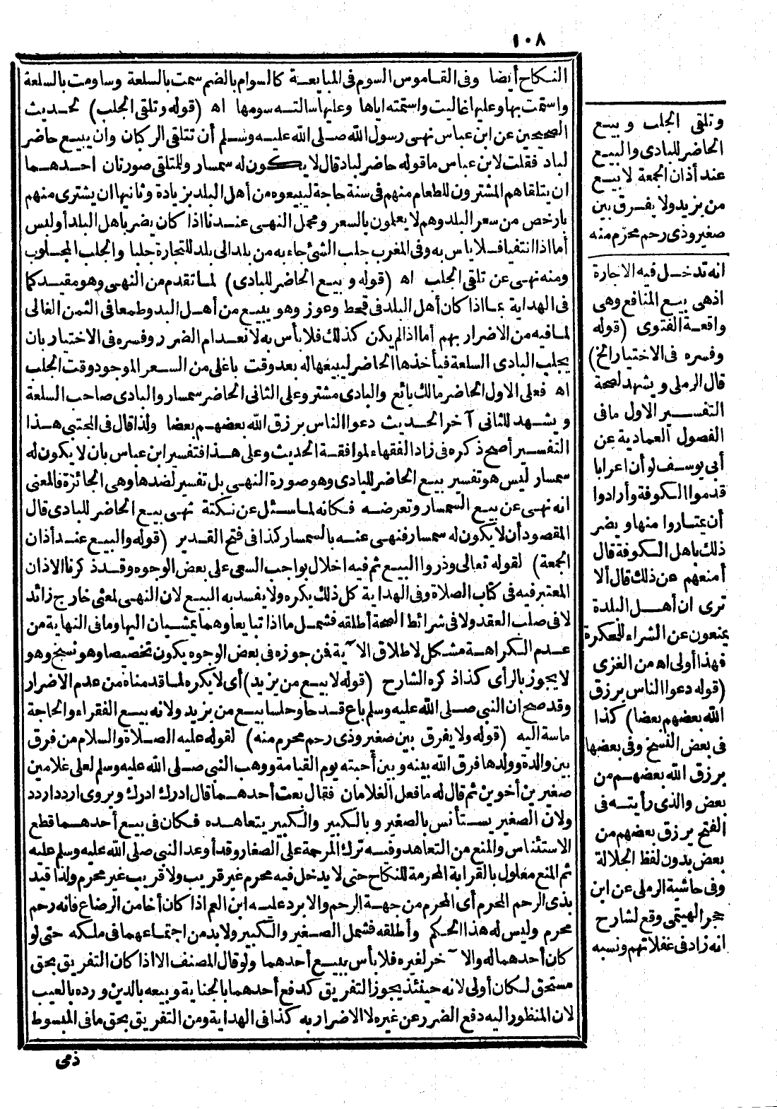 (قَوْلُهُ وَتَلَقِّي الْجَلَبِ) لِحَدِيثِ الصَّحِيحَيْنِ عَنْ ابْنِ عَبَّاسٍ «نَهَى رَسُولُ اللَّهِ - صَلَّى اللَّهُ عَلَيْهِ وَسَلَّمَ - أَنْ تُتَلَقَّى الرُّكْبَانُ، وَأَنْ يَبِيعَ حَاضِرٌ لِبَادٍ» فَقُلْتُ: لِابْنِ عَبَّاسٍ مَا قَوْلُهُ حَاضِرٌ لِبَادٍ قَالَ لَا يَكُونُ لَهُ سِمْسَارًا، وَلِلْمُتَلَقَّى صُورَتَانِ أَحَدُهُمَا أَنْ يَتَلَقَّاهُمْ الْمُشْتَرُونَ لِلطَّعَامِ مِنْهُمْ فِي سَنَةِ حَاجَةٍ لِيَبِيعُوهُ مِنْ أَهْلِ الْبَلَدِ بِزِيَادَةٍ، وَثَانِيهَا أَنْ يُشْتَرَى مِنْهُمْ بِأَرْخَصَ مِنْ سِعْرِ الْبَلَدِ، وَهُمْ لَا يَعْلَمُونَ بِالسِّعْرِ، وَمَحْمَلُ النَّهْيِ عِنْدَنَا إذَا كَانَ يَضُرُّ بِأَهْلِ الْبَلَدِ أَوْ لَبَسَ أَمَّا إذَا انْتَفَيَا فَلَا بَأْسَ بِهِ، وَفِي الْمُغْرِبِ جَلَبَ الشَّيْءَ جَاءَ بِهِ مِنْ بَلَدٍ إلَى بَلَدٍ لِلتِّجَارَةِ جَلْبًا وَالْجَلَبُ الْمَجْلُوبُ، وَمِنْهُ نُهِيَ عَنْ تَلَقِّي الْجَلَبِ اهـ.