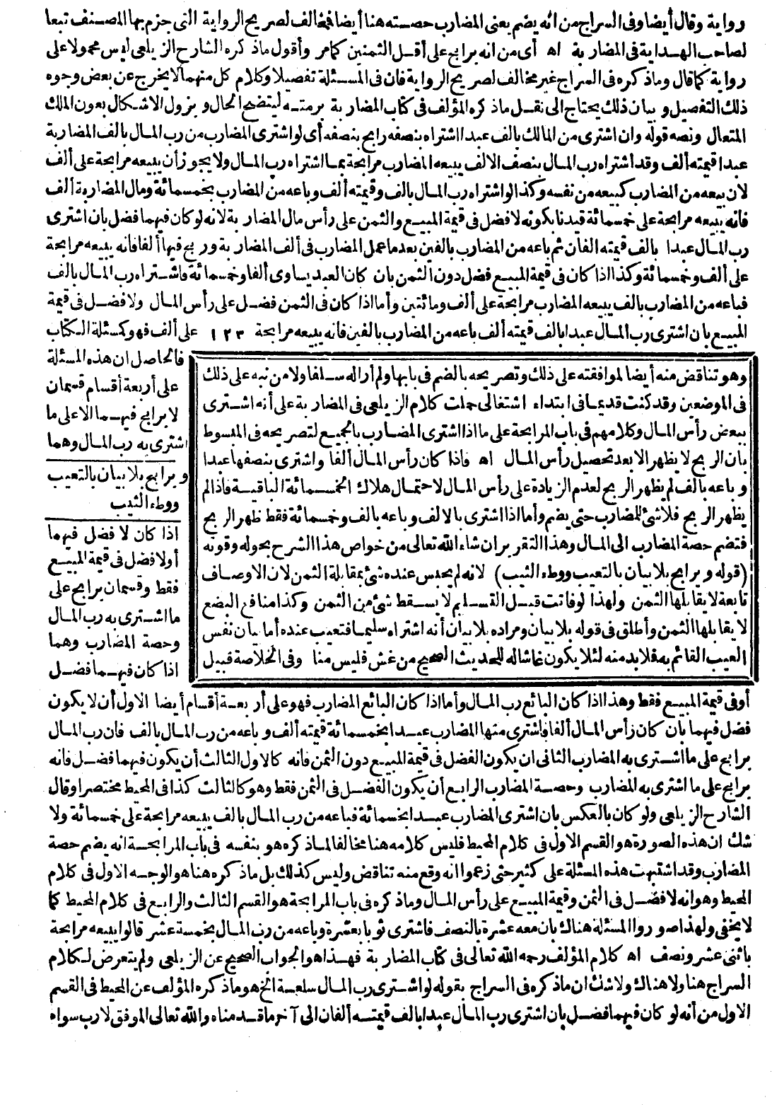 وَهُوَ تَنَاقُضٌ مِنْهُ أَيْضًا لِمُوَافَقَتِهِ عَلَى ذَلِكَ، وَتَصْرِيحِهِ بِالضَّمِّ فِي بَابِهَا، وَلَمْ أَرَ لَهُ سَلَفًا، وَلَا مَنْ نَبَّهَ عَلَى ذَلِكَ فِي الْمَوْضِعَيْنِ، وَقَدْ كُنْت قَدِيمًا فِي ابْتِدَاءِ اشْتِغَالِي حَمَلْت كَلَامَ الزَّيْلَعِيِّ فِي الْمُضَارَبَةِ عَلَى أَنَّهُ اشْتَرَى بِبَعْضِ رَأْسِ الْمَالِ، وَكَلَامَهُمْ فِي بَابِ الْمُرَابَحَةِ عَلَى مَا إذَا اشْتَرَى الْمُضَارِبُ بِالْجَمِيعِ لِتَصْرِيحِهِ فِي الْمَبْسُوطِ بِأَنَّ الرِّبْحَ لَا يَظْهَرُ إلَّا بَعْدَ تَحْصِيلِ رَأْسِ الْمَالِ اهـ.
