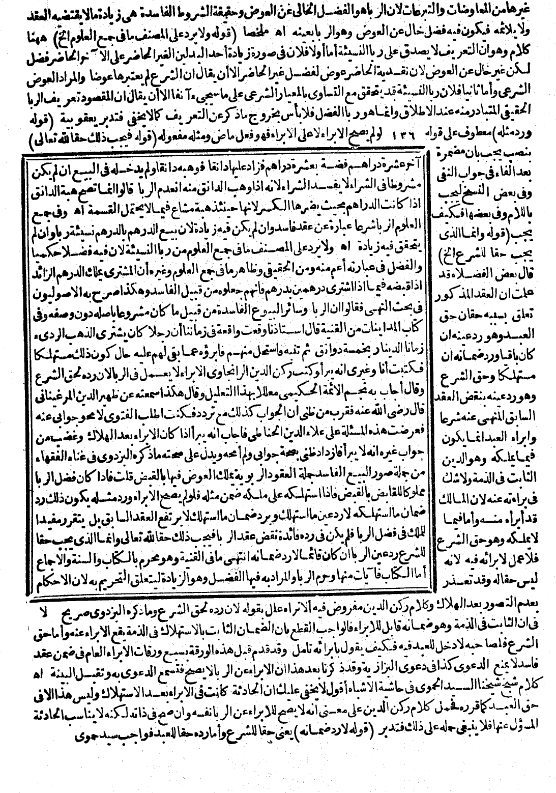 وَلَا يَرِدُ عَلَى الْمُصَنِّفِ مَا فِي جَمْعِ الْعُلُومِ مِنْ رِبَا النَّسِيئَةِ لِأَنَّ فِيهِ فَضْلًا حُكْمِيًّا، وَالْفَضْلُ فِي عِبَارَتِهِ أَعَمُّ مِنْهُ وَمِنْ الْحَقِيقِيِّ، وَظَاهِرُ مَا فِي جَمْعِ الْعُلُومِ، وَغَيْرِهِ أَنَّ الْمُشْتَرِيَ يَمْلِكُ الدِّرْهَمَ الزَّائِدَ إذَا قَبَضَهُ فِيمَا إذَا اشْتَرَى دِرْهَمَيْنِ بِدِرْهَمٍ فَإِنَّهُمْ جَعَلُوهُ مِنْ قَبِيلِ الْفَاسِدِ، وَهَكَذَا صَرَّحَ بِهِ الْأُصُولِيُّونَ فِي بَحْثِ النَّهْيِ فَقَالُوا إنَّ الرِّبَا وَسَائِرَ الْبُيُوعِ الْفَاسِدَةِ مِنْ قَبِيلِ مَا كَانَ مَشْرُوعًا بِأَصْلِهِ دُونَ وَصْفِهِ، وَفِي كِتَابِ الْمُدَايَنَاتِ مِنْ الْقُنْيَةِ قَالَ أُسْتَاذُنَا وَقَعَتْ وَاقِعَةٌ فِي زَمَانِنَا أَنَّ رَجُلًا كَانَ يَشْتَرِي الذَّهَبَ الرَّدِيءَ زَمَانًا الدِّينَارُ بِخَمْسَةِ دَوَانِقَ ثُمَّ تَنَبَّهَ فَاسْتَحَلَّ مِنْهُمْ فَأَبْرَؤُهُ عَمَّا بَقِيَ لَهُمْ عَلَيْهِ حَالَ كَوْنِ ذَلِكَ مُسْتَهْلَكًا فَكَتَبْت أَنَا وَغَيْرِي أَنَّهُ يَبْرَأُ، وَكَتَبَ رُكْنُ الدِّينِ الرَّانْجَاوِيُّ الْإِبْرَاءُ لَا يُعْمَلُ فِي الرِّبَا لِأَنَّ رَدَّهُ لِحَقِّ الشَّرْعِ، وَقَالَ أَجَابَ بِهِ نَجْمُ الْأَئِمَّةِ الْحَكِيمِيُّ مُعَلِّلًا بِهَذَا التَّعْلِيلِ، وَقَالَ هَكَذَا سَمِعْته عَنْ ظَهِيرِ الدِّينِ الْمَرْغِينَانِيِّ قَالَ - رَضِيَ اللَّهُ عَنْهُ - فَقَرُبَ مِنْ ظَنِّي أَنَّ الْجَوَابَ كَذَلِكَ مَعَ تَرَدُّدٍ فَكُنْت أَطْلُبُ الْفَتْوَى لِأَمْحُوَ جَوَابِي عَنْهُ فَعَرَضْت هَذِهِ الْمَسْأَلَةَ عَلَى عَلَاءِ الدِّينِ الْحَنَّاطِيِّ فَأَجَابَ أَنَّهُ يَبْرَأُ إذَا كَانَ الْإِبْرَاءُ بَعْدَ الْهَلَاكِ، وَغَضِبَ مِنْ جَوَابِ غَيْرِهِ أَنَّهُ لَا يَبْرَأُ فَازْدَادَ ظَنِّي بِصِحَّةِ جَوَابِي، وَلَمْ أَمْحُهُ.