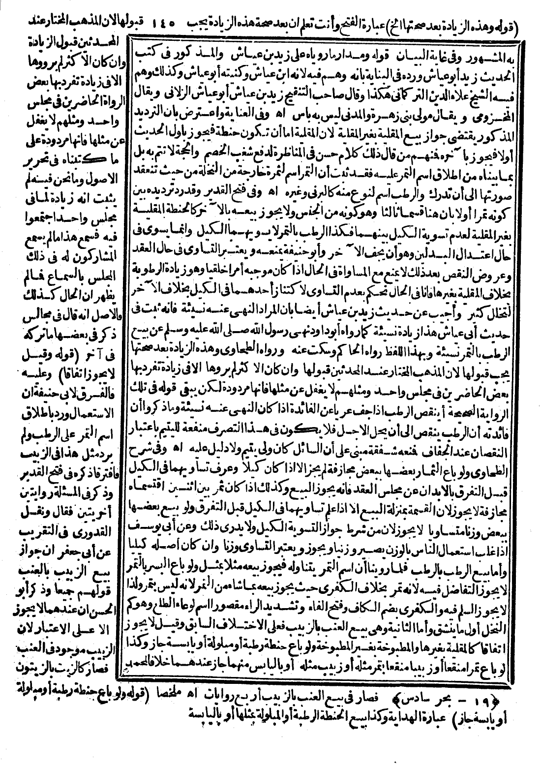 وَفِي فَتْحِ الْقَدِيرِ، وَقَدْ رَدَّ تَرْدِيدَهُ بَيْنَ كَوْنِهِ تَمْرًا أَوْ لَا بِأَنَّ هُنَا قِسْمًا ثَالِثًا، وَهُوَ كَوْنُهُ مِنْ الْجِنْسِ، وَلَا يَجُوزُ بَيْعُهُ بِالْآخَرِ كَالْحِنْطَةِ الْمَقْلِيَّةِ بِغَيْرِ الْمَقْلِيَّةِ لِعَدَمِ تَسْوِيَةِ الْكَيْلِ بَيْنَهُمَا فَكَذَا الرُّطَبُ بِالتَّمْرِ لَا يُسَوِّيهِمَا الْكَيْلُ، وَإِنَّمَا يُسَوِّي فِي حَالِ اعْتِدَالِ الْبَدَلَيْنِ، وَهُوَ أَنْ يَجِفَّ الْآخَرُ، وَأَبُو حَنِيفَةَ يَمْنَعُهُ، وَيَعْتَبِرُ التَّسَاوِي فِي حَالِ الْعَقْدِ وَعُرُوضِ النَّقْصِ بَعْدَ ذَلِكَ لَا يَمْنَعُ مَعَ الْمُسَاوَاةِ فِي الْحَالِ إذَا كَانَ مُوجِبُهُ أَمْرًا خِلْقِيَّا، وَهُوَ زِيَادَةُ الرُّطُوبَةِ بِخِلَافِ الْمَقْلِيَّةِ بِغَيْرِهَا فَإِنَّا فِي الْحَالِ نَحْكُمُ بِعَدَمِ التَّسَاوِي لِاكْتِنَازِ أَحَدِهِمَا فِي الْكَيْلِ بِخِلَافِ الْآخَرِ لِتَخَلُّلِ كَثِيرٍ، وَأُجِيبَ عَنْ حَدِيثِ زَيْدِ بْنِ عَيَّاشٍ أَيْضًا بِأَنَّ الْمُرَادَ النَّهْيُ عَنْهُ نَسِيئَةً فَإِنَّهُ ثَبَتَ فِي حَدِيثِ أَبِي عَيَّاشٍ هَذَا زِيَادَةٌ نَسِيئَةً كَمَا رَوَاهُ أَبُو دَاوُد، وَنَهَى رَسُولُ اللَّهِ - صَلَّى اللَّهُ عَلَيْهِ وَسَلَّمَ - «عَنْ بَيْعِ الرُّطَبِ بِالتَّمْرِ نَسِيئَةً» ، وَبِهَذَا اللَّفْظِ رَوَاهُ الْحَاكِمُ، وَسَكَتَ عَنْهُ، وَرَوَاهُ الطَّحَاوِيُّ، وَهَذِهِ الزِّيَادَةُ بَعْدَ صِحَّتِهَا يَجِبُ قَبُولُهَا لِأَنَّ الْمَذْهَبَ الْمُخْتَارُ عِنْدَ الْمُحَدِّثِينَ قَبُولُهَا، وَإِنْ كَانَ الْأَكْثَرُ لَمْ يَرَوْهَا إلَّا فِي زِيَادَةٍ تَفَرَّدَ بِهَا بَعْضُ الْحَاضِرِينَ فِي مَجْلِسٍ وَاحِدٍ، وَمِثْلُهُمْ لَا يَغْفُلُ عَنْ مِثْلِهَا فَإِنَّهَا مَرْدُودَةٌ لَكِنْ يَبْقَى قَوْلُهُ فِي تِلْكَ الرِّوَايَةِ الصَّحِيحَةِ أَيَنْقُصُ الرُّطَبُ إذَا جَفَّ عَرِيًّا عَنْ الْفَائِدَةِ إذَا كَانَ النَّهْيُ عَنْهُ نَسِيئَةً، وَمَا ذَكَرُوا أَنَّ فَائِدَتَهُ أَنَّ الرُّطَبَ يَنْقُصُ إلَى أَنْ يَحِلَّ الْأَجَلُ فَلَا يَكُونُ فِي هَذَا التَّصَرُّفِ مَنْفَعَةٌ لِلْيَتِيمِ بِاعْتِبَارِ النُّقْصَانِ عِنْدَ الْجَفَافِ فَمَنْعُهُ شَفَقَةً مَبْنِيٌّ عَلَى أَنَّ السَّائِلَ كَانَ وَلِيَّ يَتِيمٍ، وَلَا دَلِيلَ عَلَيْهِ اهـ.