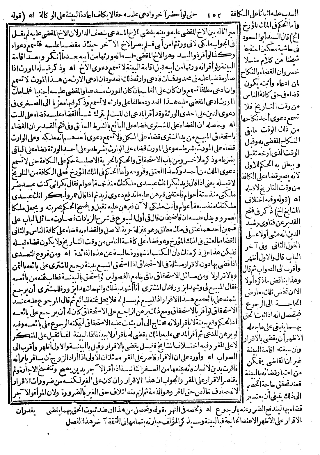 وَيَدُلُّ عَلَيْهِ أَنَّ قَاضِي خَانْ قَالَ فِي أَوَّلِ الْبُيُوعِ فِي شَرْحِ الزِّيَادَاتِ فَصَارَتْ مَسَائِلُ الْبَابِ عَلَى قِسْمَيْنِ أَحَدُهُمَا عِتْقٌ فِي مِلْكٍ مُطْلَقٍ وَهُوَ بِمَنْزِلَةِ حُرِّيَّةِ الْأَصْلِ، وَالْقَضَاءُ بِهِ قَضَاءٌ عَلَى كَافَّةِ النَّاسِ، وَالثَّانِي الْقَضَاءُ بِالْعِتْقِ فِي الْمِلْكِ الْمُؤَرَّخِ وَهُوَ قَضَاءٌ عَلَى كَافَّةِ النَّاسِ مِنْ وَقْتِ التَّارِيخِ، وَلَا يَكُونَ قَضَاءً قَبْلَهُ فَلْيَكُنْ هَذَا عَلَى ذِكْرٍ مِنْك فَإِنَّ الْكُتُبَ الْمَشْهُورَةَ خَالِيَةٌ عَنْ هَذِهِ الْفَائِدَةِ. اهـ.