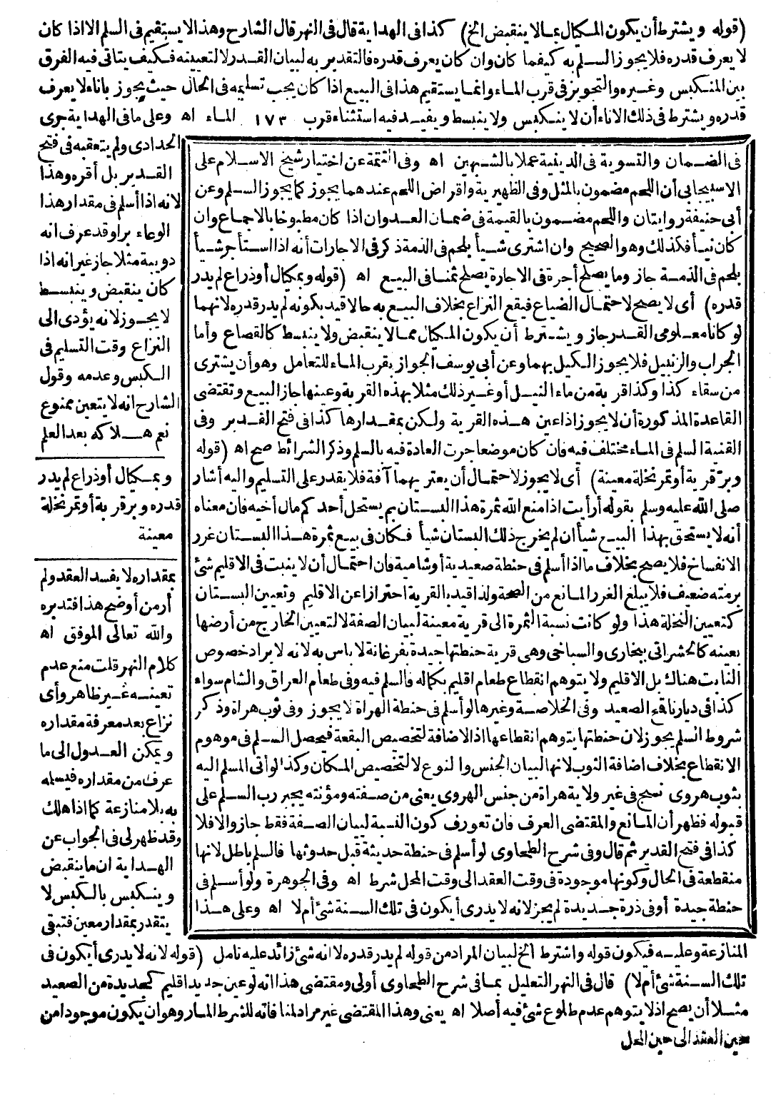 ـــــــــــــــــــــــــــــQ (قَوْلُهُ: وَيُشْتَرَطُ أَنْ يَكُونَ الْمِكْيَالُ بِمَا لَا يَنْقَبِضُ إلَخْ) كَذَا فِي الْهِدَايَةِ قَالَ فِي النَّهْرِ قَالَ الشَّارِحُ وَهَذَا لَا يَسْتَقِيمُ فِي السَّلَمِ إلَّا إذَا كَانَ لَا يُعْرَفُ قَدْرُهُ فَلَا يَجُوزُ السَّلَمُ بِهِ كَيْفَمَا كَانَ وَإِنْ كَانَ يُعْرَفُ قَدْرُهُ فَالتَّقْدِيرُ بِهِ لِبَيَانِ الْقَدْرِ لَا لِتَعْيِينِهِ فَكَيْفَ يَتَأَتَّى فِيهِ الْفَرْقُ بَيْنَ الْمُنْكَبِسِ وَغَيْرِهِ وَالتَّجْوِيزُ فِي قُرْبِ الْمَاءِ وَإِنَّمَا يَسْتَقِيمُ هَذَا فِي الْبَيْعِ إذَا كَانَ يَجِبُ تَسْلِيمُهُ فِي الْحَالِ حَيْثُ يَجُوزُ بِإِنَاءٍ لَا يُعْرَفُ قَدْرُهُ يَشْتَرِطُ فِي ذَلِكَ الْإِنَاءِ أَنْ لَا يَنْكَبِسَ وَلَا يَنْبَسِطَ وَيُفِيدُ فِيهِ اسْتِثْنَاءُ قُرْبِ الْمَاءِ. اهـ.