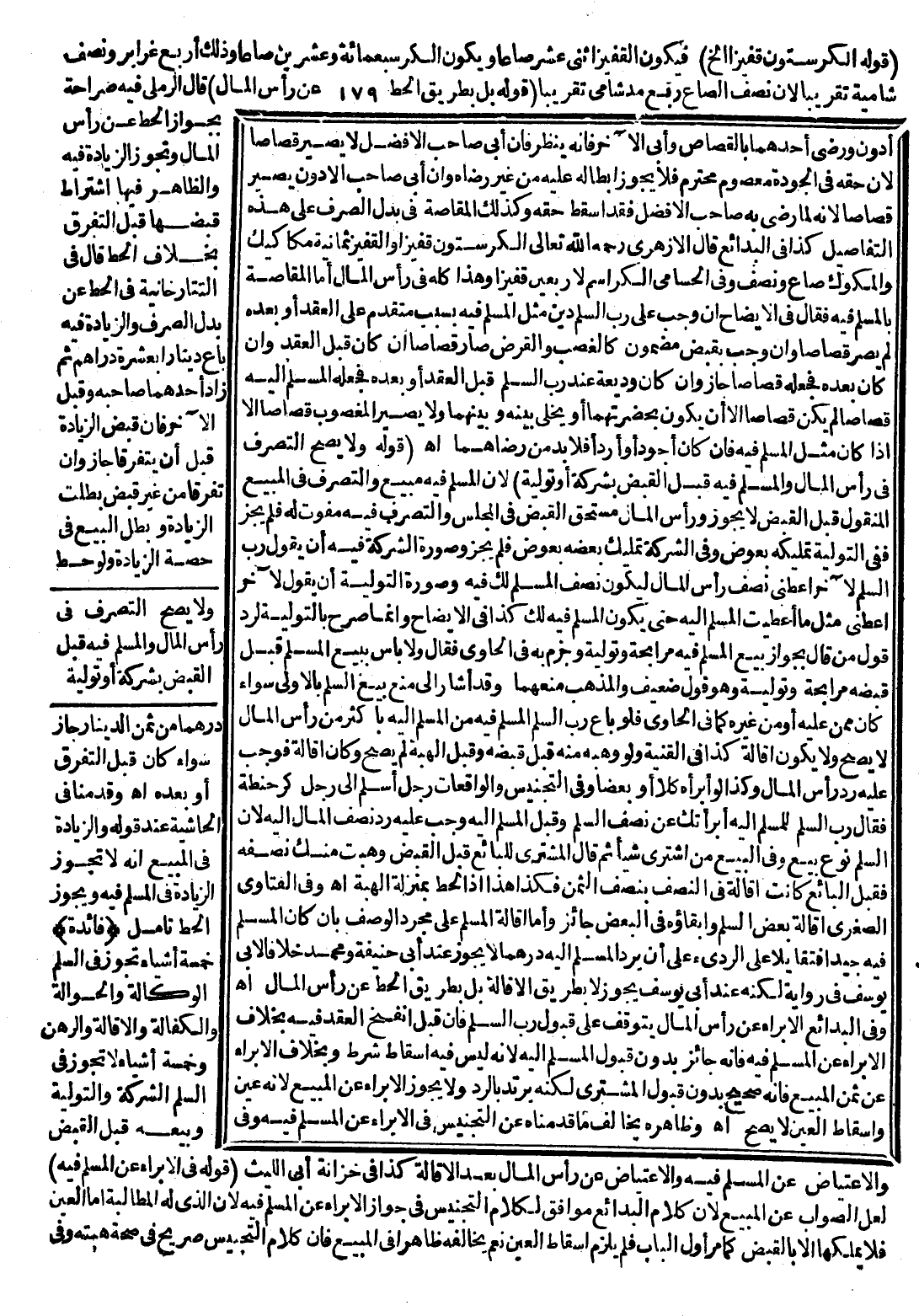 قَالَ الْأَزْهَرِيُّ - رَحِمَهُ اللَّهُ تَعَالَى -: الْكُرُسْتُونُ قَفِيزًا وَالْقَفِيزُ ثَمَانِيَةُ مَكَاكِيكَ وَالْمَكُّوكُ صَاعٌ وَنِصْفٌ وَفِي الْحُسَامِيِّ الْكَرَاسِمُ لِأَرْبَعِينَ قَفِيزًا وَهَذَا كُلُّهُ فِي رَأْسِ الْمَالِ، أَمَّا الْمُقَاصَّةُ بِالْمُسْلَمِ فِيهِ فَقَالَ فِي الْإِيضَاحِ إنْ وَجَبَ عَلَى رَبِّ السَّلَمِ دَيْنٌ مِثْلُ الْمُسْلَمِ فِيهِ بِسَبَبٍ مُتَقَدِّمٍ عَلَى الْعَقْدِ أَوْ بَعْدَهُ لَمْ يَصِرْ قِصَاصًا وَإِنْ وَجَبَ بِقَبْضٍ مَضْمُونٍ كَالْغَصْبِ وَالْقَرْضِ صَارَ قِصَاصًا إنْ كَانَ قَبْلَ الْعَقْدِ وَإِنْ كَانَ بَعْدَهُ فَجَعَلَهُ قِصَاصًا جَازَ وَإِنْ كَانَ وَدِيعَةً عِنْدَ رَبِّ السَّلَمِ قَبْلَ الْعَقْدِ أَوْ بَعْدَهُ فَجَعَلَهُ الْمُسْلَمُ إلَيْهِ قِصَاصًا لَمْ يَكُنْ قِصَاصًا إلَّا أَنْ يَكُونَ بِحَضْرَتِهِمَا أَوْ يُخَلِّي بَيْنَهُ وَبَيْنَهُمَا، وَلَا يَصِيرُ الْمَغْصُوبُ قِصَاصًا إلَّا إذَا كَانَ مِثْلَ الْمُسْلَمِ فِيهِ فَإِنْ كَانَ أَجْوَدَ أَوْ أَرْدَأَ فَلَا بُدَّ مِنْ رِضَاهُمَا اهـ.