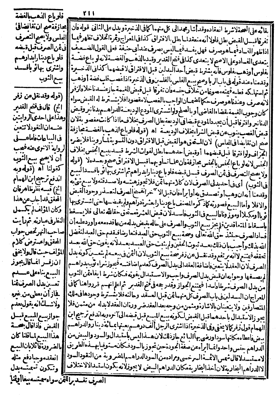 ثُمَّ اعْلَمْ أَنَّهُمْ قَرَّرُوا هُنَا كَمَا فِي الْمِعْرَاجِ أَنَّ الْبَدَلَيْنِ فِي بَابِ الصَّرْفِ كُلٌّ مِنْهُمَا ثَمَنٌ قَبْلَ الْعَقْدِ وَحَالَتُهُ فَلَا يُشْتَرَطُ وُجُودُهَا فِي مِلْكِ الْمُتَصَارِفَيْنِ وَلَا يَتَعَيَّنَانِ بِالْإِشَارَةِ وَمُثْمَنٌ مِنْ وَجْهٍ بَعْدَ الْعَقْدِ ضَرُورَةَ أَنَّ الْعَقْدَ لَا بُدَّ لَهُ مِنْ مُثْمَنٍ فَلَا يَجُوزُ الِاسْتِبْدَالُ بِأَحَدِهِمَا قَبْلَ الْقَبْضِ لِكَوْنِهِ بَيْعَ الْمَبِيعِ قَبْلَ قَبْضِهِ إلَى آخِرِهِ وَبِهِ انْدَفَعَ تَرْجِيحُ ابْنِ الْهُمَامِ قَوْلَ زُفَرَ كَمَا لَا يَخْفَى، وَفِي الذَّخِيرَةِ إذَا اشْتَرَى الرَّجُلُ أَلْفَ دِرْهَمٍ بِعَيْنِهَا بِمِائَةِ دِينَارٍ وَالدَّرَاهِمُ بِيضٌ فَأَعْطَاهُ مَكَانَهَا سُودًا أَوْ رَضِيَ بِهَا الْبَائِعُ جَازَ ذَلِكَ لِأَنَّ هَذَا لَيْسَ بِاسْتِبْدَالٍ وَالسُّودُ وَالْبِيضُ مِنْ الدَّرَاهِمِ جِنْسٌ وَاحِدٌ وَإِنَّمَا أَبْرَأَهُ عَنْ صِفَةِ الْجَوْدَةِ حِينَ تَجُوزُ بِالسُّودِ فَكَانَ مُسْتَوْفِيًا بِهَذِهِ الطَّرِيقِ لَا مُسْتَبْدِلًا، قَالَ شَمْسُ الْأَئِمَّةِ السَّرَخْسِيُّ وَمُرَادُهُ مِنْ السُّودِ الدَّرَاهِمُ الْمَضْرُوبَةُ مِنْ النُّقُودِ السُّودِ لَا الدَّرَاهِمُ الْبُخَارِيَّةُ لِأَنَّ أَخْذَ الْبُخَارِيَّةِ مَكَانَ الدَّرَاهِمِ الْبِيضِ لَا يَجُوزُ؛ لِأَنَّهُ يَكُونُ اسْتِبْدَالًا لِاخْتِلَافِ