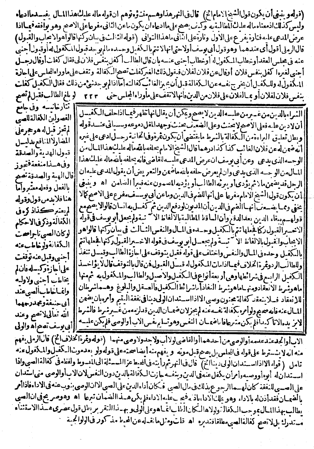 وَهُوَ صَرِيحٌ فِي أَنَّ الصَّبِيَّ يُطَالَبُ بِهَذَا الْمَالِ بِمُوجِبِ الْكَفَالَةِ وَلَوْلَاهَا لَكَانَ الطَّلَبُ إنَّمَا هُوَ عَلَى الْوَلِيِّ وَبِهَذَا التَّقْرِيرِ بَطَلَ قَوْلُ عَصْرِيٍّ هَذَا الِاسْتِثْنَاءُ مُسْتَدْرَكٌ بَلْ لَا تَصِحُّ كَفَالَةُ الصَّبِيِّ مُطْلَقًا فَتَدَبَّرْهُ. اهـ.