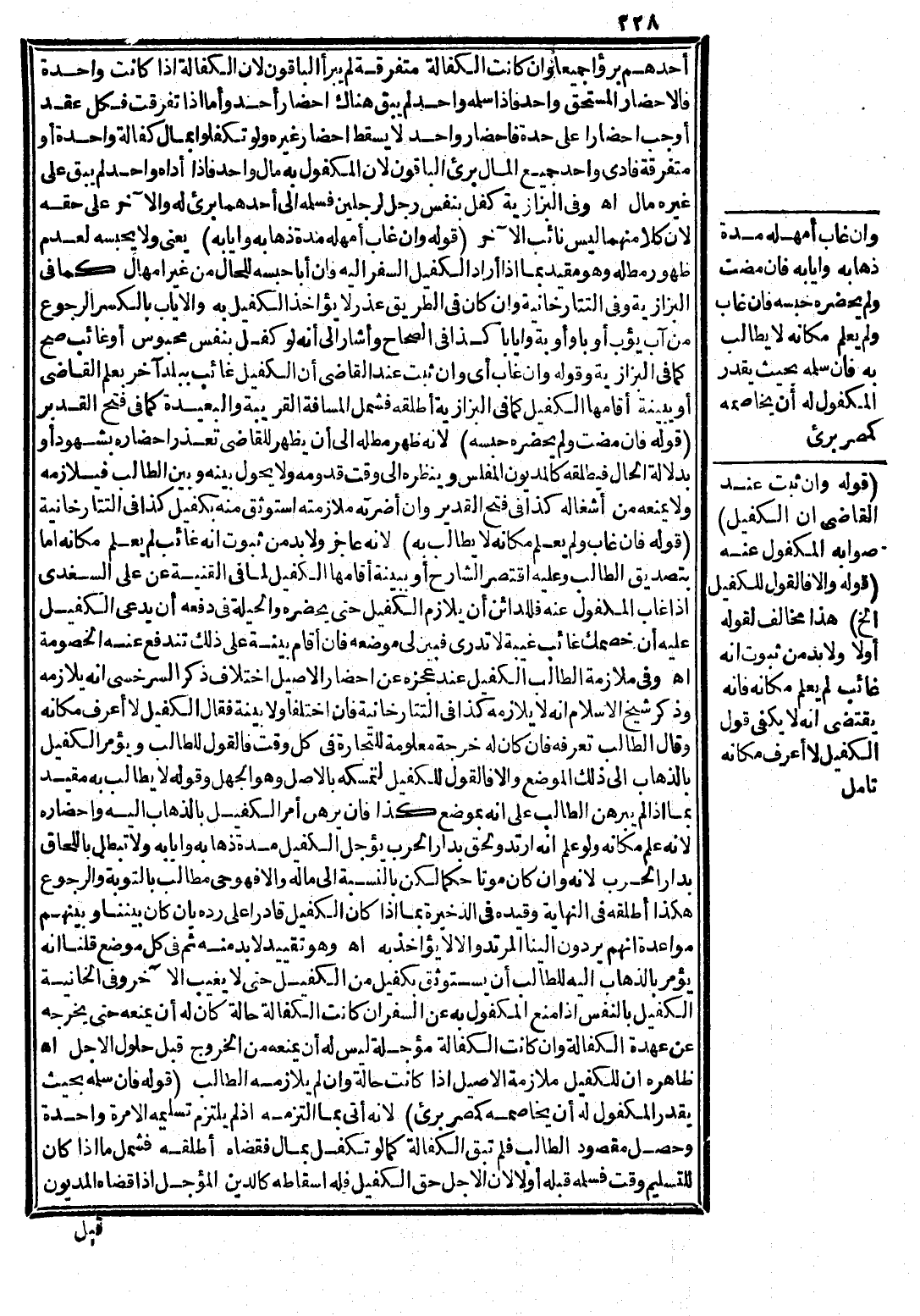 وَهُوَ تَقْيِيدٌ لَا بُدَّ مِنْهُ ثُمَّ فِي كُلِّ مَوْضِعٍ قُلْنَا: إنَّهُ يُؤْمَرُ بِالذَّهَابِ إلَيْهِ لِلطَّالِبِ أَنْ يَسْتَوْثِقَ بِكَفِيلٍ مِنْ الْكَفِيلِ حَتَّى لَا يَغِيبَ الْآخَرُ، وَفِي الْخَانِيَّةِ الْكَفِيلُ بِالنَّفْسِ إذَا مَنَعَ الْمَكْفُولَ بِهِ عَنْ السَّفَرِ إنْ كَانَتْ الْكَفَالَةُ حَالَّةً كَانَ لَهُ أَنْ يَمْنَعَهُ حَتَّى يُخْرِجَهُ عَنْ عُهْدَةِ الْكَفَالَةِ، وَإِنْ كَانَتْ الْكَفَالَةُ مُؤَجَّلَةً لَيْسَ لَهُ أَنْ يَمْنَعَهُ مِنْ الْخُرُوجِ قَبْلَ حُلُولِ الْأَجَلِ. اهـ.