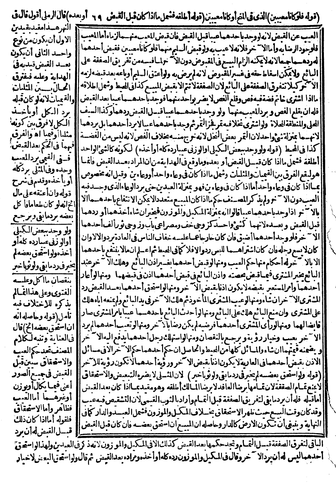 (قَوْلُهُ أَطْلَقَهُ فَشَمَلَ مَا إذَا كَانَ قَبْلَ الْقَبْضِ أَوْ بَعْدَهُ) قَالَ الرَّمْلِيُّ أَقُولُ: قَالَ فِي النَّهْرِ هَذَا مُقَيَّدٌ بِقَيْدَيْنِ الْأَوَّلُ أَنْ يَكُونَ مِنْ نَوْعٍ وَاحِدٍ الثَّانِي أَنْ يَكُونَ بَعْدَ الْقَبْضِ قَيَّدَ بِهِ فِي الْهِدَايَةِ وَعَلَيْهِ فَيَفْتَرِقُ الْحَالُ بَيْنَ الْمِثْلِيَّاتِ وَالْقِيَمِيَّاتِ لِأَنَّهُ لَوْ كَانَ قَبْلَهُ يَرُدُّ الْكُلَّ أَوْ يَأْخُذُ الْكُلَّ لَا فَرْقَ بَيْنَ كَوْنِهِ مِثْلِيًّا أَوْ قِيَمِيًّا اهـ.