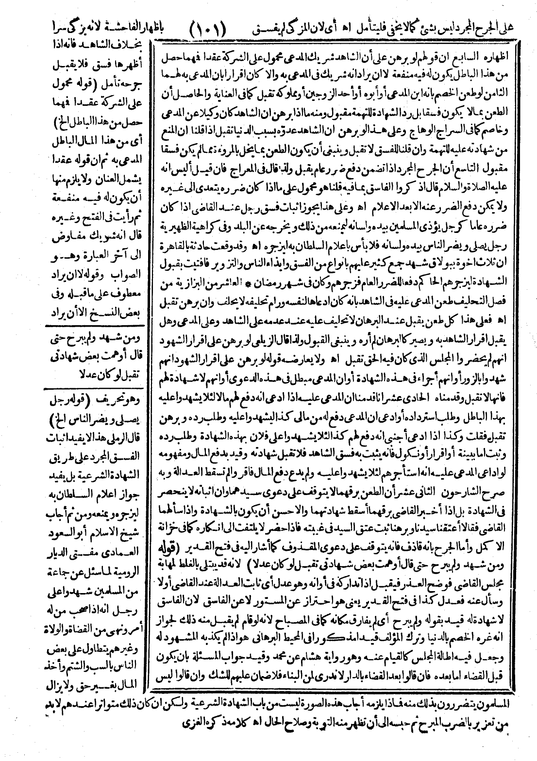 وَقَدْ وَقَعَتْ حَادِثَةٌ بِالْقَاهِرَةِ أَنَّ ثَلَاثَ إخْوَةٍ بِبُولَاقَ شَهِدَ جَمْعٌ كَثِيرٌ عَلَيْهِمْ بِأَنْوَاعٍ مِنْ الْفِسْقِ وَإِيذَاءِ النَّاسِ وَالتَّزْوِيرِ فَأَفْتَيْت بِقَبُولِ الشَّهَادَةِ لِيَزْجُرَهُمْ الْحَاكِمُ دَفْعًا لِلضَّرَرِ الْعَامِّ فَزَجَرَهُمْ وَكَانَ فِي شَهْرِ رَمَضَانَ الْعَاشِرُ مِنْ الْبَزَّازِيَّةِ مِنْ فَصْلِ التَّحْلِيفِ طَعْنُ الْمُدَّعَى عَلَيْهِ فِي الشَّاهِدِ بِأَنَّهُ كَانَ ادَّعَاهَا لِنَفْسِهِ وَرَامَ تَحْلِيفَهُ لَا يَحْلِفُ وَإِنْ بَرْهَنَ تُقْبَلُ اهـ.