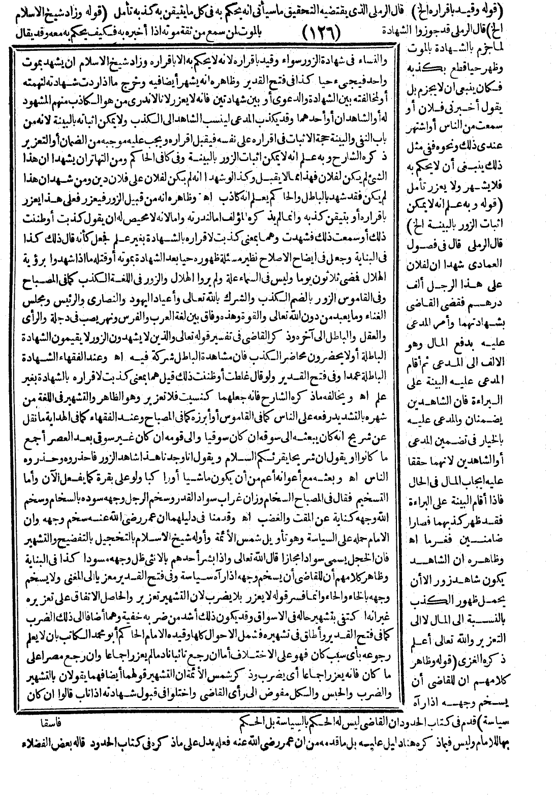 وَظَاهِرُهُ أَنَّ الشَّاهِدَ يَكُونُ شَاهِدَ زُورٍ إلَّا أَنْ يُحْمَلَ لِظُهُورِ الْكَذِبِ بِالنِّسْبَةِ إلَى الْمَالِ لَا إلَى التَّعْزِيرِ وَاَللَّهُ تَعَالَى أَعْلَمُ ذَكَرَهُ الْغَزِّيِّ (قَوْلُهُ وَظَاهِرُ كَلَامِهِمْ أَنَّ لِلْقَاضِي أَنْ يُسَخِّمَ وَجْهَهُ إذَا رَآهُ سِيَاسَةً) قَدَّمَ فِي كِتَابِ الْحُدُودِ أَنَّ الْقَاضِيَ لَيْسَ لَهُ الْحُكْمُ بِالسِّيَاسَةِ بَلْ الْحُكْمُ بِهَا لِلْإِمَامِ وَلَيْسَ فِيمَا ذَكَرَهُ هُنَا دَلِيلٌ عَلَيْهِ بَلْ مَا قَدَّمَهُ مِنْ أَنَّ عُمَرَ - رَضِيَ اللَّهُ عَنْهُ - فَعَلَهُ يَدُلُّ عَلَى مَا ذَكَرَهُ فِي كِتَابِ الْحُدُودِ قَالَهُ بَعْضُ الْفُضَلَاءِ