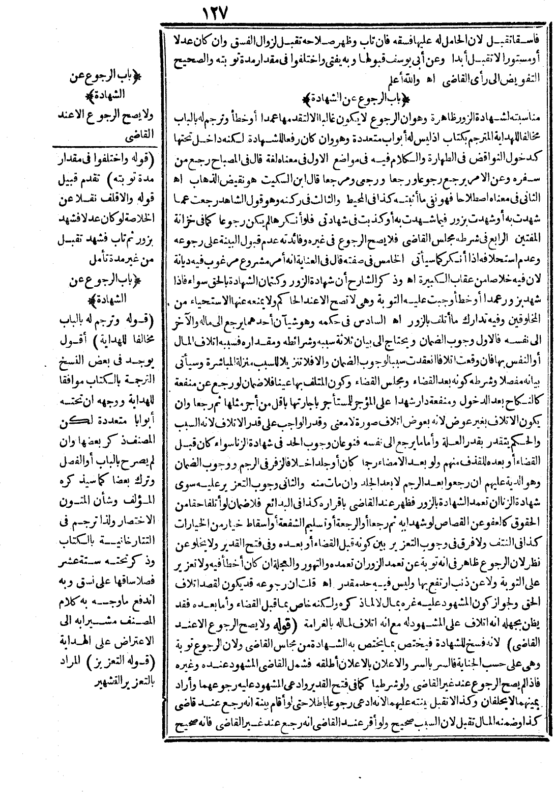 (بَابُ الرُّجُوعِ عَنْ الشَّهَادَةِ) (قَوْلُهُ وَتَرْجَمَ لَهُ بِالْبَابِ مُخَالِفًا لِلْهِدَايَةِ) أَقُولُ: يُوجَدُ فِي بَعْضِ النُّسَخِ التَّرْجَمَةُ بِالْكِتَابِ مُوَافِقًا لِلْهِدَايَةِ وَوَجْهُهُ أَنَّ تَحْتَهُ أَبْوَابًا مُتَعَدِّدَةً لَكِنَّ الْمُصَنِّفَ ذَكَرَ بَعْضَهَا وَإِنْ لَمْ يُصَرِّحْ بِالْبَابِ أَوْ الْفَصْلِ وَتَرَكَ بَعْضًا كَمَا سَيَذْكُرُهُ الْمُؤَلِّفُ وَشَأْنُ الْمُتُونِ الِاخْتِصَارُ وَلِذَا تَرْجَمَ فِي التَّتَارْخَانِيَّة بِالْكِتَابِ وَذَكَرَ تَحْتَهُ سِتَّةَ عَشَرَ فَصْلًا سَاقَهَا عَلَى نَسَقٍ وَبِهِ انْدَفَعَ مَا وُجِّهَ بِهِ كَلَامُ الْمُصَنِّفِ مُشِيرًا بِهِ إلَى الِاعْتِرَاضِ عَلَى الْهِدَايَةِ (قَوْلُهُ التَّعْزِيرُ) الْمُرَادُ بِالتَّعْزِيرِ التَّشْهِيرُ.
