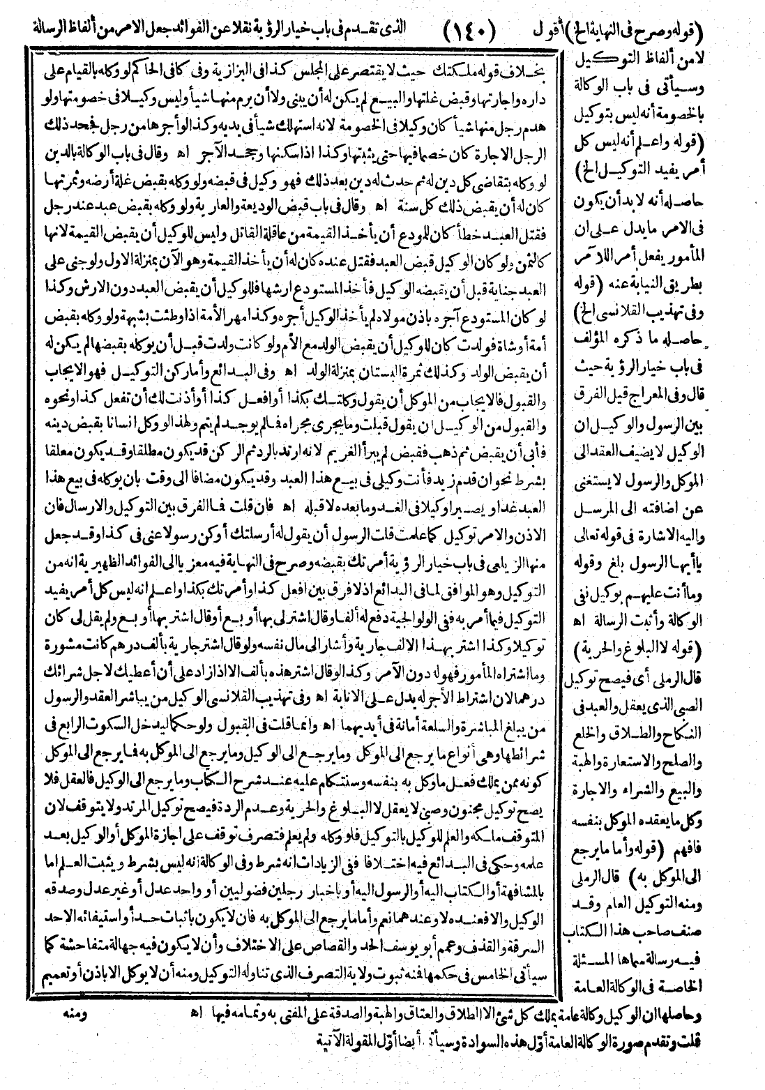 (قَوْلُهُ لَا الْبُلُوغُ وَالْحُرِّيَّةُ) قَالَ الرَّمْلِيُّ: أَيْ فَيَصِحُّ تَوْكِيلُ الصَّبِيِّ الَّذِي يَعْقِلُ وَالْعَبْدِ فِي النِّكَاحِ وَالطَّلَاقِ وَالْخُلْعِ وَالصُّلْحِ وَالِاسْتِعَارَةُ وَالْهِبَةِ وَالْبَيْعِ وَالشِّرَاءِ وَالْإِجَارَةُ وَكُلِّ مَا يَعْقِدُهُ الْمُوَكِّلُ بِنَفْسِهِ فَافْهَمْ (قَوْلُهُ وَأَمَّا مَا يَرْجِعُ إلَى الْمُوَكِّلِ بِهِ) قَالَ الرَّمْلِيُّ: وَمِنْهُ التَّوْكِيلُ الْعَامُّ وَقَدْ صَنَّفَ صَاحِبُ هَذَا الْكِتَابِ فِيهِ رِسَالَةً فَسَمَّاهَا الْمَسْأَلَةُ الْخَاصَّةُ فِي الْوَكَالَةِ الْعَامَّةِ وَحَاصِلُهَا أَنَّ الْوَكِيلَ وَكَالَةً عَامَّةً يَمْلِكُ كُلَّ شَيْءٍ إلَّا الطَّلَاقَ وَالْعَتَاقَ وَالْهِبَةَ وَالصَّدَقَةَ عَلَى الْمُفْتَى بِهِ وَتَمَامُهُ فِيهَا اهـ.