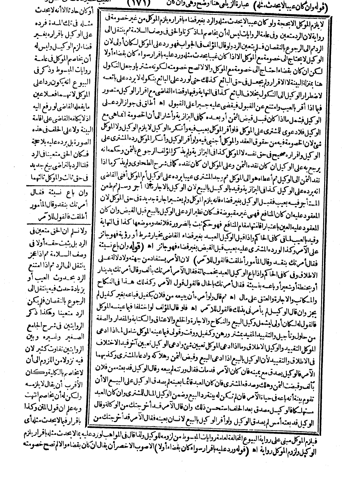 لَا يَلْزَمُ الْمُوَكِّلَ إلَّا بِحُجَّةٍ وَلَوْ كَانَ عَيْبًا لَا يَحْدُثُ مِثْلُهُ وَالرَّدُّ بِغَيْرِ قَضَاءٍ بِإِقْرَارِهِ يَلْزَمُ الْمُوَكِّلَ مِنْ غَيْرِ خُصُومَةٍ فِي رِوَايَةٍ لِأَنَّ الرَّدَّ مُتَعَيِّنٌ وَفِي عَامَّةِ الرِّوَايَاتِ لَيْسَ لَهُ أَنْ يُخَاصِمَ لِمَا ذَكَرْنَا وَالْحَقُّ فِي وَصْفِ السَّلَامَةِ ثُمَّ يَنْتَقِلُ إلَى الرَّدِّ ثُمَّ إلَى الرُّجُوعِ بِالنُّقْصَانِ فَلَمْ يَتَعَيَّنْ الرَّدُّ وَلَوْ قَالَ الْمُؤَلِّفُ فِي الْجَوَابِ فَهُوَ رَدٌّ عَلَى الْمُوَكِّلِ لَكَانَ أَوْلَى لِأَنَّ الْوَكِيلَ لَا يَحْتَاجُ إلَى خُصُومَةٍ مَعَ الْمُوَكِّلِ إلَّا إذَا كَانَ عَيْبًا يَحْدُثُ مِثْلُهُ وَرَدَّ عَلَيْهِ بِإِقْرَارٍ سَوَاءٌ كَانَ بِقَضَاءٍ أَوْ لَا لَكِنْ إنْ كَانَ بِقَضَاءٍ احْتَاجَ إلَى خُصُومَةٍ مَعَ الْمُوَكِّلِ وَإِلَّا لَا تَصِحُّ خُصُومَتُهُ لِكَوْنِهِ مُشْتَرِيًا وَجَعَلَ النُّكُولَ هُنَا بِمَنْزِلَةِ الْبَيِّنَةِ لَا الْإِقْرَارِ وَلَمْ يُجْعَلْ فِي حَقِّ الْبَائِعِ كَذَلِكَ حَتَّى لَوْ رَدَّ عَلَى الْبَائِعِ بِنُكُولِهِ لَا يَرُدُّهُ عَلَى بَائِعِهِ لِاضْطِرَارِ الْوَكِيلِ إلَى النُّكُولِ بِخِلَافِ الْبَائِعِ كَذَا فِي النِّهَايَةِ وَفِيهَا وَقَضَاءُ الْقَاضِي مَعَ إقْرَارِ الْوَكِيلِ مُتَصَوَّرٌ فِيمَا إذَا أَقَرَّ بِالْعَيْبِ وَامْتَنَعَ عَنْ الْقَبُولِ فَيُقْضَى عَلَيْهِ جَبْرًا عَلَى الْقَبُولِ اهـ.