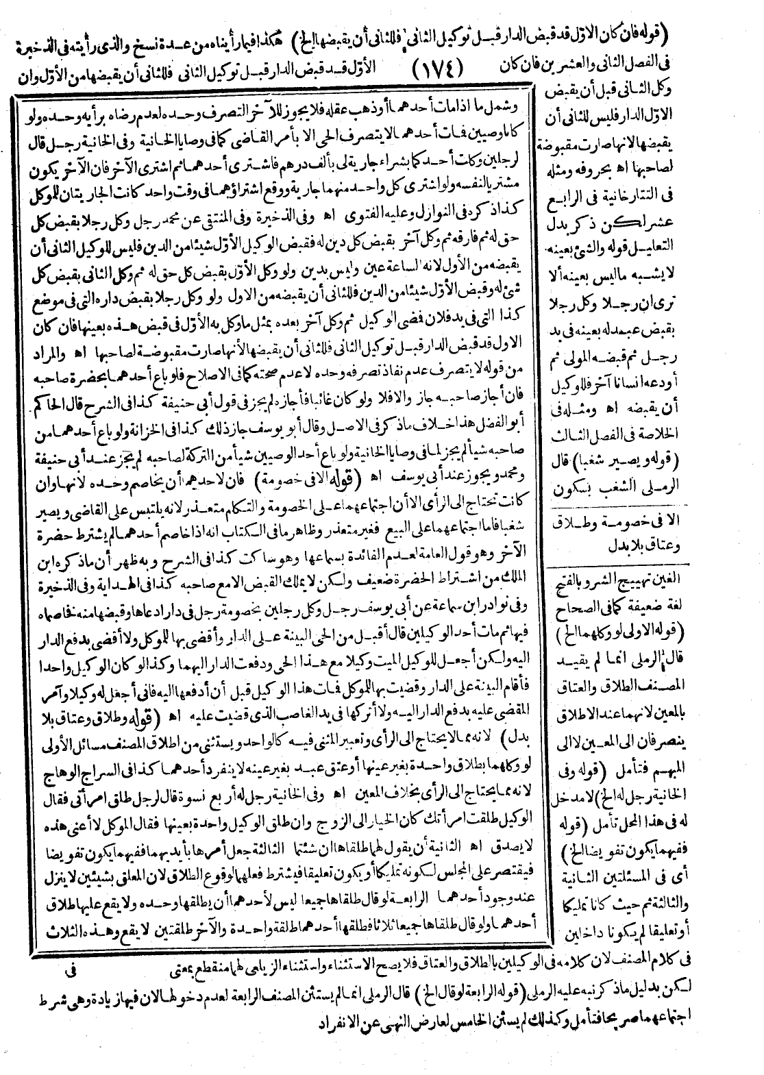 وَفِي الْخَانِيَّةِ رَجُلٌ قَالَ لِرَجُلَيْنِ وَكَّلْتُ أَحَدَكُمَا بِشِرَاءِ جَارِيَةٍ لِي بِأَلْفِ دِرْهَمٍ فَاشْتَرَى أَحَدُهُمَا ثُمَّ اشْتَرَى الْآخَرُ فَإِنَّ الْآخَرَ يَكُونُ مُشْتَرِيًا لِنَفْسِهِ وَلَوْ اشْتَرَى كُلُّ وَاحِدٍ مِنْهُمَا جَارِيَةً وَوَقَعَ اشْتِرَاؤُهُمَا فِي وَقْتٍ وَاحِدٍ كَانَتْ الْجَارِيَتَانِ لِلْمُوَكِّلِ كَذَا ذَكَرَهُ فِي النَّوَازِلِ وَعَلَيْهِ الْفَتْوَى اهـ.