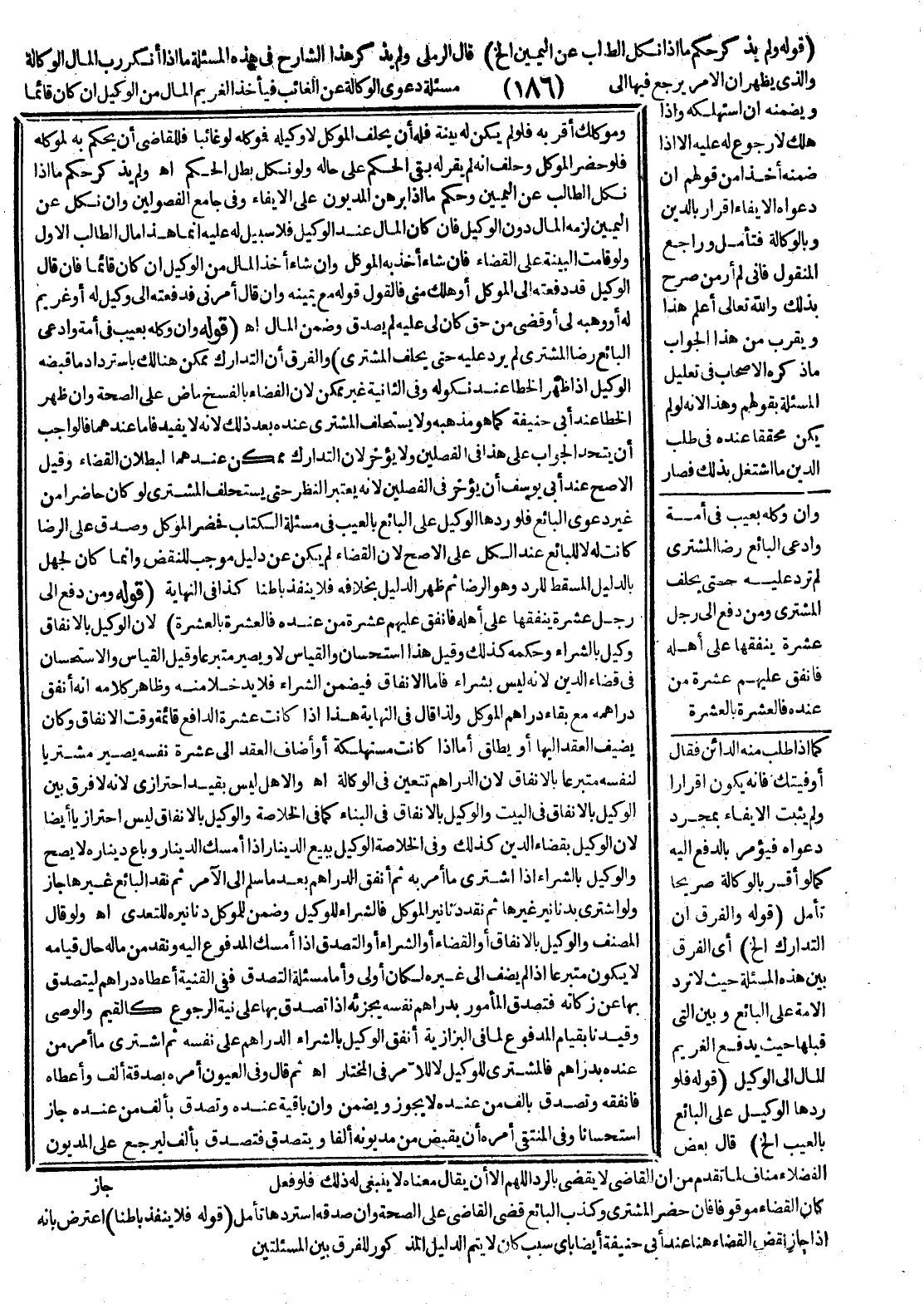 ـــــــــــــــــــــــــــــQ (قَوْلُهُ وَلَمْ يَذْكُرْ حُكْمَ مَا إذَا نَكِلَ الطَّالِبُ عَنْ الْيَمِينِ إلَخْ) قَالَ الرَّمْلِيُّ: وَلَمْ يَذْكُرْ هَذَا الشَّارِحُ فِي هَذِهِ الْمَسْأَلَةِ مَا إذَا أَنْكَرَ رَبُّ الْمَالِ الْوَكَالَةَ وَاَلَّذِي يَظْهَرُ أَنَّ الْأَمْرَ يَرْجِعُ فِيهَا إلَى مَسْأَلَةِ دَعْوَى الْوَكَالَةِ عَنْ الْغَائِبِ فَيَأْخُذُ الْغَرِيمُ الْمَالَ مِنْ الْوَكِيلِ إنْ كَانَ قَائِمًا وَيَضْمَنُهُ إنْ اسْتَهْلَكَهُ وَإِذَا هَلَكَ لَا رُجُوعَ لَهُ عَلَيْهِ إلَّا إذَا ضَمِنَهُ أَخْذًا مِنْ قَوْلِهِمْ إنَّ دَعْوَاهُ الْإِيفَاءَ إقْرَارًا بِالدَّيْنِ وَبِالْوَكَالَةِ فَتَأَمَّلْ وَرَاجِعْ الْمَنْقُولَ فَإِنِّي لَمْ أَرَ مَنْ صَرَّحَ بِذَلِكَ وَاَللَّهُ تَعَالَى أَعْلَمُ هَذَا وَيَقْرُبُ مِنْ هَذَا الْجَوَابِ مَا ذَكَرَهُ الْأَصْحَابُ فِي تَعْلِيلِ الْمَسْأَلَةِ بِقَوْلِهِمْ وَهَذَا لِأَنَّهُ لَوْ لَمْ يَكُنْ مُحَقَّقًا عِنْدَهُ فِي طَلَبِ الدَّيْنِ مَا اشْتَغَلَ بِذَلِكَ فَصَارَ كَمَا إذَا طَلَبَ مِنْهُ الدَّائِنُ فَقَالَ: أَوْفَيْتُك فَإِنَّهُ يَكُونُ إقْرَارًا وَلَمْ يَثْبُتْ الْإِيفَاءُ بِمُجَرَّدِ دَعْوَاهُ فَيُؤْمَرُ بِالدَّفْعِ إلَيْهِ كَمَا لَوْ أَقَرَّ بِالْوَكَالَةِ صَرِيحًا تَأَمَّلْ