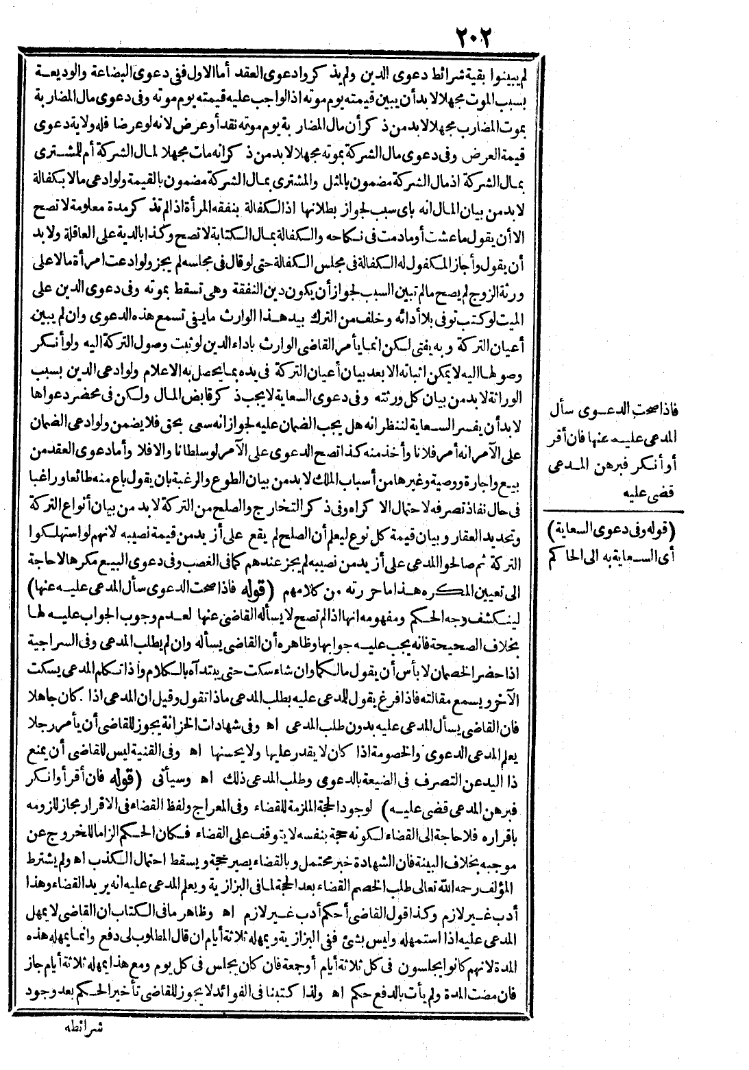 لَكِنْ إنَّمَا يَأْمُرُ الْقَاضِي الْوَارِثَ بِأَدَاءِ الدَّيْنِ لَوْ ثَبَتَ وُصُولُ التَّرِكَةِ إلَيْهِ، وَلَوْ أَنْكَرَ وُصُولَهَا إلَيْهِ لَا يُمْكِنُ إثْبَاتُهُ إلَّا بَعْدَ بَيَانِ أَعْيَانِ التَّرِكَةِ فِي يَدِهِ بِمَا يَحْصُلُ بِهِ الْإِعْلَامُ، وَلَوْ ادَّعَى الدَّيْنَ بِسَبَبِ الْوِرَاثَةِ لَا بُدَّ مِنْ بَيَانِ كُلِّ وَرَثَتِهِ، وَفِي دَعْوَى السِّعَايَةِ لَا يَجِبُ ذِكْرُ قَابِضِ الْمَالِ، وَلَكِنْ فِي مَحْضَرِ دَعْوَاهَا لَا بُدَّ أَنْ يُفَسِّرَ السِّعَايَةَ لِنَنْظُرَ أَنَّهُ هَلْ يَجِبُ الضَّمَانُ عَلَيْهِ لِجَوَازِ أَنَّهُ سَعَى بِحَقٍّ فَلَا يَضْمَنُ، وَلَوْ ادَّعَى الضَّمَانَ عَلَى الْآمِرِ أَنَّهُ أَمَرَ فُلَانًا، وَأَخَذَ مِنْهُ كَذَا تَصِحُّ الدَّعْوَى عَلَى الْآمِرِ لَوْ سُلْطَانًا، وَإِلَّا فَلَا، وَأَمَّا دَعْوَى الْعَقْدِ مِنْ بَيْعٍ، وَإِجَارَةٍ وَوَصِيَّةٍ وَغَيْرِهَا مِنْ أَسْبَابِ الْمِلْكِ لَا بُدَّ مِنْ بَيَانِ الطَّوْعِ وَالرَّغْبَةِ بِأَنْ يَقُولَ بَاعَ مِنْهُ طَائِعًا وَرَاغِبًا فِي حَالِ نَفَاذِ تَصَرُّفِهِ لِاحْتِمَالِ الْإِكْرَاهِ، وَفِي ذِكْرِ التَّخَارُجِ وَالصُّلْحِ مِنْ التَّرِكَةِ لَا بُدَّ مِنْ بَيَانِ أَنْوَاعِ التَّرِكَةِ وَتَحْدِيدِ الْعَقَارِ وَبَيَانِ قِيمَةِ كُلِّ نَوْعٍ لِيَعْلَمَ أَنَّ الصُّلْحَ لَمْ يَقَعْ عَلَى أَزْيَدَ مِنْ قِيمَةِ نَصِيبِهِ؛ لِأَنَّهُمْ لَوْ اسْتَهْلَكُوا التَّرِكَةَ ثُمَّ صَالَحُوا الْمُدَّعِيَ عَلَى أَزْيَدَ مِنْ نَصِيبِهِ لَمْ يَجُزْ عِنْدَهُمْ كَمَا فِي الْغَصْبِ، وَفِي دَعْوَى الْبَيْعِ مُكْرَهًا لَا حَاجَةَ إلَى تَعْيِينِ الْمُكْرَهِ هَذَا مَا حَرَّرْته مِنْ كَلَامِهِمْ.