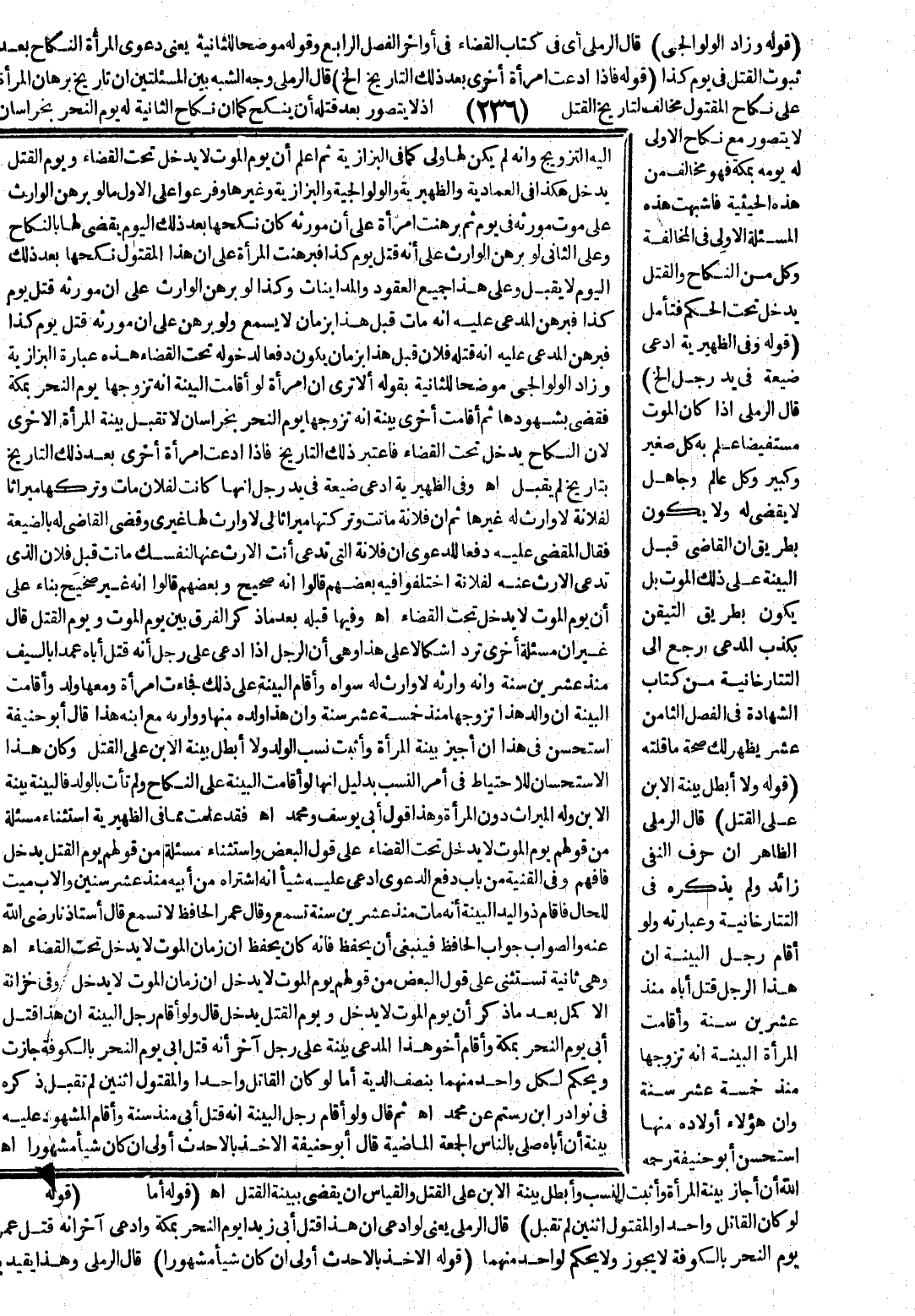 إلَيْهِ التَّزْوِيجَ وَأَنَّهُ لَمْ يَكُنْ لَهَا وَلِيٌّ كَمَا فِي الْبَزَّازِيَّةِ ثُمَّ اعْلَمْ أَنَّ يَوْمَ الْمَوْتِ لَا يَدْخُلُ تَحْتَ الْقَضَاءِ وَيَوْمَ الْقَتْلِ يَدْخُلُ هَكَذَا فِي الْعِمَادِيَّةِ وَالظَّهِيرِيَّةِ والولوالجية وَالْبَزَّازِيَّةِ وَغَيْرِهَا وَفَرَّعُوا عَلَى الْأَوَّلِ مَا لَوْ بَرْهَنَ الْوَارِثُ عَلَى مَوْتِ مُوَرِّثِهِ فِي يَوْمٍ ثُمَّ بَرْهَنَتْ امْرَأَةٌ عَلَى أَنَّ مُوَرِّثَهُ كَانَ نَكَحَهَا بَعْدَ ذَلِكَ الْيَوْمِ يُقْضَى لَهَا بِالنِّكَاحِ وَعَلَى الثَّانِي لَوْ بَرْهَنَ الْوَارِثُ عَلَى أَنَّهُ قُتِلَ يَوْمَ كَذَا فَبَرْهَنَتْ الْمَرْأَةُ عَلَى أَنَّ هَذَا الْمَقْتُولَ نَكَحَهَا بَعْدَ ذَلِكَ الْيَوْمِ لَا يُقْبَلُ وَعَلَى هَذَا جَمِيعُ الْعُقُودِ وَالْمُدَايَنَاتِ وَكَذَا لَوْ بَرْهَنَ الْوَارِثُ عَلَى أَنَّ مُوَرِّثَهُ قُتِلَ يَوْمَ كَذَا فَبَرْهَنَ الْمُدَّعَى عَلَيْهِ أَنَّهُ مَاتَ قَبْلَ هَذَا بِزَمَانٍ لَا يُسْمَعُ وَلَوْ بَرْهَنَ عَلَى أَنَّ مُوَرِّثَهُ قُتِلَ يَوْمَ كَذَا فَبَرْهَنَ الْمُدَّعَى عَلَيْهِ أَنَّهُ قَتَلَهُ فُلَانٌ قَبْلَ هَذَا بِزَمَانٍ يَكُونُ دَفْعًا لِدُخُولِهِ تَحْتَ الْقَضَاءِ هَذِهِ عِبَارَةُ الْبَزَّازِيَّةِ وَزَادَ الْوَلْوَالِجِيُّ مُوَضِّحًا لِلثَّانِيَةِ بِقَوْلِهِ أَلَا تَرَى أَنَّ امْرَأَةً لَوْ أَقَامَتْ الْبَيِّنَةَ أَنَّهُ تَزَوَّجَهَا يَوْمَ النَّحْرِ بِمَكَّةَ فَقَضَى بِشُهُودِهَا ثُمَّ أَقَامَتْ أُخْرَى بَيِّنَةً أَنَّهُ تَزَوَّجَهَا يَوْمَ النَّحْرِ بِخُرَاسَانَ لَا تُقْبَلُ بَيِّنَةُ الْمَرْأَةِ الْأُخْرَى لِأَنَّ النِّكَاحَ يَدْخُلُ تَحْتَ الْقَضَاءِ فَاعْتُبِرَ ذَلِكَ التَّارِيخُ فَإِذَا ادَّعَتْ امْرَأَةٌ أُخْرَى بَعْدَ ذَلِكَ التَّارِيخِ بِتَارِيخٍ لَمْ يُقْبَلْ اهـ.