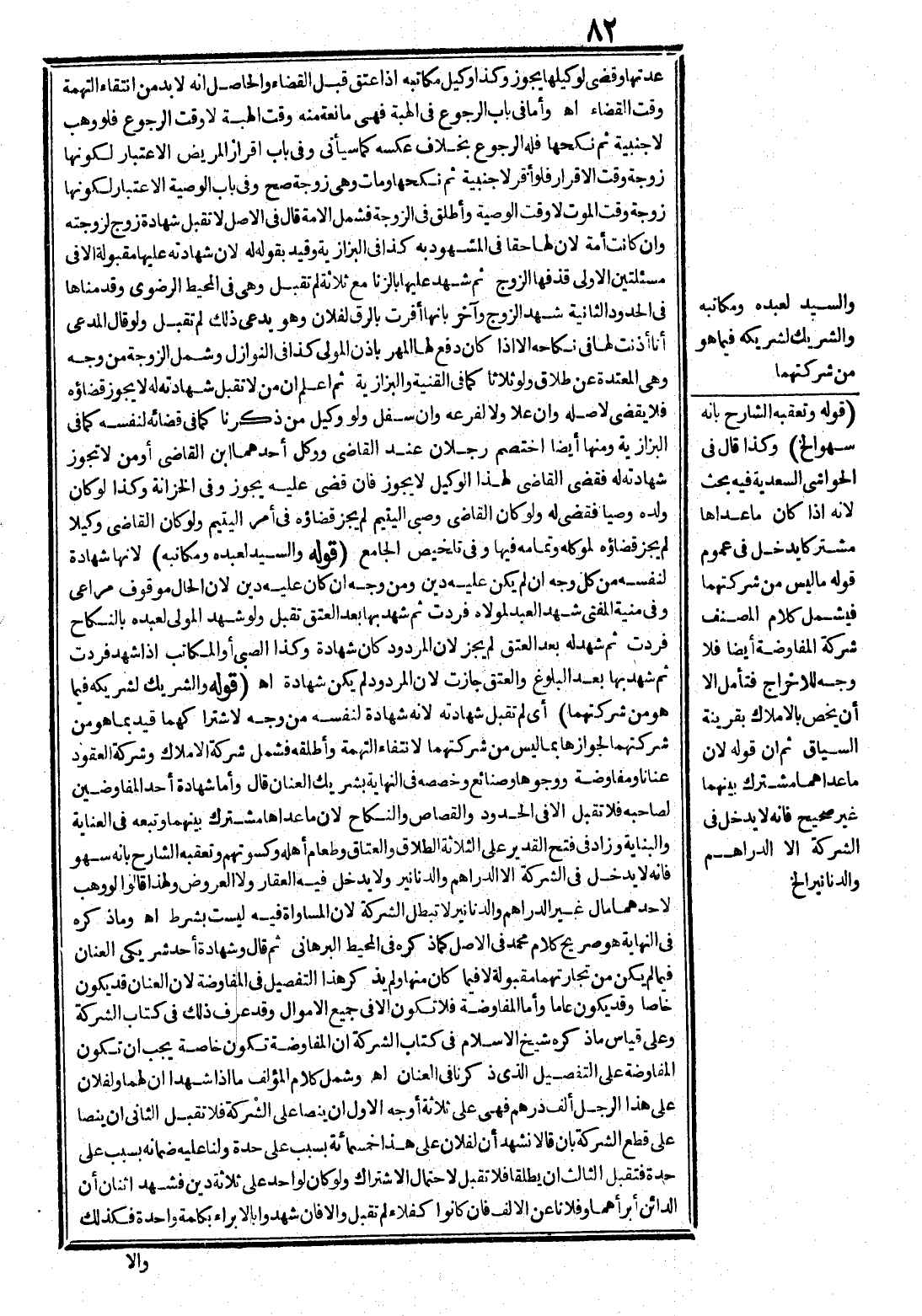 وَمَا ذَكَرَهُ فِي النِّهَايَةِ هُوَ صَرِيحُ كَلَامِ مُحَمَّدٍ فِي الْأَصْلِ كَمَا ذَكَرَهُ فِي الْمُحِيطِ الْبُرْهَانِيِّ ثُمَّ قَالَ وَشَهَادَةُ أَحَدِ شَرِيكَيْ الْعِنَانِ فِيمَا لَمْ يَكُنْ مِنْ تِجَارَتِهِمَا مَقْبُولَةٌ لَا فِيمَا كَانَ مِنْهَا وَلَمْ يَذْكُرْ هَذَا التَّفْصِيلَ فِي الْمُفَاوَضَةِ؛ لِأَنَّ الْعَنَانَ قَدْ يَكُونُ خَاصًّا وَقَدْ يَكُونُ عَامًّا، وَأَمَّا الْمُفَاوَضَةُ فَلَا تَكُونُ إلَّا فِي جَمِيعِ الْأَمْوَالِ وَقَدْ عُرِفَ ذَلِكَ فِي كِتَابِ الشَّرِكَةِ وَعَلَى قِيَاسِ مَا ذَكَرَهُ شَيْخُ الْإِسْلَامِ فِي كِتَابِ الشَّرِكَةِ أَنَّ الْمُفَاوَضَةَ تَكُونُ خَاصَّةً يَجِبُ أَنْ تَكُونَ الْمُفَاوَضَةُ عَلَى التَّفْصِيلِ الَّذِي ذَكَرْنَا فِي الْعَنَانِ اهـ.