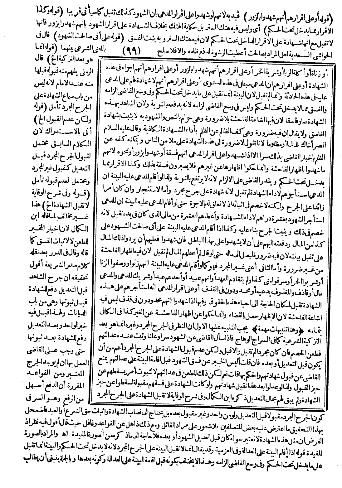 (وَهُنَا تَنْبِيهَاتٌ مُهِمَّةٌ) يَجِبُ التَّنْبِيهُ عَلَيْهَا الْأَوَّلُ أَنَّ النَّظَرَ فِي الْجَرْحِ الْمُجَرَّدِ وَغَيْرِهِ إنَّمَا هُوَ بَعْدَ التَّزْكِيَةِ الشَّرْعِيَّةِ كَمَا فِي السِّرَاجِ الْوَهَّاجِ فَإِذَا سَأَلَ الْقَاضِي عَنْ الشُّهُودِ سِرًّا وَعَلَنًا وَثَبَتَ عِنْدَهُ عَدَالَتُهُمْ فَطَعَنَ الْخَصْمُ فَإِنْ كَانَ مُجَرَّدًا لَمْ تُقْبَلْ وَإِلَّا قُبِلَ وَلَكِنَّ عَدَمَ قَبُولِ الشَّهَادَةِ عَلَى الْجَرْحِ الْمُجَرَّدِ أَعَمُّ مِنْ أَنْ يَكُونَ قَبْلَ التَّعْدِيلِ أَوْ بَعْدَهُ فَإِنْ قُلْت أَلَيْسَ الْخَبَرُ عَنْ فِسْقِ الشُّهُودِ قَبْلَ إقَامَةِ الْبَيِّنَةِ عَلَى عَدَالَتِهِمْ يَمْنَعُ الْقَاضِيَ عَنْ قَبُولِ شَهَادَتِهِمْ وَالْحُكْمِ بِهَا قُلْت نَعَمْ لَكِنْ ذَلِكَ لِلطَّعْنِ فِي عَدَالَتِهِمْ لَا لِثُبُوتِ أَمْرٍ يُسْقِطُهُمْ عَنْ حَيِّزِ الْقَبُولِ وَلِذَا لَوْ عَدَلُوا بَعْدَ هَذَا تُقْبَلُ شَهَادَتُهُمْ وَلَوْ كَانَتْ الشَّهَادَةُ عَلَى فِسْقِهِمْ مَقْبُولَةً لَسَقَطُوا عَنْ حَيِّزِ الشَّهَادَةِ وَلَمْ يَبْقَ لَهُمْ مَجَالُ التَّعْدِيلِ ذَكَرَهُ ابْنُ الْكَمَالِ وَفِي شَرْحِ الْوِقَايَةِ لَا تُقْبَلُ الشَّهَادَةُ عَلَى الْجَرْحِ الْمُجَرَّدِ