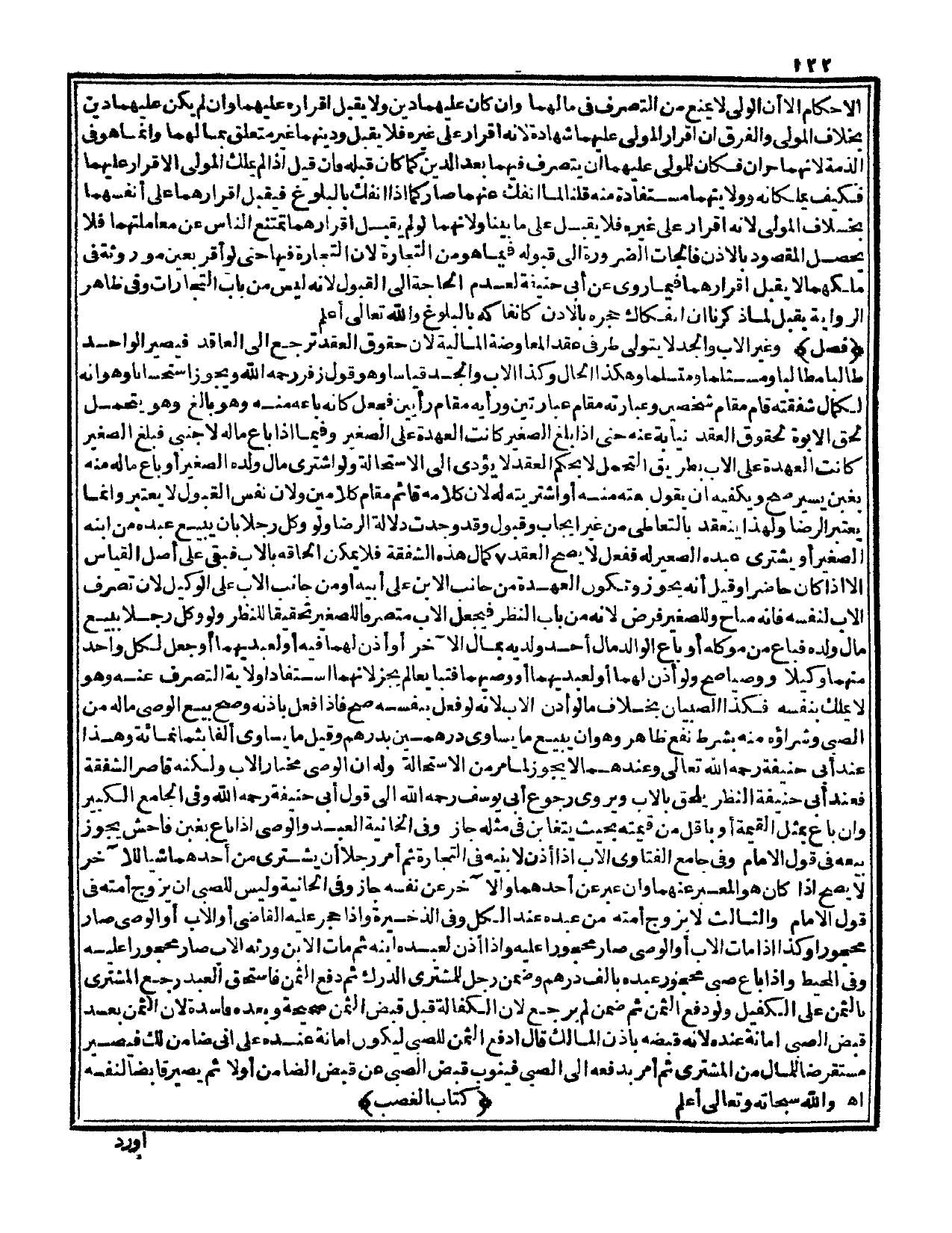 (فَصْلٌ) وَغَيْرُ الْأَبِ، وَالْجَدِّ لَا يَتَوَلَّى طَرَفَيْ عَقْدِ الْمُعَاوَضَةِ الْمَالِيَّةِ؛ لِأَنَّ حُقُوقَ الْعَقْدِ تَرْجِعُ إلَى الْعَاقِدِ فَيَصِيرُ الْوَاحِدُ طَالِبًا مُطَالَبًا وَمُسْتَلَمًا وَمُتَسَلِّمًا وَهَكَذَا الْحَالُ وَكَذَا الْأَبُ، وَالْجَدُّ قِيَاسًا وَهُوَ قَوْلُ زُفَرَ - رَحِمَهُ اللَّهُ - وَيَجُوزُ اسْتِحْسَانًا وَهُوَ أَنَّهُ لِكَمَالِ شَفَقَتِهِ قَامَ مَقَامَ شَخْصَيْنِ وَعِبَارَتُهُ مَقَامَ عِبَارَتَيْنِ وَرَأْيُهُ مَقَامَ رَأْيَيْنِ فَجُعِلَ كَأَنَّهُ بَاعَهُ مِنْهُ وَهُوَ بَالِغٌ وَهُوَ يَتَحَمَّلُ لِحَقِّ الْأُبُوَّةِ لِحُقُوقِ الْعَقْدِ نِيَابَةً عَنْهُ حَتَّى إذَا بَلَغَ الصَّغِيرُ كَانَتْ الْعُهْدَةُ عَلَى الصَّغِيرِ وَفِيمَا إذَا بَاعَ مَالَهُ لِأَجْنَبِيٍّ فَبَلَغَ الصَّغِيرُ كَانَتْ الْعُهْدَةُ عَلَى الْأَبِ بِطَرِيقِ التَّحَمُّلِ لَا بِحُكْمِ الْعَقْدِ لَا يُؤَدِّي إلَى الِاسْتِحَالَةِ.