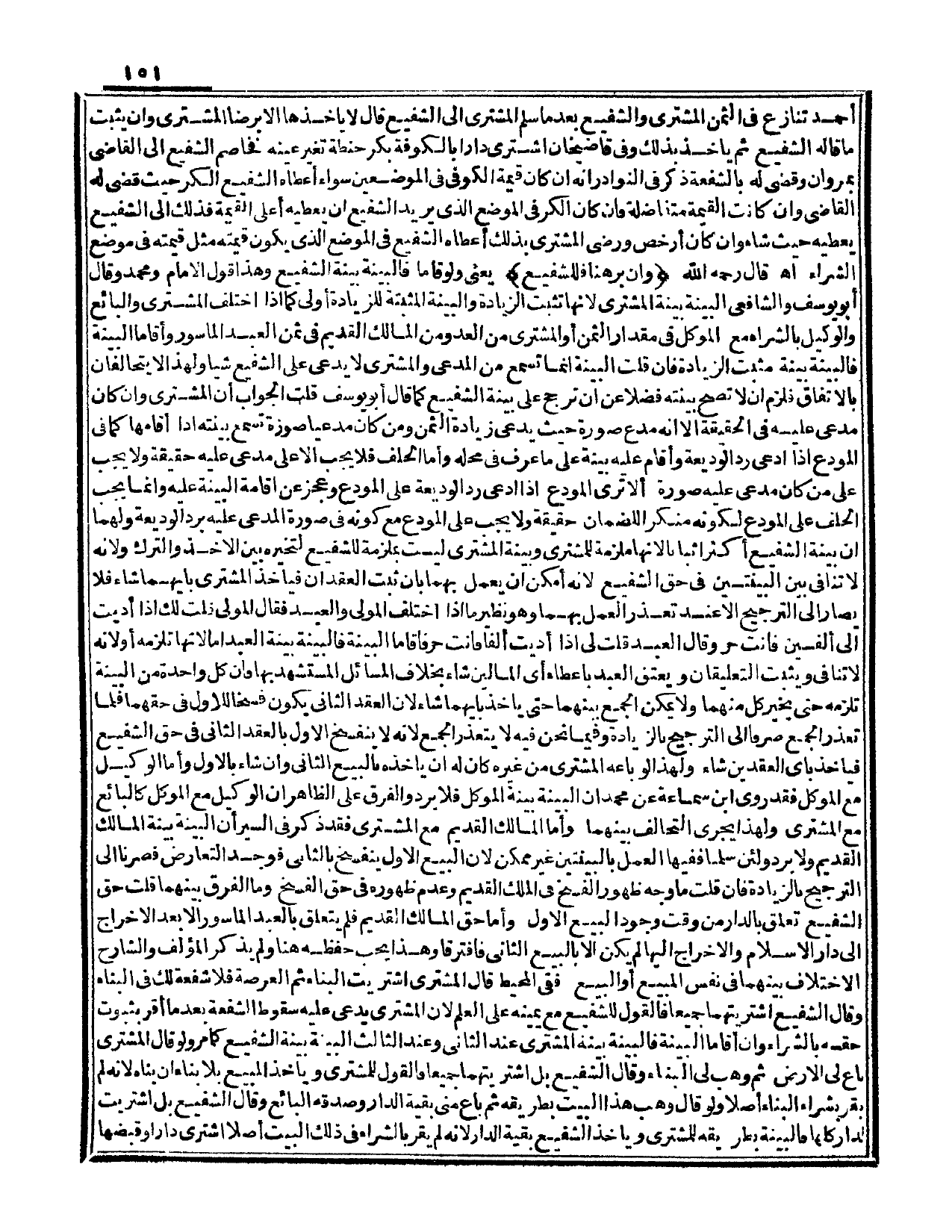 تَنَازَعَ فِي الثَّمَنِ الْمُشْتَرِي وَالشَّفِيعُ بَعْدَمَا سَلَّمَ الْمُشْتَرِي إلَى الشَّفِيعِ قَالَ لَا يَأْخُذُهَا إلَّا بِرِضَا الْمُشْتَرِي وَأَنْ يَثْبُتَ مَا قَالَهُ الشَّفِيعُ ثُمَّ يَأْخُذَ بِذَلِكَ وَفِي قَاضِي خان اشْتَرَى دَارًا بِالْكُوفَةِ بِكُرِّ حِنْطَةٍ تَغَيَّرَ عَيْنُهُ فَخَاصَمَ الشَّفِيعُ إلَى الْقَاضِي بِمَرْوَانَ وَقَضَى لَهُ بِالشُّفْعَةِ ذَكَرَ فِي النَّوَادِرِ أَنَّهُ إنْ كَانَ قِيمَةُ الْكُوفِيِّ فِي الْمَوْضِعَيْنِ سَوَاءٌ أَعْطَاهُ الشَّفِيعُ الْكُرَّ حَيْثُ قَضَى لَهُ الْقَاضِي، وَإِنْ كَانَتْ الْقِيمَةُ مُتَفَاضِلَةً، فَإِنْ كَانَ الْكُرُّ فِي الْمَوْضِعِ الَّذِي يُرِيدُ الشَّفِيعُ أَنْ يُعْطِيَهُ الْقِيمَةَ فِي ذَلِكَ إلَى الشَّفِيعِ يُعْطِيهِ حَيْثُ شَاءَ، وَإِنْ كَانَ أَرْخَصَ وَرَضِيَ الْمُشْتَرِي بِذَلِكَ أَعْطَاهُ الشَّفِيعُ فِي الْمَوْضِعِ الَّذِي يَكُونُ قِيمَتُهُ مِثْلَ قِيمَتِهِ فِي مَوْضِعِ الشِّرَاءِ. اهـ.