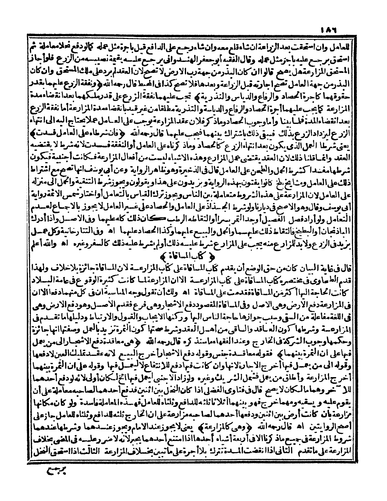 (كِتَابُ الْمُسَاقَاةِ) قَالَ: فِي غَايَةِ الْبَيَانِ كَانَ مِنْ حَقِّ الْوَضْعِ أَنْ يُقَدَّمَ كِتَابُ الْمُسَاقَاةِ عَلَى كِتَابِ الْمُزَارَعَةِ لِأَنَّ الْمُسَاقَاةَ جَائِزَةٌ بِلَا خِلَافٍ وَلِهَذَا قَدَّمَ الطَّحَاوِيُّ فِي مُخْتَصَرِهِ كِتَابَ الْمُسَاقَاةِ عَلَى كِتَابِ الْمُزَارَعَةِ إلَّا أَنَّ الْمُزَارَعَةَ لَمَّا كَانَتْ كَثِيرَةَ الْوُقُوعِ فِي عَامَّةِ الْبِلَادِ كَانَتْ الْحَاجَةُ إلَيْهَا أَكْثَرَ مِنْ الْمُسَاقَاةِ فَقُدِّمَتْ عَلَى الْمُسَاقَاةِ اهـ.