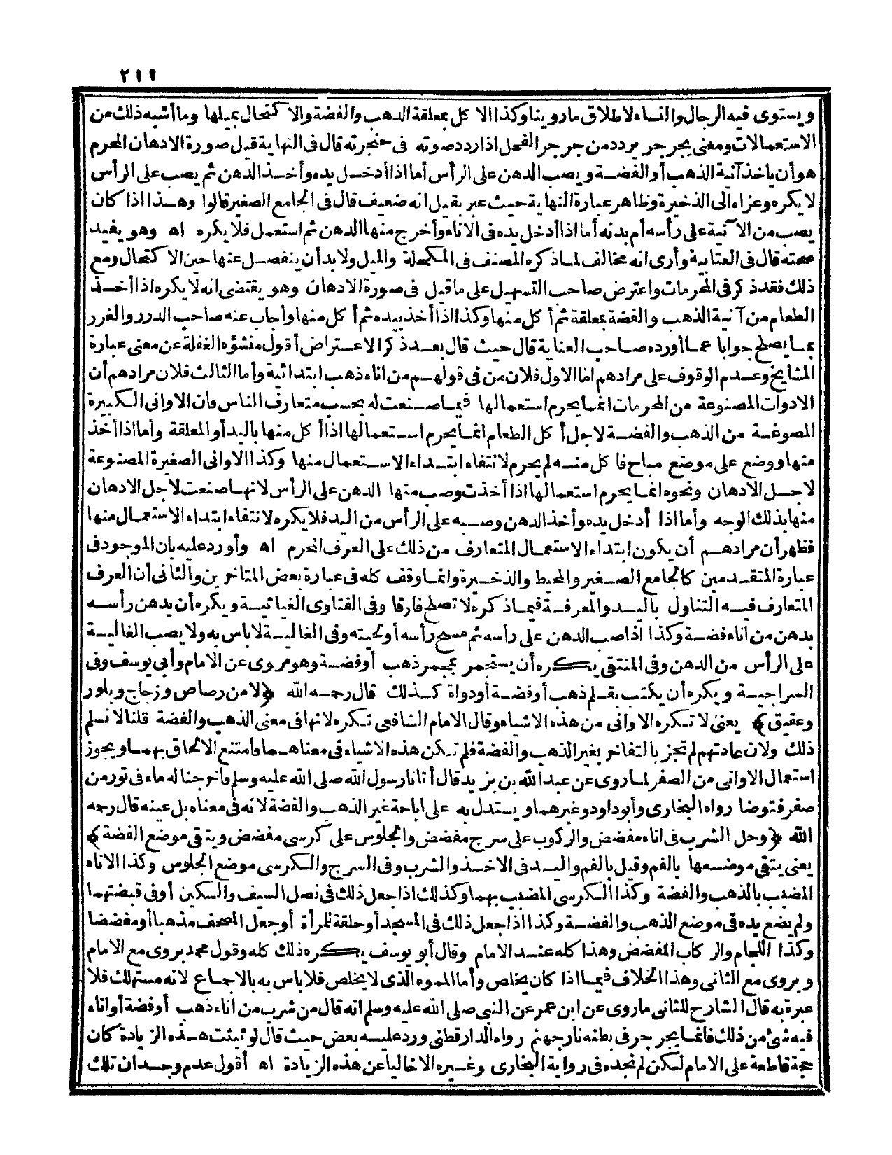 وَأُورِدَ عَلَيْهِ بِأَنَّ الْمَوْجُودَ فِي عِبَارَةِ الْمُتَقَدِّمِينَ كَالْجَامِعِ الصَّغِيرِ وَالْمُحِيطِ وَالذَّخِيرَةِ، وَإِنَّمَا وَقَفَ كُلُّهُ فِي عِبَارَةِ بَعْضِ الْمُتَأَخِّرِينَ، وَالثَّالِثُ أَنَّ الْعُرْفَ الْمُتَعَارَفَ فِيهِ التَّنَاوُلُ بِالْيَدِ وَالْمَعْرِفَةُ فِيمَا ذَكَرَهُ لَا تَصْلُحُ فَارِقًا، وَفِي الْفَتَاوَى الْغِيَاثِيَّةِ: وَيُكْرَهُ أَنْ يُدْهِنَ رَأْسَهُ بِدُهْنٍ مِنْ إنَاءِ فِضَّةٍ وَكَذَا إذَا صَبَّ الدُّهْنَ عَلَى رَأْسِهِ، ثُمَّ مَسَحَ رَأْسَهُ، أَوْ لِحْيَتَهُ، وَفِي الْغَالِيَةِ لَا بَأْسَ وَلَا يَصُبُّ الْغَالِيَةَ عَلَى الرَّأْسِ مِنْ الدُّهْنِ، وَفِي الْمُنْتَقَى: يُكْرَهُ أَنْ يَسْتَجْمِرَ بِمِجْمَرِ ذَهَبٍ، أَوْ فِضَّةٍ وَهُوَ مَرْوِيٌّ عَنْ الْإِمَامِ وَأَبِي يُوسُفَ، وَفِي السِّرَاجِيَّةِ: وَيُكْرَهُ أَنْ يَكْتُبَ بِقَلَمِ ذَهَبٍ، أَوْ فِضَّةٍ، أَوْ دَوَاةٍ كَذَلِكَ.