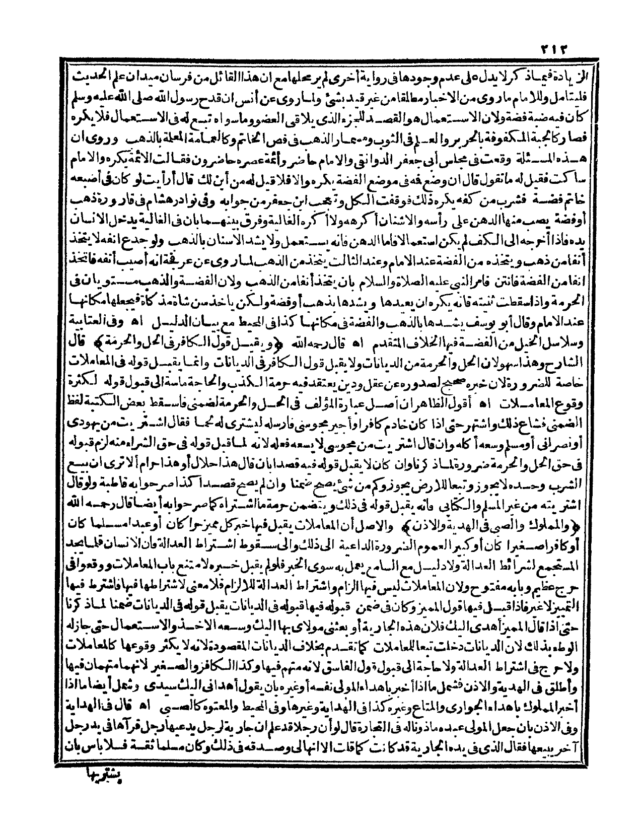 الزِّيَادَةِ فِيمَا ذَكَرَ لَا يَدُلُّ عَلَى عَدَمِ وُجُودِهَا فِي رِوَايَةٍ أُخْرَى لَمْ يَرَ مَحَلَّهَا مَعَ أَنَّ هَذَا الْقَائِلَ مِنْ فُرْسَانِ مَيْدَانِ عِلْمِ الْحَدِيثِ فَلْيَتَأَمَّلْ وَلِلْإِمَامِ مَا رُوِيَ مِنْ الْأَخْبَارِ مُطْلَقًا مِنْ غَيْرِ قَيْدٍ بِشَيْءٍ وَلِمَا رُوِيَ عَنْ أَنَسٍ «أَنَّ قَدَحَ رَسُولِ اللَّهِ - صَلَّى اللَّهُ عَلَيْهِ وَسَلَّمَ - كَانَ فِيهِ ضَبَّةُ فِضَّةٍ» وَلِأَنَّ الِاسْتِعْمَالَ هُوَ الْقَصْدُ لِلْجُزْءِ الَّذِي يُلَاقِي الْعُضْوَ وَمَا سِوَاهُ تَبَعٌ لَهُ فِي الِاسْتِعْمَالِ فَلَا يُكْرَهُ فَصَارَ كَالْجُبَّةِ الْمَكْفُوفَةِ بِالْحَرِيرِ وَالْعَلَمِ فِي الثَّوْبِ وَمِسْمَارِ الذَّهَبِ فِي فَصِّ الْخَاتَمِ وَكَالْعِمَامَةِ الْمُعَلَّمَةِ بِالذَّهَبِ وَرُوِيَ أَنَّ هَذِهِ الْمَسْأَلَةَ وَقَعَتْ فِي مَجْلِسِ أَبِي جَعْفَرٍ الدَّوَانِقِيِّ وَالْإِمَامُ حَاضِرٌ وَأَئِمَّةُ عَصْرِهِ حَاضِرُونَ فَقَالَتْ الْأَئِمَّةُ: يُكْرَهُ وَالْإِمَامُ سَاكِتٌ فَقِيلَ لَهُ مَا تَقُولُ قَالَ إنْ وَضَعَ فَمَهُ فِي مَوْضِعِ الْفِضَّةِ يُكْرَهُ، وَإِلَّا فَلَا قِيلَ لَهُ: مِنْ أَيْنَ لَك؟ قَالَ: أَرَأَيْتَ لَوْ كَانَ فِي أُصْبُعِهِ خَاتَمُ فِضَّةٍ فَشَرِبَ مِنْ كَفِّهِ يُكْرَهُ ذَلِكَ فَوَقَفَ الْكُلُّ وَتَعَجَّبَ ابْنُ جَعْفَرٍ مِنْ جَوَابِهِ، وَفِي نَوَادِرِ هِشَامٍ فِي قَارُورَةِ ذَهَبٍ، أَوْ فِضَّةٍ يَصُبُّ مِنْهَا الدُّهْنَ عَلَى رَأْسِهِ وَالْأُشْنَانَ أَكْرَهُهُ وَلَا أَكْرَهُ الْغَالِيَةَ وَفَرَّقَ بَيْنَهُمَا بِأَنَّ فِي الْغَالِيَةِ يُدْخِلُ الْإِنْسَانُ يَدَهُ فَإِذَا أَخْرَجَهُ إلَى الْكَفِّ لَمْ يَكُنْ اسْتِعْمَالًا فَأَمَّا الدُّهْنُ فَإِنَّهُ يُسْتَعْمَلُ وَلَا يَشُدُّ الْأَسْنَانَ بِالذَّهَبِ وَلَوْ جُدِعَ أَنْفُهُ لَا يَتَّخِذُ أَنْفًا مِنْ ذَهَبٍ وَيَتَّخِذُهُ مِنْ الْفِضَّةِ عِنْدَ الْإِمَامِ وَعِنْدَ الثَّالِثِ يَتَّخِذُ مِنْ الذَّهَبِ لِمَا رُوِيَ «عَنْ عَرْفَجَةَ أَنَّهُ أُصِيبَ أَنْفُهُ فَاتَّخَذَ أَنْفًا مِنْ الْفِضَّةِ فَأَنْتَنَ فَأَمَرَ النَّبِيُّ - عَلَيْهِ الصَّلَاةُ وَالسَّلَامُ - بِأَنْ يَتَّخِذَ أَنْفًا مِنْ الذَّهَبِ» وَلِأَنَّ الْفِضَّةَ وَالذَّهَبَ مُسْتَوِيَانِ فِي الْحُرْمَةِ إذَا سَقَطَتْ ثَنِيَّتُهُ فَإِنَّهُ يُكْرَهُ أَنْ يُعِيدَهَا وَيَشُدَّهَا بِذَهَبٍ، أَوْ فِضَّةٍ وَلَكِنْ يَأْخُذُ سِنَّ شَاةٍ مُذَكَّاةٍ فَيَجْعَلُهَا مَكَانَهَا عِنْدَ الْإِمَامِ وَقَالَ أَبُو يُوسُفَ: يَشُدُّهَا بِالذَّهَبِ وَالْفِضَّةِ فِي مَكَانِهَا كَذَا فِي الْمُحِيطِ مَعَ بَيَانِ الدَّلِيلِ اهـ.