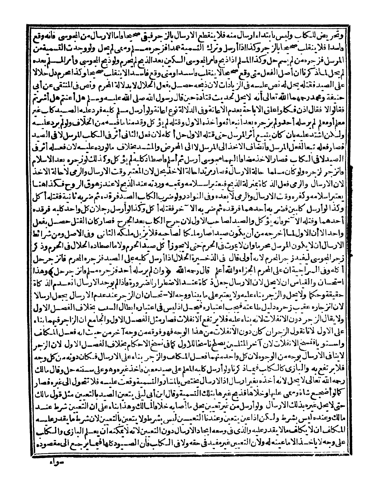 قَالَ: - رَحِمَهُ اللَّهُ - (وَإِنْ لَمْ يُرْسِلْهُ أَحَدٌ فَزَجَرَهُ مُسْلِمٌ فَانْزَجَرَ حَلَّ) وَهَذَا اسْتِحْسَانٌ وَالْقِيَاسُ أَنْ لَا يَحِلَّ؛ لِأَنَّ الْإِرْسَالَ جُعِلَ ذَكَاةً عِنْدَ الِاضْطِرَارِ لِلضَّرُورَةِ فَإِذَا لَمْ يُوجَدْ الْإِرْسَالُ انْعَدَمَ الذَّكَاةُ حَقِيقَةً وَحُكْمًا وَلَا يَحِلُّ وَالزَّجْرُ بِنَاءٌ عَلَيْهِ وَلَا يُعْتَبَرُ عَلَى مَا بَيَّنَّا وَوَجْهُ الِاسْتِحْسَانِ أَنَّ الزَّجْرَ عِنْدَ عَدَمِ الْإِرْسَالِ يُجْعَلُ إرْسَالًا؛ لِأَنَّ انْزِجَارَهُ عَقِيبَ زَجْرِهِ دَلِيلُ طَاعَتِهِ فَيَجِبُ اعْتِبَارُهُ فَيَحِلُّ، إذْ لَيْسَ فِي اعْتِبَارِهِ إبْطَالُ السَّبَبِ بِخِلَافِ الْفَصْلِ الْأَوَّلِ وَلَا يُقَالُ الزَّجْرُ دُونَ الِانْفِلَاتِ لِأَنَّهُ بِنَاءٌ عَلَيْهِ فَلَا يَرْتَفِعُ الِانْفِلَاتُ فَصَارَ مِثْلَ الْفَصْلِ الْأَوَّلِ وَالْجَامِعُ أَنَّ الزَّاجِرَ فِيهِمَا بِنَاءٌ عَلَى الْأَوَّلِ؛ لِأَنَّا نَقُولُ الزَّجْرُ إنْ كَانَ دُونَ الِانْفِلَاتِ مِنْ هَذَا الْوَجْهِ فَهُوَ فَوْقَهُ مِنْ وَجْهٍ آخَرَ مِنْ حَيْثُ إنَّهُ فِعْلُ الْمُكَلَّفِ وَاسْتَوَيَا فَنُسِخَ الِانْفِلَاتُ؛ لِأَنَّ آخِرَ الْمِثْلَيْنِ يَصْلُحُ نَاسِخًا لِلْأَوَّلِ كَمَا فِي نَسْخِ الْأَحْكَامِ بِخِلَافِ الْفَصْلِ الْأَوَّلِ؛ لِأَنَّ الزَّجْرَ لَا يُنَافِي الْإِرْسَالَ بِوَجْهٍ مِنْ الْوُجُوهِ؛ لِأَنَّ كُلَّ وَاحِدٍ مِنْهُمَا فِعْلُ الْمُكَلَّفِ.