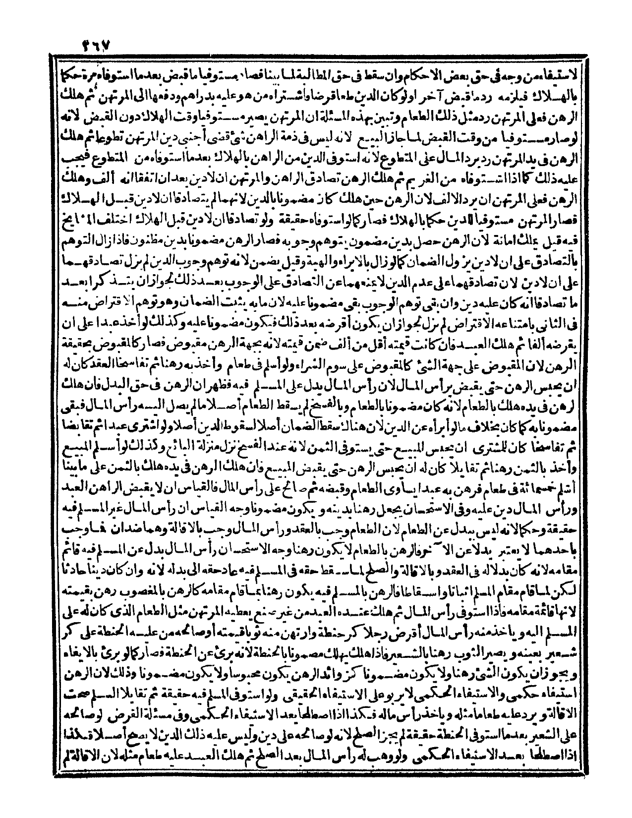 وَقِيلَ يَضْمَنُ؛ لِأَنَّهُ تَوَهَّمَ وُجُوبَ الدَّيْنِ لَمْ يَزَلْ تَصَادُقُهُمَا عَلَى أَنْ لَا دَيْنَ؛ لِأَنَّ تَصَادُقَهُمَا عَلَى عَدَمِ الدَّيْنِ لَا يَمْنَعُهُمَا عَنْ التَّصَادُقِ عَلَى الْوُجُوبِ بَعْدَ ذَلِكَ لِجَوَازِ أَنْ يَتَذَكَّرَا بَعْدَ مَا تَصَادَقَا أَنَّهُ كَانَ عَلَيْهِ دَيْنٌ، وَإِنْ بَقِيَ تَوَهُّمُ الْوُجُوبِ بَقِيَ مَضْمُونًا عَلَيْهِ؛ لِأَنَّ مَا بِهِ يُثْبِتُ الضَّمَانَ وَهُوَ تَوَهُّمُ الِاقْتِرَاضِ مِنْهُ فِي الثَّانِي بِامْتِنَاعِهِ الِاقْتِرَاضَ لَمْ يَزَلْ لِجَوَازِ أَنْ يَكُونَ أَقْرَضَهُ بَعْدَ ذَلِكَ فَيَكُونُ مَضْمُونًا عَلَيْهِ، وَكَذَلِكَ لَوْ أَخَذَ عَبْدًا عَلَى أَنْ يُقْرِضَهُ أَلْفًا، ثُمَّ هَلَكَ الْعَبْدُ، فَإِنْ كَانَتْ قِيمَتُهُ أَقَلَّ مِنْ أَلْفٍ ضَمِنَ قِيمَتَهُ؛ لِأَنَّهُ بِجِهَةٍ الرَّهْنِ مَقْبُوضٌ فَصَارَ كَالْمَقْبُوضِ بِحَقِيقَةٍ الرَّهْنِ؛ لِأَنَّ الْمَقْبُوضَ عَلَى جِهَةِ الشَّيْءِ كَالْمَقْبُوضِ عَلَى سَوْمِ الشِّرَاءِ، وَلَوْ أَسْلَمَ فِي طَعَامٍ وَأَخَذَ بِهِ رَهْنًا، ثُمَّ تَفَاسَخَا الْعَقْدَ كَانَ لَهُ أَنْ يَحْبِسَ الرَّهْنَ حَتَّى يَقْبِضَ بِرَأْسِ الْمَالِ؛ لِأَنَّ رَأْسَ الْمَالِ يَدُلُّ عَلَى الْمُسْلَمِ فِيهِ فَظَهَرَ أَنَّ الرَّهْنَ فِي حَقِّ الْبَدَلِ، فَإِنْ هَلَكَ الرَّهْنُ فِي يَدِهِ هَلَكَ بِالطَّعَامِ؛ لِأَنَّهُ كَانَ مَضْمُونًا بِالطَّعَامِ وَبِالْفَسْخِ لَمْ يَسْقُطْ الطَّعَامُ أَصْلًا مَا لَمْ يَصِلْ إلَيْهِ رَأْسُ الْمَالِ فَبَقِيَ مَضْمُونًا بِهِ كَمَا كَانَ بِخِلَافِ مَا لَوْ أَبْرَأَهُ عَنْ الدَّيْنِ؛ لِأَنَّ هُنَاكَ سَقَطَ الضَّمَانُ أَصْلًا لِسُقُوطِ الدَّيْنِ أَصْلًا، وَلَوْ اشْتَرَى عَبْدًا، ثُمَّ تَقَابَضَا، ثُمَّ تَفَاسَخَا كَانَ لِلْمُشْتَرِي أَنْ يَحْبِسَ الْمَبِيعَ حَتَّى يَسْتَوْفِيَ الثَّمَنَ؛ لِأَنَّهُ عِنْدَ الْفَسْخِ نَزَلَ مَنْزِلَةَ الْبَائِعِ.