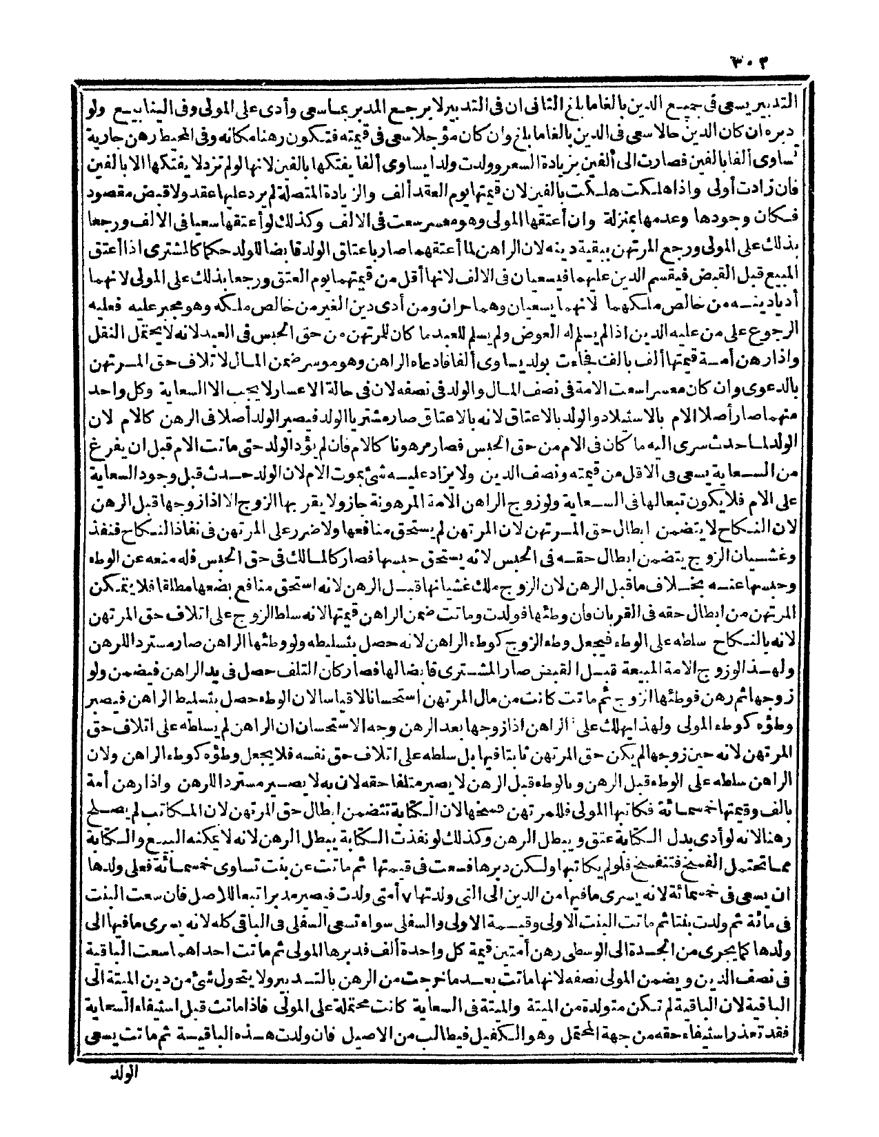 التَّدْبِيرِ يَسْعَى فِي جَمِيعِ الدَّيْنِ بَالِغًا مَا بَلَغَ الثَّانِي أَنَّ فِي التَّدْبِيرِ لَا يَرْجِعُ الْمُدَبَّرُ بِمَا سَعَى وَأَدَّى عَلَى الْمَوْلَى، وَفِي الْيَنَابِيعِ، وَلَوْ دَبَّرَهُ إنْ كَانَ الدَّيْنُ حَالًّا سَعَى فِي الدَّيْنِ بَالِغًا مَا بَلَغَ، وَإِنْ كَانَ مُؤَجَّلًا سَعَى فِي قِيمَتِهِ فَتَكُونُ رَهْنًا مَكَانَهُ.
