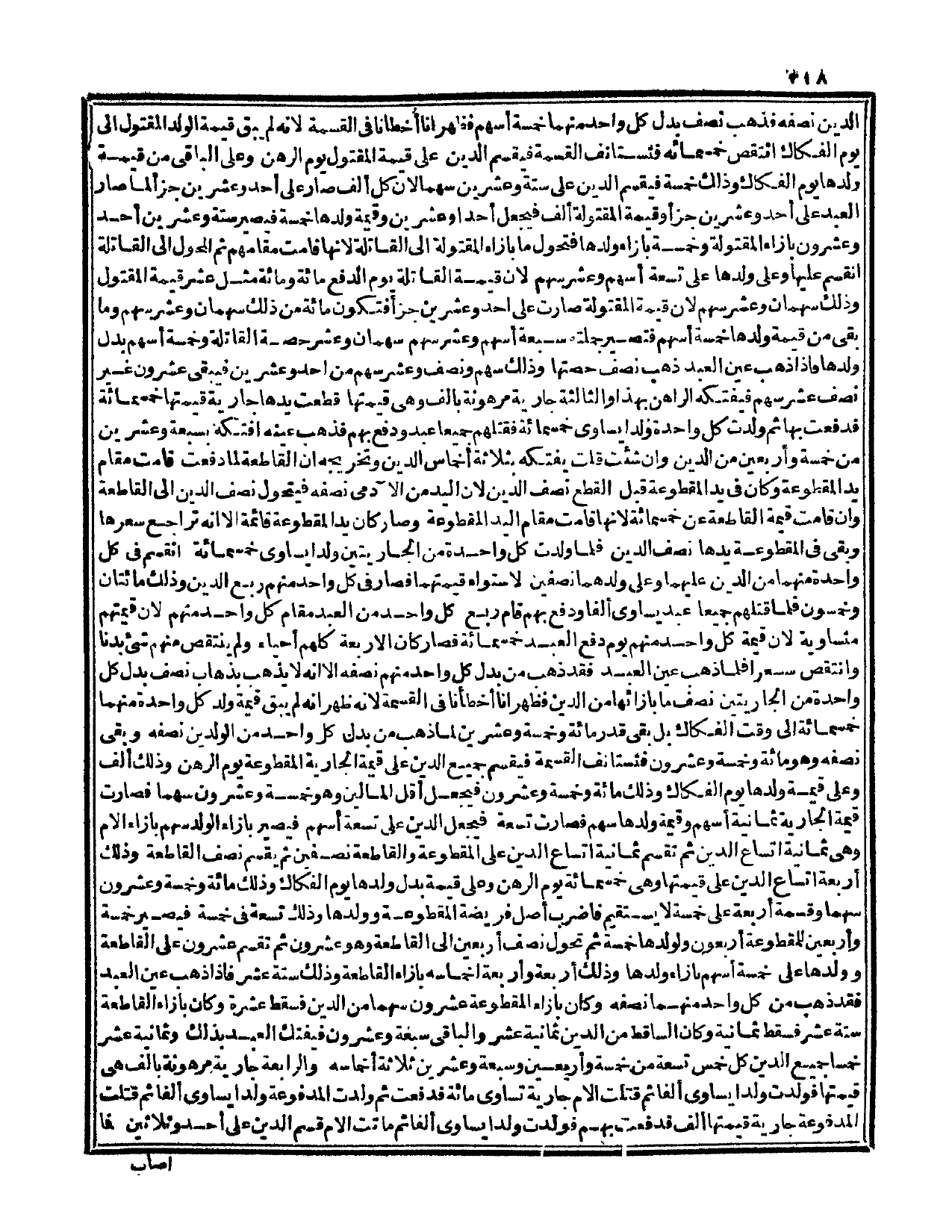 وَكَانَ السَّاقِطُ مِنْ الدَّيْنِ ثَمَانِيَةَ عَشَرَ وَالْبَاقِي سَبْعَةٌ وَعِشْرُونَ فَيُفْتَكُّ الْعَبْدُ بِذَلِكَ وَثَمَانِيَةَ عَشَرَ خُمُسًا جَمِيعُ الدَّيْنِ كُلُّ خُمُسٍ تِسْعَةٌ مِنْ خَمْسَةٍ وَأَرْبَعِينَ وَسَبْعَةٍ وَعِشْرِينَ ثَلَاثَةُ أَخْمَاسِهِ.
