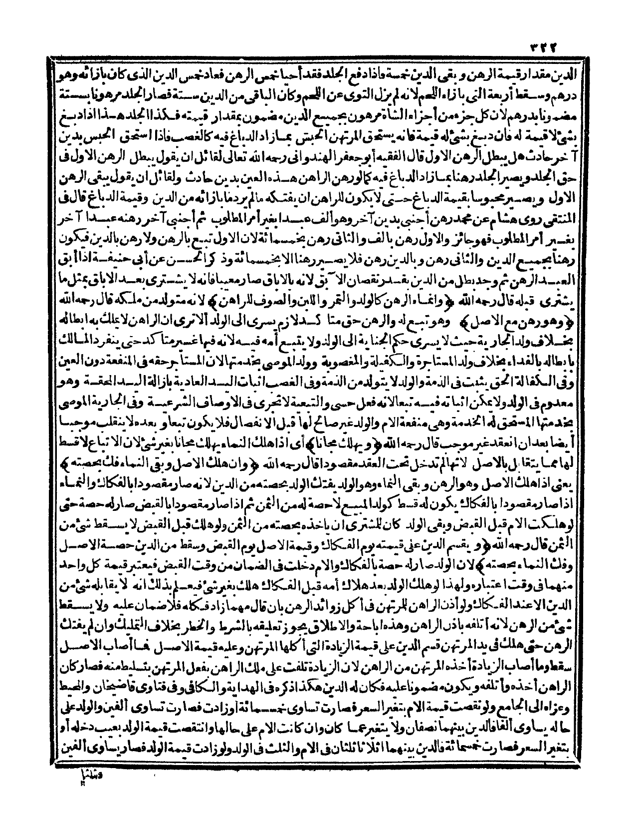 قَالَ - رَحِمَهُ اللَّهُ - (وَإِنْ هَلَكَ الْأَصْلُ وَبَقِيَ النَّمَاءُ فُكَّ بِحِصَّتِهِ) يَعْنِي إذَا هَلَكَ الْأَصْلُ وَهُوَ الرَّهْنُ وَبَقِيَ النَّمَاءُ وَهُوَ الْوَلَدُ يُفْتَكُّ الْوَلَدُ بِحِصَّتِهِ مِنْ الدَّيْنِ؛ لِأَنَّهُ صَارَ مَقْصُودًا بِالْفِكَاكِ وَالنَّمَاءُ إذَا صَارَ مَقْصُودًا بِالْفِكَاكِ يَكُونُ لَهُ قِسْطٌ كَوَلَدِ الْمَبِيعِ لَا حِصَّةَ لَهُ مِنْ الثَّمَنِ، ثُمَّ إذَا صَارَ مَقْصُودًا بِالْقَبْضِ صَارَ لَهُ حِصَّةٌ حَتَّى لَوْ هَلَكَتْ الْأُمُّ قَبْلَ الْقَبْضِ وَبَقِيَ الْوَلَدُ كَانَ لِلْمُشْتَرِي أَنْ يَأْخُذَهُ بِحِصَّتِهِ مِنْ الثَّمَنِ، وَلَوْ هَلَكَ قَبْلَ الْقَبْضِ لَا يَسْقُطُ شَيْءٌ مِنْ الثَّمَنِ. قَالَ - رَحِمَهُ اللَّهُ - (وَيُقْسَمُ الدَّيْنُ عَلَى قِيمَتِهِ يَوْمَ الْفِكَاكِ وَقِيمَةُ الْأَصْلِ يَوْمَ الْقَبْضِ وَسَقَطَ مِنْ الدَّيْنِ حِصَّةُ الْأَصْلِ وَفُكَّ النَّمَاءُ بِحِصَّتِهِ) ؛ لِأَنَّ الْوَلَدَ صَارَ لَهُ حِصَّةٌ بِالْفِكَاكِ وَالْأُمُّ دَخَلَتْ فِي الضَّمَانِ مِنْ وَقْتِ الْقَبْضِ فَيُعْتَبَرُ قِيمَةُ كُلِّ وَاحِدٍ مِنْهُمَا فِي وَقْتِ اعْتِبَارِهِ وَلِهَذَا لَوْ هَلَكَ الْوَلَدُ بَعْدَ هَلَاكِ أُمِّهِ قَبْلَ الْفِكَاكِ هَلَكَ بِغَيْرِ شَيْءٍ فَيُعْلَمُ بِذَلِكَ أَنَّهُ لَا يُقَابِلُهُ شَيْءٌ مِنْ الدَّيْنِ إلَّا عِنْدَ الْفِكَاكِ.
