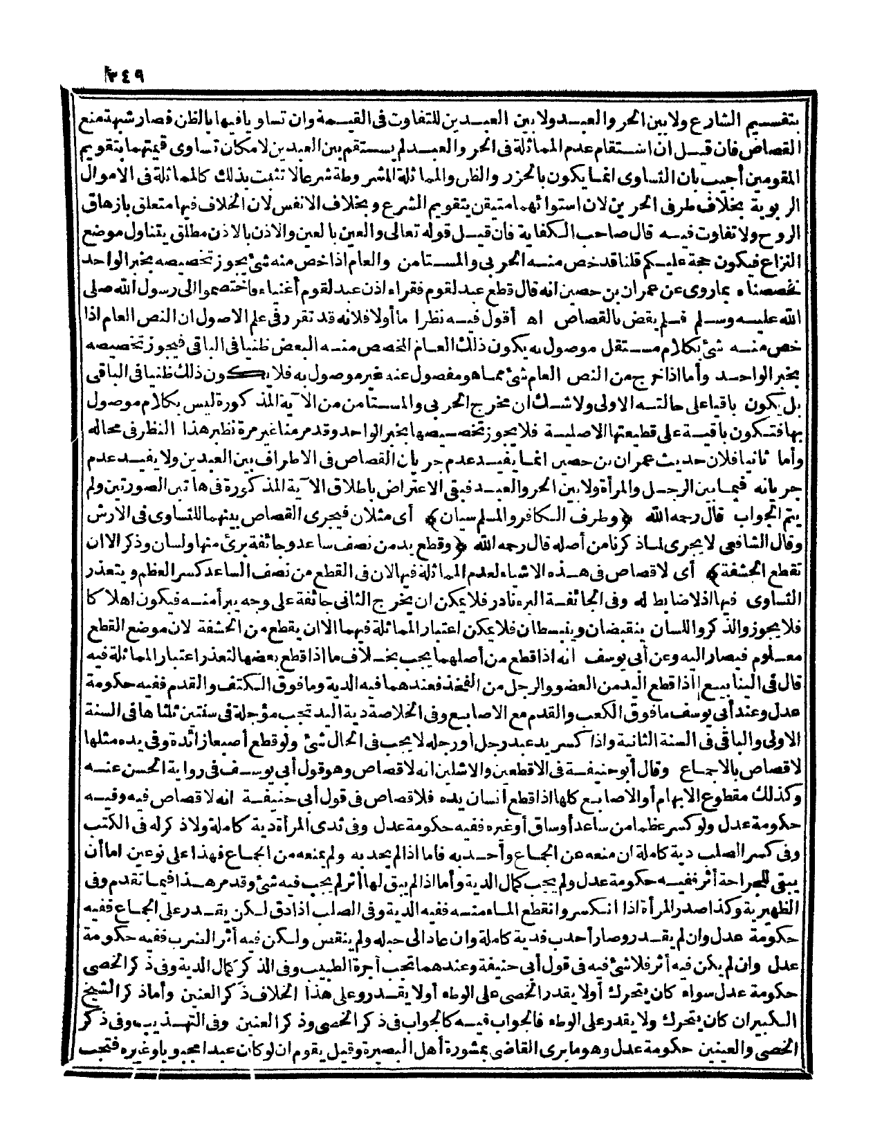بِتَقْسِيمِ الشَّارِعِ، وَلَا بَيْنَ الْحُرِّ وَالْعَبْدِ وَلَا بَيْنَ الْعَبْدَيْنِ لِلتَّفَاوُتِ فِي الْقِيمَةِ، وَإِنْ تَسَاوَيَا فِيهَا بِالظَّنِّ، فَصَارَ شُبْهَةً مُنِعَ الْقِصَاصُ، فَإِنْ قِيلَ إنْ اسْتَقَامَ عَدَمُ الْمُمَاثَلَةِ فِي الْحُرِّ وَالْعَبْدِ لَمْ يَسْتَقِمْ بَيْنَ الْعَبْدَيْنِ لِإِمْكَانِ تَسَاوِي قِيمَتِهِمَا بِتَقْوِيمِ الْمُقَوِّمِينَ أُجِيبَ بِأَنَّ التَّسَاوِيَ إنَّمَا يَكُونُ بِالْحَزْرِ وَالظَّنِّ وَالْمُمَاثَلَةِ الْمَشْرُوطَةِ شَرْعًا لَا تَثْبُتُ بِذَلِكَ كَالْمُمَاثَلَةِ فِي الْأَمْوَالِ الرِّبَوِيَّةِ بِخِلَافِ طَرَفَيْ الْحُرَّيْنِ؛ لِأَنَّ اسْتِوَاءَهُمَا مُتَيَقَّنٌ بِتَقْوِيمِ الشَّرْعِ وَبِخِلَافِ الْأَنْفُسِ؛ لِأَنَّ الْخِلَافَ فِيهَا مُتَعَلِّقٌ بِإِزْهَاقِ الرُّوحِ، وَلَا تَفَاوُتَ فِيهِ قَالَ صَاحِبُ الْكِفَايَةِ: فَإِنْ قِيلَ قَوْله تَعَالَى {وَالْعَيْنَ بِالْعَيْنِ وَالأَنْفَ بِالأَنْفِ وَالأُذُنَ بِالأُذُنِ} [المائدة: 45] مُطْلَقٌ يَتَنَاوَلُ مَوْضِعَ النِّزَاعِ فَيَكُونُ حُجَّةً عَلَيْكُمْ قُلْنَا قَدْ خُصَّ مِنْهُ الْحَرْبِيُّ.