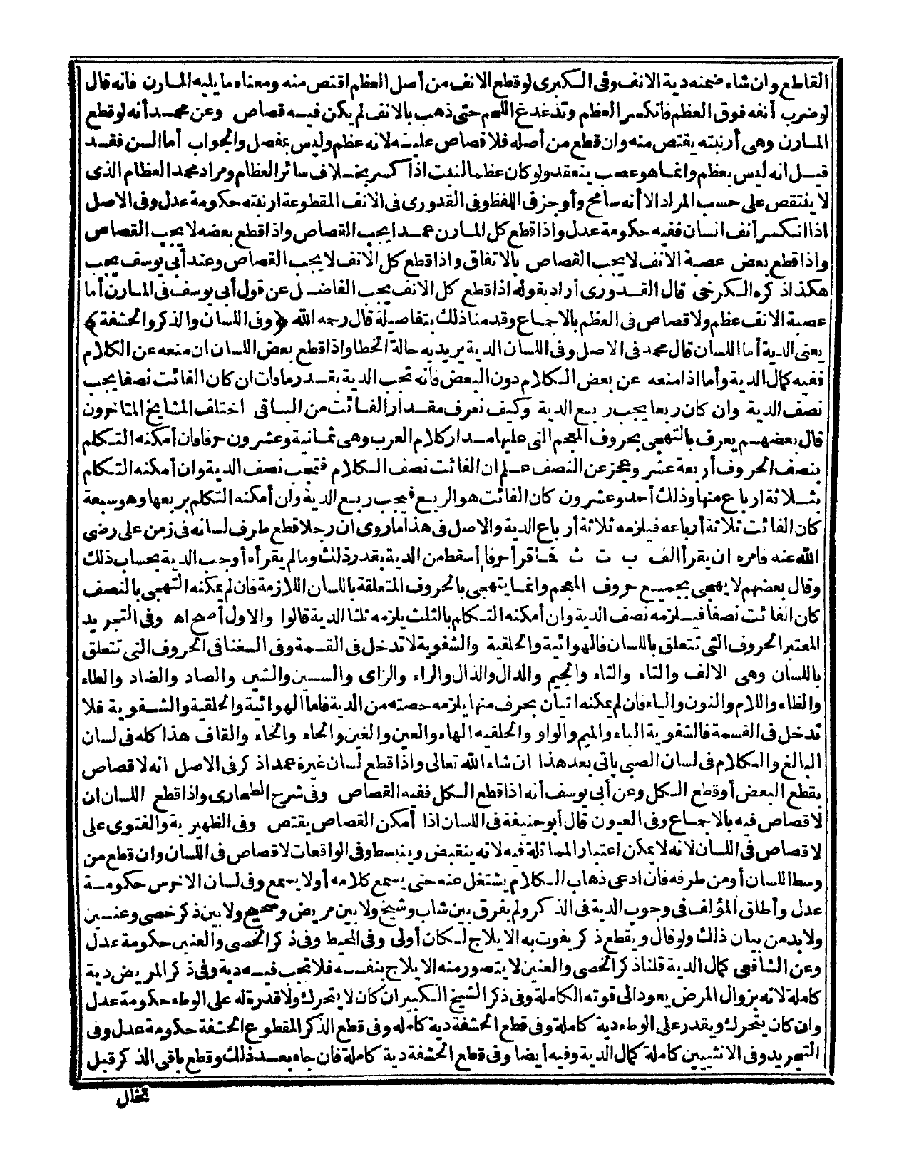 وَفِي التَّجْرِيدِ الْمُعْتَبَرُ الْحُرُوفُ الَّتِي تَتَعَلَّقُ بِاللِّسَانِ فَالْهَوَائِيَّةُ وَالْحَلْقِيَّةُ وَالشَّفَوِيَّةُ لَا تَدْخُلُ فِي الْقِسْمَةِ وَفِي السِّغْنَاقِيِّ الْحُرُوفُ الَّتِي تَتَعَلَّقُ بِاللِّسَانِ وَهِيَ الْأَلْفُ وَالتَّاءُ وَالثَّاءُ وَالْجِيمُ وَالدَّالُ وَالذَّالُ وَالرَّاءُ وَالزَّايُ وَالسِّينُ وَالشَّيْنُ وَالصَّادُ وَالضَّادُ وَالطَّاءُ وَالظَّاءُ وَاللَّامُ وَالنُّونُ وَالْيَاءُ، فَإِنْ لَمْ يُمْكِنْهُ إتْيَانٌ بِحَرْفٍ مِنْهَا يَلْزَمُهُ حِصَّتُهُ مِنْ الدِّيَةِ فَأَمَّا الْهَوَائِيَّةُ وَالْحَلْقِيَّةُ وَالشَّفَوِيَّةُ فَلَا تَدْخُلُ فِي الْقِسْمَةِ فَالشَّفَوِيَّةُ الْبَاءُ وَالْمِيمُ وَالْوَاوُ وَالْحَلْقِيَّةُ الْهَاءُ وَالْعَيْنُ وَالْغَيْنُ وَالْحَاءُ وَالْخَاءُ وَالْقَافُ هَذَا كُلُّهُ فِي لِسَانِ الْبَالِغِ وَالْكَلَامُ فِي لِسَانِ الصَّبِيِّ يَأْتِي بَعْدَ هَذَا إنْ شَاءَ اللَّهُ تَعَالَى، وَإِذَا قَطَعَ لِسَانَ غَيْرِهِ عَمْدًا ذَكَرَ فِي الْأَصْلِ أَنَّهُ لَا قِصَاصَ بِقَطْعِ الْبَعْضِ أَوْ قَطْعِ الْكُلِّ وَعَنْ أَبِي يُوسُفَ أَنَّهُ إذَا قَطَعَ الْكُلَّ فَفِيهِ الْقِصَاصُ وَفِي شَرْحِ الطَّحَاوِيِّ، وَإِذَا قُطِعَ اللِّسَانُ أَنْ لَا قِصَاصَ فِيهِ بِالْإِجْمَاعِ وَفِي الْعُيُونِ قَالَ أَبُو حَنِيفَةَ فِي اللِّسَانِ إذَا أُمْكِنَ الْقِصَاصُ يُقْتَصُّ وَفِي الظَّهِيرِيَّةِ وَالْفَتْوَى عَلَى لَا قِصَاصَ فِي اللِّسَانِ لِأَنَّهُ لَا يُمْكِنُ اعْتِبَارُ الْمُمَاثَلَةِ فِيهِ لِأَنَّهُ يَنْقَبِضُ وَيَنْبَسِطُ وَفِي الْوَاقِعَاتِ لَا قِصَاصَ فِي اللِّسَانِ، وَإِنْ قُطِعَ مِنْ وَسَطِ اللِّسَانِ أَوْ مِنْ طَرَفِهِ، فَإِنْ ادَّعَى ذَهَابَ الْكَلَامِ يَشْتَغِلُ عَنْهُ حَتَّى يَسْمَعَ كَلَامَهُ أَوْ لَا يَسْمَعَ وَفِي لِسَانِ الْأَخْرَسِ حُكُومَةُ عَدْلٍ وَأَطْلَقَ الْمُؤَلِّفُ فِي وُجُوبِ الدِّيَةِ فِي الذَّكَرِ وَلَمْ يُفَرِّقْ بَيْنَ شَابٍّ وَشَيْخٍ وَلَا بَيْنَ مَرِيضٍ وَصَحِيحٍ وَلَا بَيْنَ ذَكَرٍ خَصِيٍّ وَعِنِّينٍ وَلَا بُدَّ مِنْ بَيَانِ ذَلِكَ وَلَوْ قَالَ وَيُقْطَعُ ذَكَرٌ يَفُوتُ بِهِ الْإِيلَاجُ لَكَانَ أَوْلَى وَفِي الْمُحِيطِ وَفِي ذَكَرِ الْخَصِيِّ وَالْعِنِّينِ حُكُومَةُ عَدْلٍ وَعَنْ الشَّافِعِيِّ كَمَالُ الدِّيَةِ قُلْنَا ذَكَرُ الْخَصِيِّ وَالْعِنِّينِ لَا يُتَصَوَّرُ مِنْهُ الْإِيلَاجُ بِنَفْسِهِ فَلَا تَجِبُ فِيهِ دِيَةٌ.