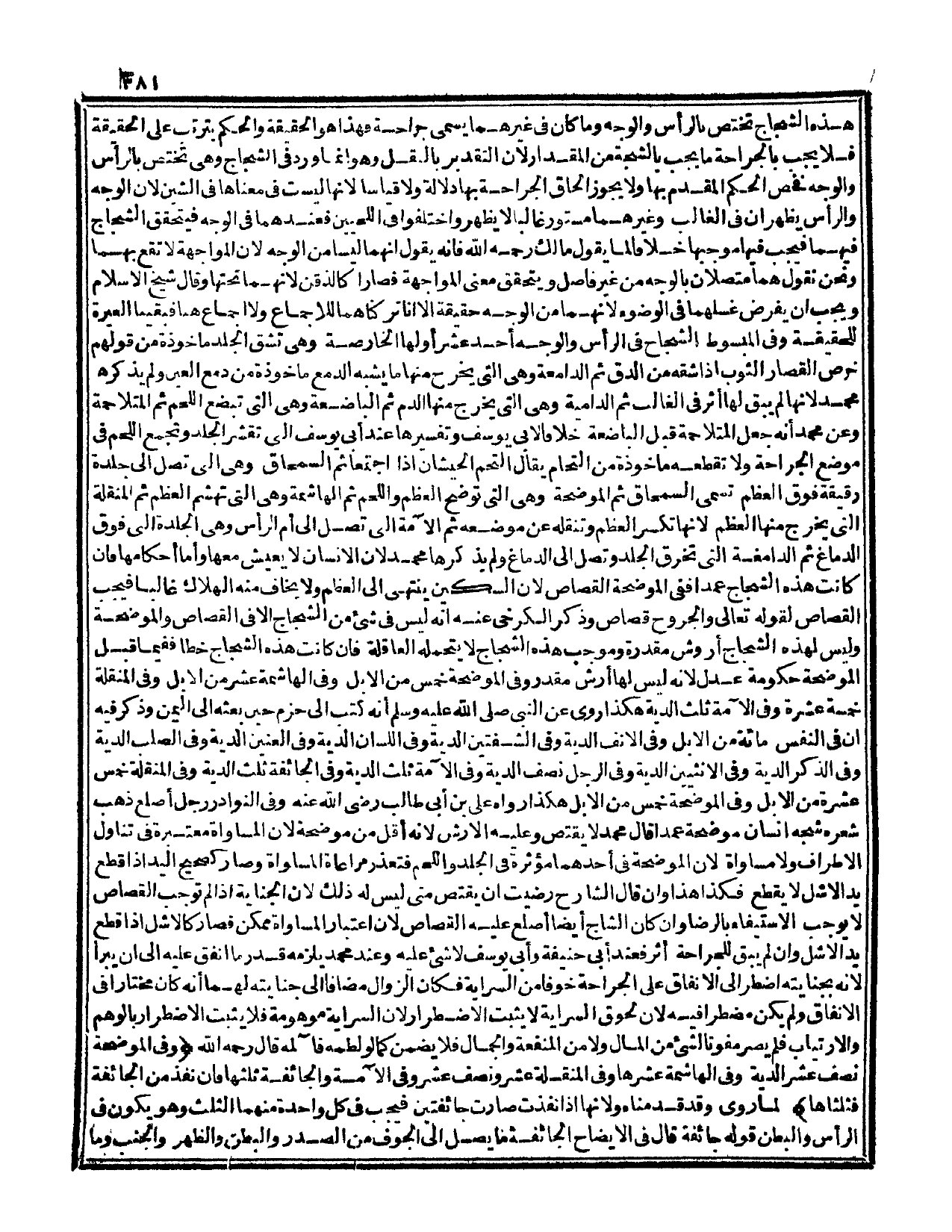 هَذِهِ الشِّجَاجُ تَخْتَصُّ بِالرَّأْسِ وَالْوَجْهِ وَمَا كَانَ فِي غَيْرِهِمَا يُسَمَّى جِرَاحَةً فَهَذَا هُوَ الْحَقِيقَةُ وَالْحُكْمُ يَتَرَتَّبُ عَلَى الْحَقِيقَةِ فَلَا يَجِبُ بِالْجِرَاحَةِ مَا يَجِبُ بِالشَّجَّةِ مِنْ الْمِقْدَارِ لِأَنَّ التَّقْدِيرَ بِالنَّقْلِ وَهُوَ إنَّمَا وَرَدَ فِي الشِّجَاجِ وَهِيَ تَخْتَصُّ بِالرَّأْسِ وَالْوَجْهِ فَخَصَّ الْحُكْمَ الْمُقَدَّمَ بِهَا وَلَا يَجُوزُ إلْحَاقُ الْجِرَاحَةِ بِهَا دَلَالَةً وَلَا قِيَاسًا لِأَنَّهَا لَيْسَتْ فِي مَعْنَاهَا فِي الشَّيْنِ لِأَنَّ الْوَجْهَ وَالرَّأْسَ يَظْهَرَانِ فِي الْغَالِبِ وَغَيْرُهُمَا مَسْتُورٌ غَالِبًا لَا يَظْهَرُ وَاخْتَلَفُوا فِي اللَّحْيَيْنِ فَعِنْدَهُمَا فِي الْوَجْهِ فَيَتَحَقَّقُ الشِّجَاجُ فِيهِمَا فَيَجِبُ فِيهَا مُوجِبُهَا خِلَافًا لِمَا يَقُولُ مَالِكٌ - رَحِمَهُ اللَّهُ -، فَإِنَّهُ يَقُولُ: إنَّهُمَا لَيْسَا مِنْ الْوَجْهِ لِأَنَّ الْمُوَاجَهَةَ لَا تَقَعُ بِهِمَا وَنَحْنُ نَقُولُ هُمَا مُتَّصِلَانِ بِالْوَجْهِ مِنْ غَيْرِ فَاصِلٍ وَيَتَحَقَّقُ مَعْنَى الْمُوَاجَهَةِ فَصَارَا كَالذَّقَنِ لِأَنَّهُمَا تَحْتَهَا وَقَالَ شَيْخُ الْإِسْلَامِ وَيَجِبُ أَنْ يُفْرَضَ غَسْلُهُمَا فِي الْوُضُوءِ لِأَنَّهُمَا مِنْ الْوَجْهِ حَقِيقَةً إلَّا أَنَّا تَرَكْنَاهُمَا لِلْإِجْمَاعِ وَلَا إجْمَاعَ هُنَا فَبَقَّيْنَا الْعِبْرَةَ لِلْحَقِيقَةِ وَفِي الْمَبْسُوطِ الشِّجَاجُ فِي الرَّأْسِ وَالْوَجْهِ أَحَدَ عَشَرَ أَوَّلُهَا الْخَارِصَةُ وَهِيَ تَشُقُّ الْجِلْدَ مَأْخُوذَةً مِنْ قَوْلِهِمْ خَرَصَ الْقَصَّارُ الثَّوْبَ إذَا شَقَّهُ مِنْ الدَّقِّ ثُمَّ الدَّامِعَةُ وَهِيَ الَّتِي يَخْرُجُ مِنْهَا مَا يُشْبِهُ الدَّمْعَ مَأْخُوذَةٌ مِنْ دَمْعِ الْعَيْنِ وَلَمْ يَذْكُرْهَا مُحَمَّدٌ لِأَنَّهَا لَمْ يَبْقَ لَهَا أَثَرٌ فِي الْغَالِبِ ثُمَّ الدَّامِيَةُ وَهِيَ الَّتِي يَخْرُجُ مِنْهَا الدَّمُ ثُمَّ الْبَاضِعَةُ وَهِيَ الَّتِي تُبْضِعُ اللَّحْمَ ثُمَّ الْمُتَلَاحِمَةُ. وَعَنْ مُحَمَّدٍ أَنَّهُ جَعَلَ الْمُتَلَاحِمَةَ قَبْلَ الْبَاضِعَةِ خِلَافًا لِأَبِي يُوسُفَ وَتَفْسِيرُهَا عِنْدَ أَبِي يُوسُفَ الَّتِي تُقَشِّرُ الْجِلْدَ وَتَجْمَعُ اللَّحْمَ فِي مَوْضِعِ الْجِرَاحَةِ وَلَا تَقْطَعُهُ مَأْخُوذَةٌ مِنْ الْتِحَامٍ يُقَالُ الْتَحَمَ الْجَيْشَانِ إذَا اجْتَمَعَا ثُمَّ السِّمْحَاقُ وَهِيَ الَّتِي تَصِلُ إلَى جِلْدَةٍ رَقِيقَةٍ فَوْقَ الْعَظْمِ تُسَمَّى السِّمْحَاقُ ثُمَّ الْمُوضِحَةُ وَهِيَ الَّتِي تُوضِحُ الْعَظْمَ وَاللَّحْمَ ثُمَّ الْهَاشِمَةُ وَهِيَ الَّتِي تَهْشِمُ الْعَظْمَ ثُمَّ الْمُنَقِّلَةُ الَّتِي يَخْرُجُ مِنْهَا الْعَظْمُ لِأَنَّهَا تَكْسِرُ الْعَظْمَ وَتَنْقُلُهُ عَنْ مَوْضِعِهِ ثُمَّ الْآمَّةُ الَّتِي تَصِلُ إلَى أُمِّ الرَّأْسِ وَهِيَ الْجِلْدَةُ الَّتِي فَوْقَ الدِّمَاغِ ثُمَّ الدَّامِغَةُ الَّتِي تَخْرِقُ الْجِلْدَ وَتَصِلُ إلَى الدِّمَاغِ وَلَمْ يَذْكُرْهَا مُحَمَّدٌ لِأَنَّ الْإِنْسَانَ لَا يَعِيشُ مَعَهَا، وَأَمَّا أَحْكَامُهَا، فَإِنْ كَانَتْ هَذِهِ الشِّجَاجُ عَمْدًا فَفِي الْمُوضِحَةِ الْقِصَاصُ لِأَنَّ السِّكِّينَ يَنْتَهِي إلَى الْعَظْمِ وَلَا يَخَافُ مِنْهُ الْهَلَاكَ غَالِبًا فَيَجِبُ الْقِصَاصُ لِقَوْلِهِ تَعَالَى {وَالْجُرُوحَ قِصَاصٌ} [المائدة: 45] وَذَكَرَ الْكَرْخِيُّ عَنْهُ أَنَّهُ لَيْسَ فِي شَيْءٍ مِنْ الشِّجَاجِ إلَّا فِي الْقِصَاصِ وَالْمُوضِحَةِ وَلَيْسَ لِهَذِهِ الشِّجَاجِ أُرُوشٌ مُقَدَّرَةٌ وَمُوجِبُ هَذِهِ الشِّجَاجِ لَا يَتَحَمَّلُهُ الْعَاقِلَةُ، فَإِنْ كَانَتْ هَذِهِ الشِّجَاجُ خَطَأً فَفِيمَا قَبْلَ الْمُوضِحَةِ ح