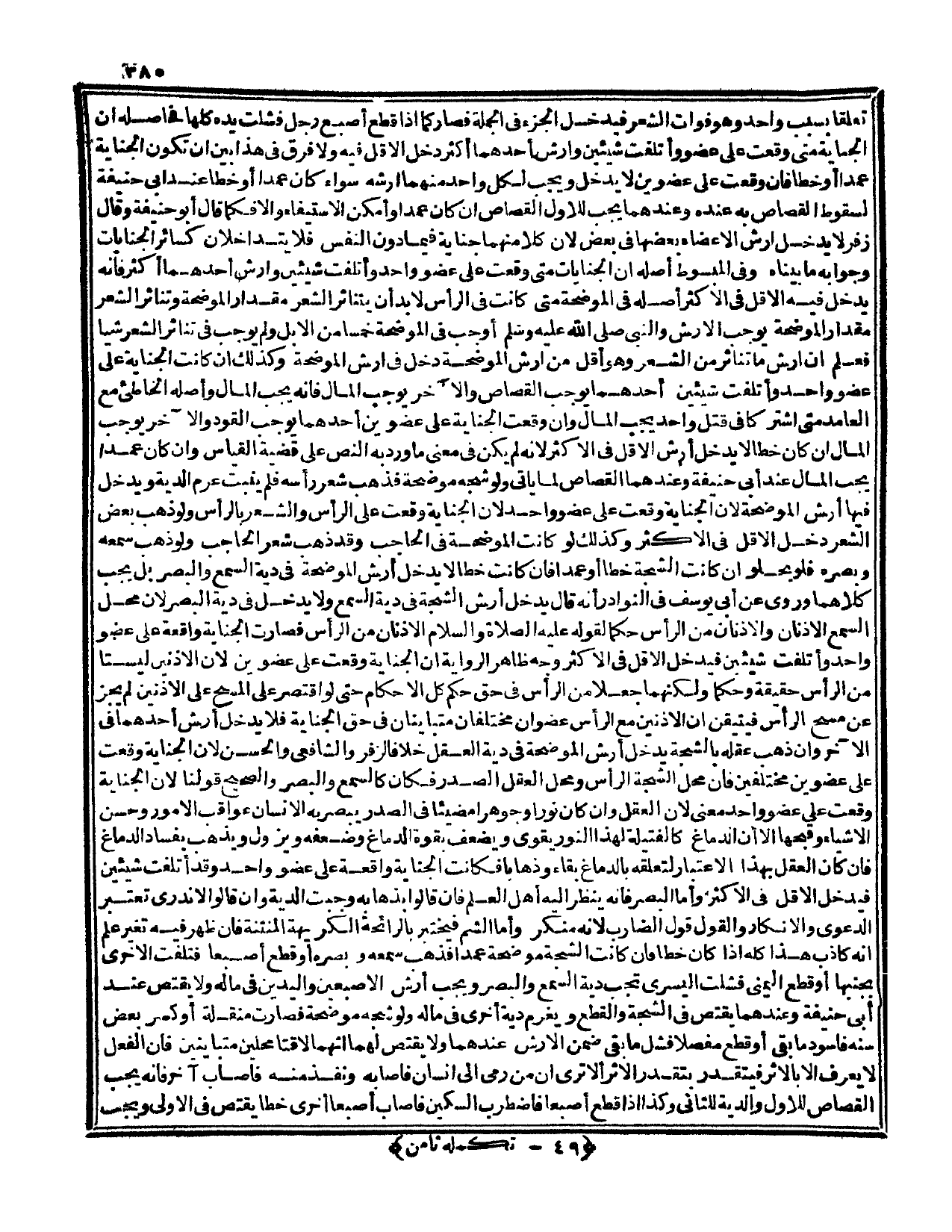 وَلَا فَرْقَ فِي هَذَا بَيْنَ أَنْ تَكُونَ الْجِنَايَةُ عَمْدًا أَوْ خَطَأً، فَإِنْ وَقَعَتْ عَلَى عُضْوَيْنِ لَا يَدْخُلُ وَيَجِبُ لِكُلِّ وَاحِدٍ مِنْهُمَا أَرْشُهُ سَوَاءٌ كَانَ عَمْدًا أَوْ خَطَأً عِنْدَ أَبِي حَنِيفَةَ لِسُقُوطِ الْقِصَاصِ بِهِ عِنْدَهُ وَعِنْدَهُمَا يَجِبُ لِلْأَوَّلِ الْقِصَاصُ إنْ كَانَ عَمْدًا وَأَمْكَنَ الِاسْتِيفَاءُ وَإِلَّا فَكَمَا قَالَ أَبُو حَنِيفَةَ وَقَالَ زُفَرُ لَا يَدْخُلُ أَرْشُ الْأَعْضَاءِ بَعْضُهُمَا فِي بَعْضٍ؛ لِأَنَّ كُلًّا مِنْهُمَا جِنَايَةٌ فِيمَا دُونَ النَّفْسِ فَلَا يَتَدَاخَلَانِ كَسَائِرِ الْجِنَايَاتِ وَجَوَابُهُ مَا بَيَّنَّاهُ وَفِي الْمَبْسُوطِ أَصْلُهُ أَنَّ الْجِنَايَاتِ مَتَى وَقَعَتْ عَلَى عُضْوٍ وَاحِدٍ وَأَتْلَفَتْ شَيْئَيْنِ وَأَرْشُ أَحَدِهِمَا أَكْثَرُ، فَإِنَّهُ يَدْخُلُ فِيهِ الْأَقَلُّ فِي الْأَكْثَرِ أَصْلُهُ فِي الْمُوضِحَةِ مَتَى كَانَتْ فِي الرَّأْسِ لَا بُدَّ أَنْ يَتَنَاثَرَ الشَّعْرُ مِقْدَارَ الْمُوضِحَةِ وَتَنَاثُرُ الشَّعْرِ مِقْدَارُ الْمُوضِحَةِ يُوجِبُ الْأَرْشَ، وَالنَّبِيُّ - صَلَّى اللَّهُ عَلَيْهِ وَسَلَّمَ - أَوْجَبَ فِي الْمُوضِحَةِ خَمْسًا مِنْ الْإِبِلِ وَلَمْ يُوجِبْ فِي تَنَاثُرِ الشَّعْرِ شَيْئًا فَعُلِمَ أَنَّ أَرْشَ مَا تَنَاثَرَ مِنْ الشَّعْرِ وَهُوَ أَقَلُّ مِنْ أَرْشِ الْمُوضِحَةِ دَخَلَ فِي أَرْشِ الْمُوضِحَةِ وَكَذَلِكَ إنْ كَانَتْ الْجِنَايَةُ عَلَى عُضْوٍ وَاحِدٍ وَأَتْلَفَتْ شَيْئَيْنِ أَحَدُهُمَا يُوجِبُ الْقِصَاصَ وَالْآخَرُ يُوجِبُ الْمَالَ، فَإِنَّهُ يَجِبُ الْمَالُ وَأَصْلُهُ الْخَاطِئُ مَعَ الْعَامِدِ مَتَى اشْتَرَكَا فِي قَتْلٍ وَاحِدٍ يَجِبُ الْمَالُ، وَإِنْ وَقَعَتْ الْجِنَايَةُ عَلَى عُضْوَيْنِ أَحَدُهُمَا يُوجِبُ الْقَوَدَ وَالْآخَرُ يُوجِبُ الْمَالَ إنْ كَانَ خَطَأً لَا يَدْخُلُ أَرْشُ الْأَقَلِّ فِي الْأَكْثَرِ؛ لِأَنَّهُ لَمْ يَكُنْ فِي مَعْنَى مَا وَرَدَ بِهِ النَّصُّ عَلَى قَضِيَّةِ الْقِيَاسِ، وَإِنْ كَانَ عَمْدًا يَجِبُ الْمَالُ عِنْدَ أَبِي حَنِيفَةَ وَعِنْدَهُمَا الْقِصَاصُ لِمَا يَأْتِي وَلَوْ شَجَّهُ مُوضِحَةً فَذَهَبَ شَعْرُ رَأْسِهِ فَلَمْ يَنْبُتْ غَرِمَ الدِّيَةَ وَيَدْخُلُ فِيهَا أَرْشُ الْمُوضِحَةِ؛ لِأَنَّ الْجِنَايَةَ وَقَعَتْ عَلَى عُضْوٍ وَاحِدٍ؛ لِأَنَّ الْجِنَايَةَ وَقَعَتْ عَلَى الرَّأْسِ وَالشَّعْرُ بِالرَّأْسِ.