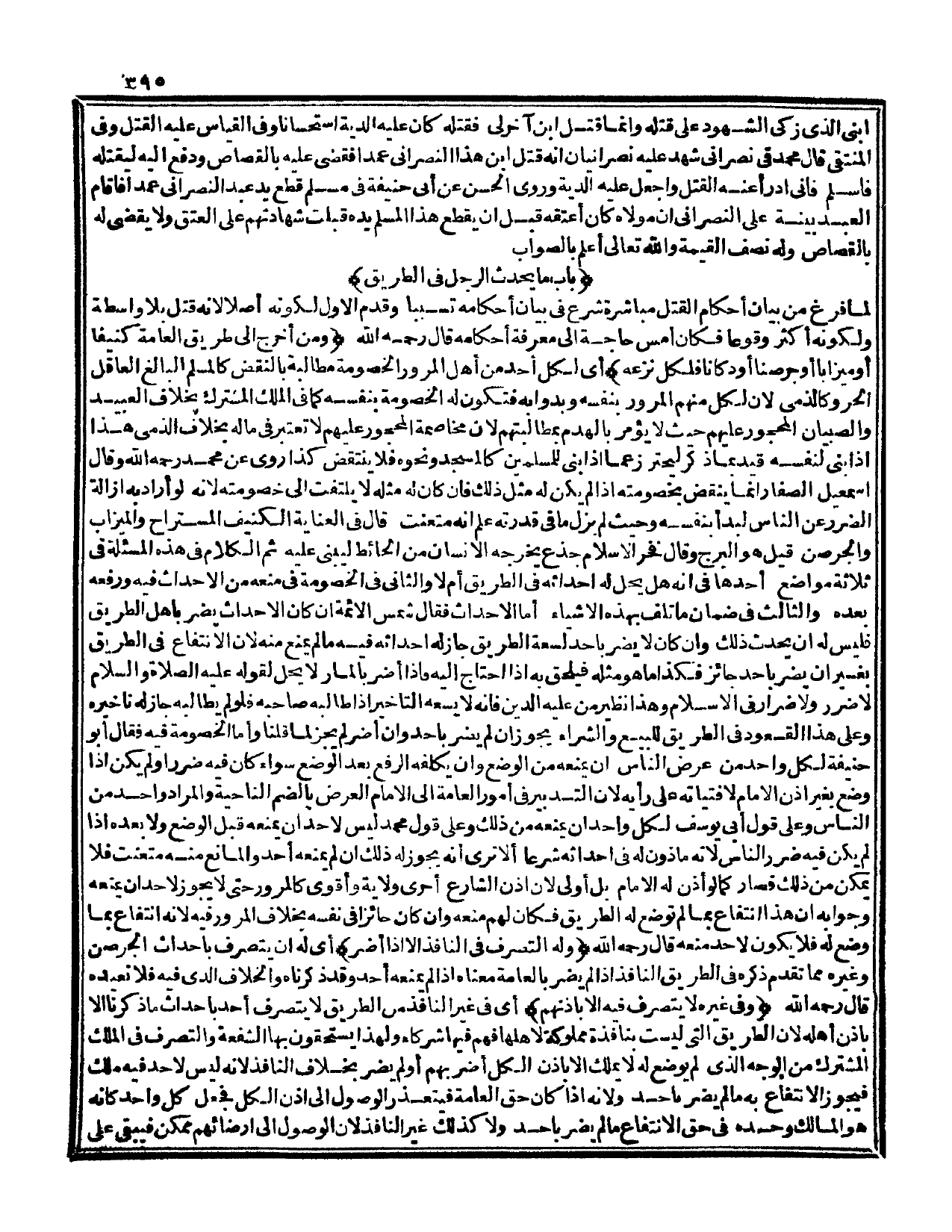 (بَابُ مَا يُحْدِثُ الرَّجُلُ فِي الطَّرِيقِ) لَمَّا فَرَغَ مِنْ بَيَانِ أَحْكَامِ الْقَتْلِ مُبَاشَرَةً شَرَعَ فِي بَيَانِ أَحْكَامِهِ تَسَبُّبًا وَقَدَّمَ الْأَوَّلَ لِكَوْنِهِ أَصْلًا؛ لِأَنَّهُ قَتْلٌ بِلَا وَاسِطَةٍ وَلِكَوْنِهِ أَكْثَرَ وُقُوعًا فَكَانَ أَمَسَّ حَاجَةً إلَى مَعْرِفَةِ أَحْكَامِهِ قَالَ - رَحِمَهُ اللَّهُ - (وَمَنْ أَخْرَجَ إلَى طَرِيقِ الْعَامَّةِ كَنِيفًا أَوْ مِيزَابًا أَوْ جُرْصُنًا أَوْ دُكَّانًا فَلِكُلٍّ نَزْعُهُ) أَيْ لِكُلِّ أَحَدٍ مِنْ أَهْلِ الْمُرُورِ الْخُصُومَةُ مُطَالَبَةً بِالنَّقْضِ كَالْمُسْلِمِ الْبَالِغِ الْعَاقِلِ الْحُرِّ وَكَالذِّمِّيِّ؛ لِأَنَّ لِكُلٍّ مِنْهُمْ الْمُرُورَ بِنَفْسِهِ وَبِدَوَابِّهِ فَتَكُونُ لَهُ الْخُصُومَةُ بِنَفْسِهِ كَمَا فِي الْمِلْكِ الْمُشْتَرَكِ بِخِلَافِ الْعَبِيدِ وَالصِّبْيَانِ الْمَحْجُورِ عَلَيْهِمْ حَيْثُ لَا يُؤْمَرُ بِالْهَدْمِ بِمُطَالَبَتِهِمْ؛ لِأَنَّ مُخَاصَمَةَ الْمَحْجُورِ عَلَيْهِمْ لَا تُعْتَبَرُ فِي مَالِهِ بِخِلَافِ الذِّمِّيِّ هَذَا إذَا بَنَى لِنَفْسِهِ قُيِّدَ بِمَا ذُكِرَ لِيَحْتَرِزَ عَمَّا إذَا بَنَى لِلْمُسْلِمِينَ كَالْمَسْجِدِ وَنَحْوِهِ فَلَا يُنْتَقَضُ كَذَا رُوِيَ عَنْ مُحَمَّدٍ - رَحِمَهُ اللَّهُ -.