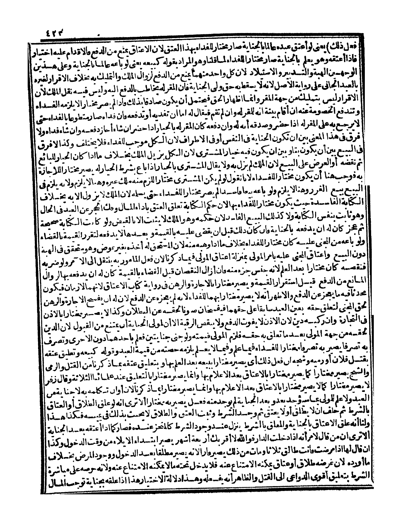 فَعَلَ ذَلِكَ) يَعْنِي لَوْ أَعْتَقَ عَبْدَهُ عَالِمًا بِالْجِنَايَةِ صَارَ مُخْتَارًا لِلْفِدَاءِ بِهَذَا الْعِتْقِ لِأَنَّ الْإِعْتَاقَ يَمْنَعُ مِنْ الدَّفْعِ فَالْإِقْدَامُ عَلَيْهِ اخْتِيَارٌ فَإِذَا أَعْتَقَهُ وَهُوَ يَعْلَمُ بِالْجِنَايَةِ صَارَ مُخْتَارًا لِلْفِدَاءِ لِمَا قُلْنَا وَهُوَ الْمُرَادُ بِقَوْلِهِ كَبَيْعِهِ يَعْنِي لَوْ بَاعَهُ عَالِمًا بِالْجِنَايَةِ وَعَلَى هَذَيْنِ الْوَجْهَيْنِ الْهِبَةُ وَالتَّدْبِيرُ وَالِاسْتِيلَادُ لِأَنَّ كُلَّ وَاحِدٍ مِنْهُمَا يَمْنَعُ مِنْ الدَّفْعِ لِزَوَالِ الْمِلْكِ وَالتَّمْلِيكِ بِهِ بِخِلَافِ الْإِقْرَارِ لِغَيْرِهِ بِالْعَبْدِ الْجَانِي عَلَى رِوَايَةِ الْأَصْلِ لِأَنَّهُ لَا يَسْقُطُ بِهِ حَقُّ وَلِيِّ الْجِنَايَةِ فَإِنَّ الْمُقَرَّ لَهُ يُخَاطَبُ بِالدَّفْعِ إلَيْهِ.