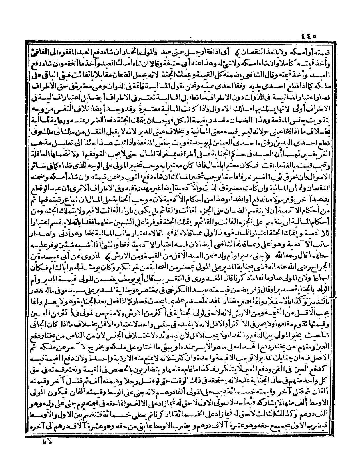 فَصَارَ اعْتِبَارُ الْمَالِيَّةِ فِي الذَّوَاتِ دُونَ الْأَطْرَافِ سَاقِطًا بَلْ الْمَالِيَّةُ تُعْتَبَرُ فِي الْأَطْرَافِ أَيْضًا بَلْ اعْتِبَارُ الْمَالِيَّةِ فِي الْأَطْرَافِ أَوْلَى لِأَنَّهَا يُسْلَكُ بِهَا مَسَالِكَ الْأَمْوَالِ فَإِذَا كَانَتْ الْمَالِيَّةُ مُعْتَبَرَةً وَقَدْ وُجِدَ أَيْضًا إتْلَافُ النَّفْسِ مِنْ وَجْهٍ بِتَفْوِيتِ جِنْسِ الْمَنْفَعَةِ وَهَذَا الضَّمَانُ مُقَدَّرٌ بِقِيمَةِ الْكُلِّ فَوَجَبَ أَنْ يَتَمَلَّكَ الْجُثَّةَ دَفْعًا لِلضَّرَرِ عَنْهُ وَرِعَايَةً لِلْمَالِيَّةِ بِخِلَافِ مَا إذَا فَقَأَ عَيْنَيْ حُرٍّ لِأَنَّهُ لَيْسَ فِيهِ مَعْنَى الْمَالِيَّةِ وَبِخِلَافِ عَيْنَيْ الْمُدَبَّرِ لِأَنَّهُ لَا يَقْبَلُ النَّقْلَ مِنْ مِلْكٍ إلَى مِلْكٍ وَفِي قَطْعِ إحْدَى الْيَدَيْنِ وَفَقْءِ إحْدَى الْعَيْنَيْنِ لَمْ يُوجَدْ تَفْوِيتُ جِنْسِ الْمَنْفَعَةِ فَإِذَا ثَبَتَ هَذَا جِئْنَا إلَى تَعْلِيلِ مَذْهَبِ الْفَرِيقَيْنِ. لَهُمَا أَنَّ الْعَبْدَ فِي حُكْمِ الْجِنَايَةِ عَلَى أَطْرَافِهِ بِمَنْزِلَةِ الْمَالِ حَتَّى لَا يَجِبَ الْقَوَدُ فِيهَا وَلَا تَتَحَمَّلُهَا الْعَاقِلَةُ وَتَجِبُ قِيمَتُهُ بَالِغَةً مَا بَلَغَتْ فَكَانَ مُعْتَبَرًا بِالْمَالِ فَإِذَا كَانَ مُعْتَبَرًا بِهِ وَجَبَ تَخْيِيرُ الْمَوْلَى عَلَى الْوَجْهِ الَّذِي قُلْنَاهُ كَمَا فِي سَائِرِ الْأَمْوَالِ فَإِنَّ خَرْقَ ثَوْبِ الْغَيْرِ خَرْقًا فَاحِشًا يُوجِبُ تَخْيِيرَ الْمَالِكِ إنْ شَاءَ دَفَعَ الثَّوْبَ وَضَمِنَ قِيمَتَهُ وَإِنْ شَاءَ أَمْسَكَهُ وَضَمَّنَهُ النُّقْصَانَ وَلَهُ أَنَّ الْمَالِيَّةَ وَإِنْ كَانَتْ مُعْتَبَرَةً فِي الذَّاتِ وَالْآدَمِيَّةِ أَيْضًا غَيْرَ مُهْدَرَةٍ فِيهِ وَفِي الْأَطْرَافِ أَلَا تَرَى أَنَّ عَبْدًا لَوْ قَطَعَ يَدَ عَبْدٍ آخَرَ يُؤْمَرُ مَوْلَاهُ بِالدَّفْعِ أَوْ الْفِدَاءِ وَهَذَا مِنْ أَحْكَامِ الْآدَمِيَّةِ لِأَنَّ مُوجِبَ الْجِنَايَةِ عَلَى الْمَالِ إنْ تَابَعَ رَقَبَتَهُ فِيهَا ثُمَّ مِنْ أَحْكَامِ الْآدَمِيَّةِ أَنْ لَا يَنْقَسِمَ الضَّمَانُ عَلَى الْجُزْءِ الْفَائِتِ وَالْقَائِمِ بَلْ يَكُونُ بِإِزَاءِ الْفَائِتِ لَا غَيْرُ وَلَا يَتَمَلَّكُ الْجُثَّةَ وَمِنْ أَحْكَامِ الْمَالِيَّةِ أَنْ يَنْقَسِمَ عَلَى الْجُزْءِ الْفَائِتِ وَالْقَائِمِ وَيَتَمَلَّكُ الْجُثَّةَ فَوَفَّرْنَا عَلَى الشَّبَهَيْنِ حَظَّهُمَا فَقُلْنَا بِأَنَّهُ لَا يَنْقَسِمُ اعْتِبَارًا لِلْآدَمِيَّةِ وَيَتَمَلَّكُ الْجُثَّةَ اعْتِبَارًا لِلْمَالِيَّةِ.
