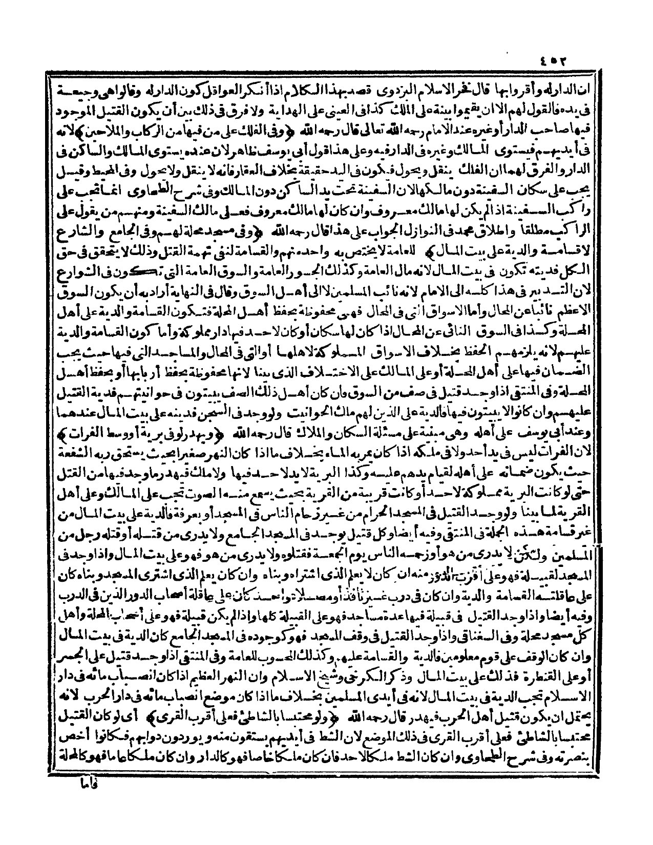 وَكَذَا الْبَرِّيَّةُ لَا يَدَ لِأَحَدٍ فِيهَا وَلَا مِلْكَ فَيُهْدَرُ مَا وُجِدَ فِيهَا مِنْ الْقَتْلِ حَتَّى لَوْ كَانَتْ الْبَرِّيَّةُ مَمْلُوكَةً لِأَحَدٍ أَوْ كَانَتْ قَرِيبَةً مِنْ الْقَرْيَةِ بِحَيْثُ يُسْمَعُ مِنْهُ الصَّوْتُ تَجِبُ عَلَى الْمَالِكِ وَعَلَى أَهْلِ الْقَرْيَةِ لِمَا بَيَّنَّا وَلَوْ وُجِدَ الْقَتِيلُ فِي الْمَسْجِدِ الْحَرَامِ مِنْ غَيْرِ زِحَامِ النَّاسِ فِي الْمَسْجِدِ أَوْ بِعَرَفَةَ فَالدِّيَةُ عَلَى بَيْتِ الْمَالِ مِنْ غَيْرِ قَسَامَةٍ هَذِهِ الْجُمْلَةُ فِي الْمُنْتَقَى وَفِيهِ أَيْضًا وَكُلُّ قَتِيلٍ يُوجَدُ فِي الْمَسْجِدِ الْجَامِعِ وَلَا يُدْرَى مَنْ قَتَلَهُ أَوْ قَتَلَهُ رَجُلٌ مِنْ الْمُسْلِمِينَ وَلَكِنْ لَا يَدْرِي مَنْ هُوَ أَوْ زَحَمَهُ النَّاسُ يَوْمَ الْجُمُعَةِ فَقَتَلُوهُ وَلَا يُدْرَى مَنْ هُوَ فَهُوَ عَلَى بَيْتِ الْمَالِ وَإِذَا وُجِدَ فِي الْمَسْجِدِ لِقَبِيلَةٍ فَهُوَ عَلَى أَقْرَبِ الدُّورِ مِنْهُ إنْ كَانَ لَا يَعْلَمُ الَّذِي اشْتَرَاهُ وَبَنَاهُ وَإِنْ كَانَ يَعْلَمُ الَّذِي اشْتَرَى الْمَسْجِدَ وَبَنَاهُ كَانَ عَلَى عَاقِلَتِهِ الْقَسَامَةُ وَالدِّيَةُ وَإِنْ كَانَ فِي دَرْبٍ غَيْرِ نَافِذٍ أَوْ مُصَلَّاهُ وَاحِدٌ كَانَ عَلَى عَاقِلَةِ أَصْحَابِ الدُّورِ الَّذِينَ فِي الدَّرْبِ وَفِيهِ أَيْضًا وَإِذَا وُجِدَ الْقَتِيلُ فِي قَبِيلَةٍ فِيهَا عِدَّةُ مَسَاجِدَ فَهُوَ عَلَى الْقَبِيلَةِ كُلِّهَا وَإِذَا لَمْ يَكُنْ قَبِيلَةٌ فَهُوَ عَلَى أَصْحَابِ الْمَحَلَّةِ وَأَهْلُ كُلِّ مَسْجِدٍ مَحَلَّةٌ وَفِي السِّغْنَاقِيِّ وَإِذَا وُجِدَ الْقَتِيلُ فِي وَقْفِ الْمَسْجِدِ فَهُوَ كَوُجُودِهِ فِي الْمَسْجِدِ الْجَامِعِ كَانَتْ الدِّيَةُ فِي بَيْتِ الْمَالِ وَإِنْ كَانَ الْوَقْفُ عَلَى قَوْمٍ مَعْلُومِينَ فَالدِّيَةُ وَالْقَسَامَةُ عَلَيْهِمْ وَكَذَلِكَ الْمَحْسُوبُ لِلْعَامَّةِ وَفِي الْمُنْتَقَى إذَا وُجِدَ قَتِيلٌ عَلَى الْجِسْرِ أَوْ عَلَى الْقَنْطَرَةِ فَذَلِكَ عَلَى بَيْتِ الْمَالِ وَذَكَرَ الْكَرْخِيُّ وَشَيْخُ الْإِسْلَامِ وَإِنَّ النَّهْرَ الْعَظِيمَ إذَا كَانَ انْصِبَابُ مَائِهِ فِي دَارِ الْإِسْلَامِ تَجِبُ الدِّيَةُ فِي بَيْتِ الْمَالِ لِأَنَّهُ فِي أَيْدِي الْمُسْلِمِينَ بِخِلَافِ مَا إذَا كَانَ مَوْضِعُ انْصِبَابِ مَائِهِ فِي دَارِ الْحَرْبِ لِأَنَّهُ يَحْتَمِلُ أَنْ يَكُونَ قَتِيلَ أَهْلِ الْحَرْبِ فَيُهْدَرَ.
