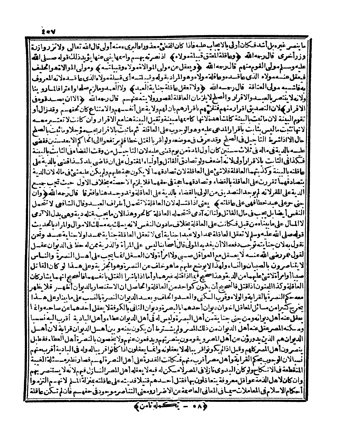 وَالْحَاصِلُ أَنَّ الِاسْتِنْصَارَ بِالدِّيوَانِ أَظْهَرُ فَلَا يَظْهَرُ مَعَهُ حُكْمُ النُّصْرَةِ بِالْقَرَابَةِ وَالْوَلَاءِ وَقُرْبِ السُّكْنَى، وَالْعَدِّ وَالْحَلِفِ، وَبَعْدَ دِيوَانِ النُّصْرَةِ بِالنَّسَبِ عَلَى مَا بَيَّنَّا، وَعَلَى هَذَا يُخَرِّجُ كَثِيرًا مِنْ مَسَائِلِ الْمَعَاقِلِ أَخَوَانِ دِيوَانٍ أَحَدُهُمَا بِالْبَصْرَةِ، وَدِيوَانُ الثَّانِي بِالْكُوفَةِ لَا يَعْقِلُ أَحَدُهُمَا عَنْ صَاحِبِهِ، وَإِنَّمَا يَعْقِلُ عَنْهُ أَهْلُ دِيوَانِهِ، وَمَنْ جَنَى جِنَايَةً مِنْ أَهْلِ الْبَصْرَةِ، وَلَيْسَ لَهُ فِي أَهْلِ الدِّيوَانِ عَطَاءٌ، وَأَهْلُ الْبَادِيَةِ أَقْرَبُ إلَيْهِ نَسَبًا، وَمَسْكَنُهُ الْمِصْرُ عَقَلَ عَنْهُ أَهْلُ الدِّيوَانِ مِنْ ذَلِكَ الْمِصْرِ، وَلَمْ يَشْتَرِطْ أَنْ يَكُونَ بَيْنَهُ وَبَيْنَ أَهْلِ الدِّيوَانِ قَرَابَةٌ لِأَنَّ أَهْلَ الدِّيوَانِ هُمْ الَّذِينَ يَدْرَءُونَ عَنْ أَهْلِ الْمِصْرِ، وَيَقُومُونَ بِنُصْرَتِهِمْ، وَيَدْفَعُونَ عَنْهُمْ.