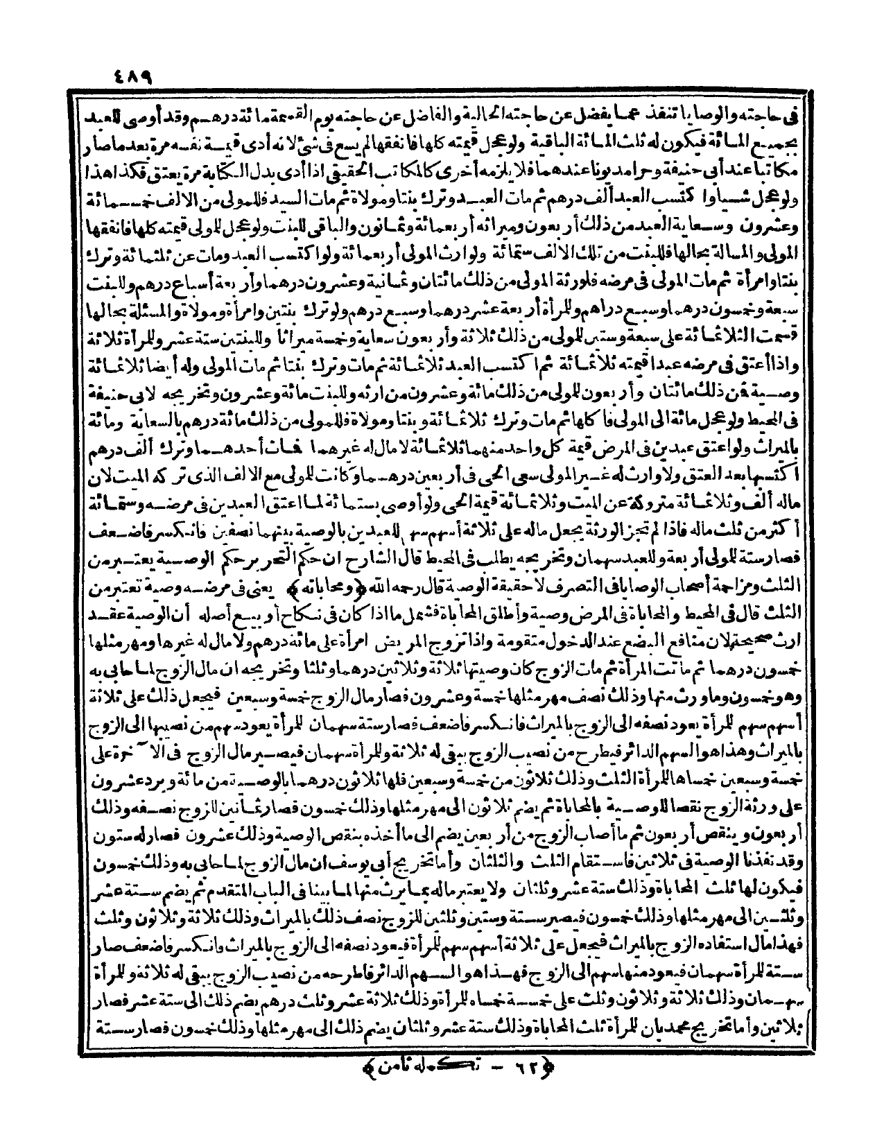 وَالْوَصَايَا تَنْفُذُ عَمَّا يَفْضُلُ عَنْ حَاجَتِهِ الْحَالِيَّةِ، وَالْفَاضِلُ عَنْ حَاجَتِهِ يَوْمَ الْقِسْمَةِ مِائَةُ دِرْهَمٍ، وَقَدْ أَوْصَى لِلْعَبْدِ بِجَمِيعِ الْمِائَةِ فَيَكُونُ لَهُ ثُلُثُ الْمِائَةِ الْبَاقِيَةِ، وَلَوْ عَجَّلَ قِيمَتَهُ كُلَّهَا فَأَنْفَقَهَا لَمْ يَسْعَ فِي شَيْءٍ لِأَنَّهُ أَدَّى قِيمَةَ نَفْسِهِ مَرَّةً بَعْدَمَا صَارَ مُكَاتَبًا عِنْدَ أَبِي حَنِيفَةَ، وَحُرًّا مَدْيُونًا عِنْدَهُمَا فَلَا يَلْزَمُهُ أُخْرَى كَالْمُكَاتَبِ الْحَقِيقِيِّ إذَا أَدَّى بَدَلَ الْكِتَابَةِ مَرَّةً يَعْتِقُ فَكَذَا هَذَا، وَلَوْ عَجَّلَ شَيْئًا، وَاكْتَسَبَ الْعَبْدُ أَلْفَ دِرْهَمٍ ثُمَّ مَاتَ الْعَبْدُ، وَتَرَكَ بِنْتًا وَمَوْلَاةً ثُمَّ مَاتَ السَّيِّدُ فَلِلْمَوْلَى مِنْ الْأَلْفِ خَمْسُمِائَةٍ وَعِشْرُونَ، وَسِعَايَةُ الْعَبْدِ مِنْ ذَلِكَ أَرْبَعُونَ، وَمِيرَاثُهُ أَرْبَعُمِائَةٍ وَثَمَانُونَ، وَالْبَاقِي لِلْبِنْتِ، وَلَوْ عَجَّلَ لِلْمَوْلَى قِيمَتَهُ كُلَّهَا فَأَنْفَقَهَا الْمَوْلَى، وَالْمَسْأَلَةُ بِحَالِهَا فَلِلْبِنْتِ مِنْ تِلْكَ الْأَلْفِ سِتُّمِائَةٍ، وَلِوَارِثِ الْمَوْلَى أَرْبَعُمِائَةٍ، وَلَوْ اكْتَسَبَ الْعَبْدُ وَمَاتَ عَنْ ثَلَاثِمِائَةٍ، وَتَرَكَ بِنْتًا وَامْرَأَةً ثُمَّ مَاتَ الْمَوْلَى فِي مَرَضِهِ فَلِوَرَثَةِ الْمَوْلَى مِنْ ذَلِكَ مِائَتَانِ وَثَمَانِيَةٌ وَعِشْرُونَ دِرْهَمًا، وَأَرْبَعَةُ أَسْبَاعِ دِرْهَمٍ، وَلِلْبِنْتِ سَبْعَةٌ وَخَمْسُونَ دِرْهَمًا وَسَبْعُ دَرَاهِمَ، وَلِلْمَرْأَةِ أَرْبَعَةَ عَشَرَ دِرْهَمًا وَسَبْعُ دَرَاهِمَ، وَلَوْ تَرَكَ بِنْتَيْنِ وَامْرَأَةً وَمَوْلَاةً، وَالْمَسْأَلَةُ بِحَالِهَا قُسِمَتْ الثَّلَاثُمِائَةِ عَلَى سَبْعَةٍ وَسِتِّينَ لِلْمَوْلَى مِنْ ذَلِكَ ثَلَاثَةٌ وَأَرْبَعُونَ سِعَايَةً وَخَمْسَةٌ مِيرَاثًا، وَلِلْبِنْتَيْنِ سِتَّةَ عَشَرَ، وَلِلْمَرْأَةِ ثَلَاثَةٌ، وَإِذَا أَعْتَقَ فِي مَرَضِهِ عَبْدًا قِيمَتُهُ ثَلَاثُمِائَةٍ ثُمَّ اكْتَسَبَ الْعَبْدُ ثَلَاثَمِائَةٍ ثُمَّ مَاتَ، وَتَرَكَ بِنْتًا ثُمَّ مَاتَ الْمَوْلَى وَلَهُ أَيْضًا ثَلَاثُمِائَةٍ وَصِيَّةً