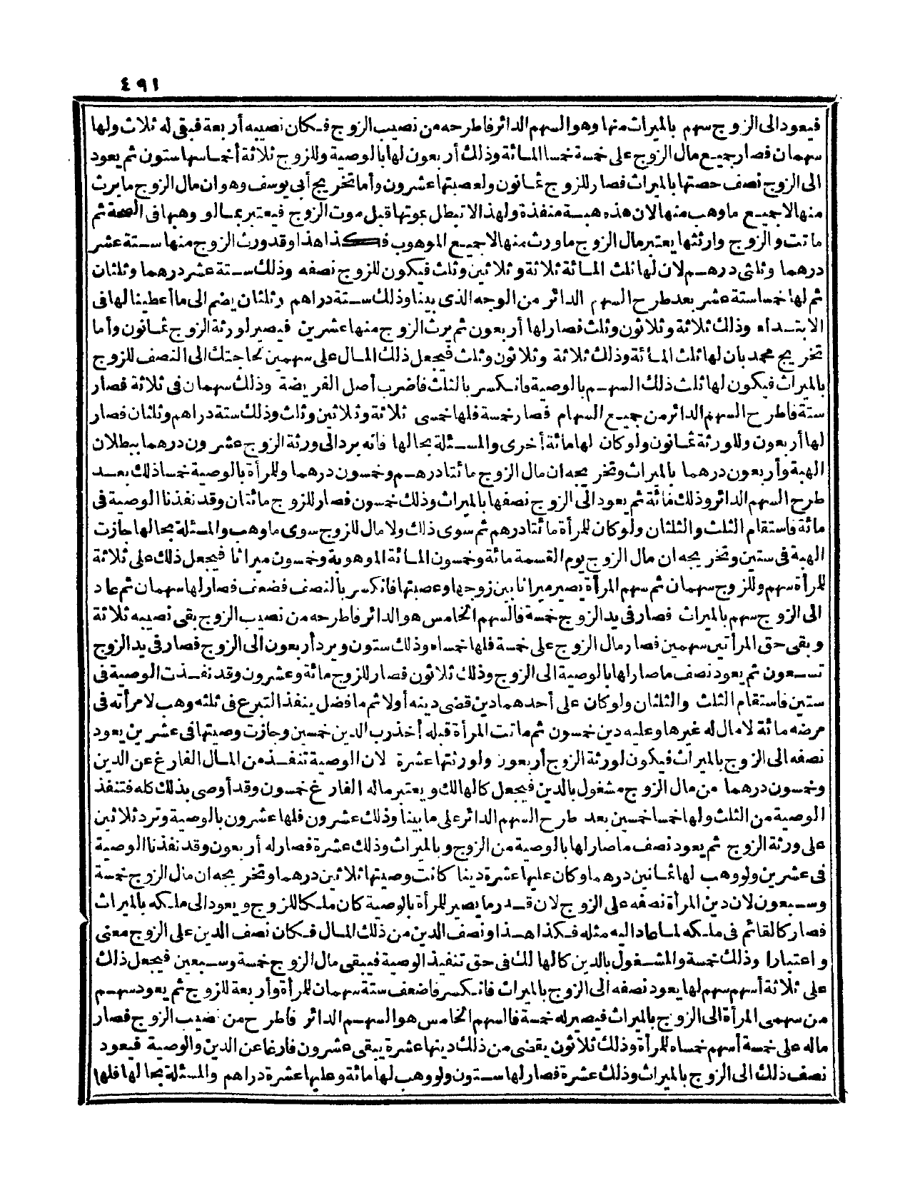 وَذَلِكَ ثَلَاثَةٌ وَثَلَاثُونَ وَثُلُثٌ فَصَارَ لَهَا أَرْبَعُونَ ثُمَّ يَرِثُ الزَّوْجُ مِنْهَا عِشْرِينَ فَيَصِيرُ لِوَرَثَةِ الزَّوْجِ ثَمَانُونَ، وَأَمَّا تَخْرِيجُ مُحَمَّدٍ بِأَنَّ لَهَا ثُلُثَ الْمِائَةِ، وَذَلِكَ ثَلَاثَةٌ وَثَلَاثُونَ وَثُلُثٌ فَيُجْعَلُ ذَلِكَ الْمَالُ عَلَى سَهْمَيْنِ لِحَاجَتِك إلَى النِّصْفِ لِلزَّوْجِ بِالْمِيرَاثِ فَيَكُونُ لَهَا ثُلُثُ ذَلِكَ السَّهْمِ بِالْوَصِيَّةِ فَانْكَسَرَ بِالثُّلُثِ فَاضْرِبْ أَصْلَ الْفَرِيضَةِ، وَذَلِكَ سَهْمَانِ فِي ثَلَاثَةٍ فَصَارَ سِتَّةً فَاطْرَحْ السَّهْمَ الدَّائِرَ مِنْ جَمِيعِ السِّهَامِ فَصَارَ خَمْسَةً فَلَهَا خُمُسَيْ ثَلَاثَةٍ وَثَلَاثِينَ وَثُلُثٍ، وَذَلِكَ سِتَّةُ دَرَاهِمَ وَثُلُثَانِ فَصَارَ لَهَا أَرْبَعُونَ، وَلِلْوَرَثَةِ ثَمَانُونَ، وَلَوْ كَانَ لَهَا مِائَةٌ أُخْرَى، وَالْمَسْأَلَةُ بِحَالِهَا فَإِنَّهُ يُرَدُّ إلَى وَرَثَةِ الزَّوْجِ عِشْرُونَ دِرْهَمًا بِبُطْلَانِ الْهِبَةِ، وَأَرْبَعُونَ دِرْهَمًا بِالْمِيرَاثِ، وَتَخْرِيجُهُ أَنَّ مَالَ الزَّوْجِ مِائَتَا دِرْهَمٍ وَخَمْسُونَ دِرْهَمًا، وَلِلْمَرْأَةِ بِالْوَصِيَّةِ خُمُسَا ذَلِكَ بَعْدَ طَرْحِ السَّهْمِ الدَّائِرِ، وَذَلِكَ مِائَةٌ ثُمَّ يَعُودُ إلَى الزَّوْجِ نِصْفُهَا بِالْمِيرَاثِ، وَذَلِكَ خَمْسُونَ فَصَارَ لِلزَّوْجِ مِائَتَانِ، وَقَدْ نَفَّذْنَا الْوَصِيَّةَ فِي مِائَةٍ فَاسْتَقَامَ الثُّلُثُ وَالثُّلُثَانِ، وَلَوْ كَانَ لِلْمَرْأَةِ مِائَتَا دِرْهَمٍ ثُمَّ سِوَى ذَلِكَ وَلَا مَالَ لِلزَّوْجِ سِوَى مَا وَهَبَ، وَالْمَسْأَلَةُ بِحَالِهَا جَازَتْ الْهِبَةُ فِي سِتِّينَ، وَتَخْرِيجُهُ أَنَّ مَالَ الزَّوْجِ يَوْمَ الْقِسْمَةِ مِائَةٌ وَخَمْسُونَ الْمِائَةُ الْمَوْهُوبَةُ وَخَمْسُونَ مِيرَاثًا فَيُجْعَلُ ذَلِكَ عَلَى ثَلَاثَةٍ لِلْمَرْأَةِ سَهْمٌ وَلِلزَّوْجِ سَهْمَانِ ثُمَّ سَهْمُ الْمَرْأَةِ يَصِيرُ مِيرَاثًا بَيْنَ زَوْجِهَا وَعَصَبَتِهَا فَانْكَسَرَ بِالنِّصْفِ فَضَعُفَ فَصَارَ لَهَا سَهْمَانِ ثُمَّ عَادَ إلَى الزَّوْجِ سَهْمٌ بِالْمِيرَاثِ فَصَارَ فِي يَدِ الزَّوْجِ خَمْسَةٌ فَالسَّهْمُ الْخَامِسُ هُوَ الدَّائِرُ فَاطْرَحْهُ مِنْ نَصِيبِ الزَّوْجِ بَقِيَ نَصِيبُهُ ثَلَاثَةٌ، وَبَقِيَ حَقُّ الْمَرْأَتَيْنِ سَهْمَيْنِ فَصَارَ مَالُ الزَّوْجِ عَلَى خَمْسَةٍ فَلَهَا خُمُسَاهُ.