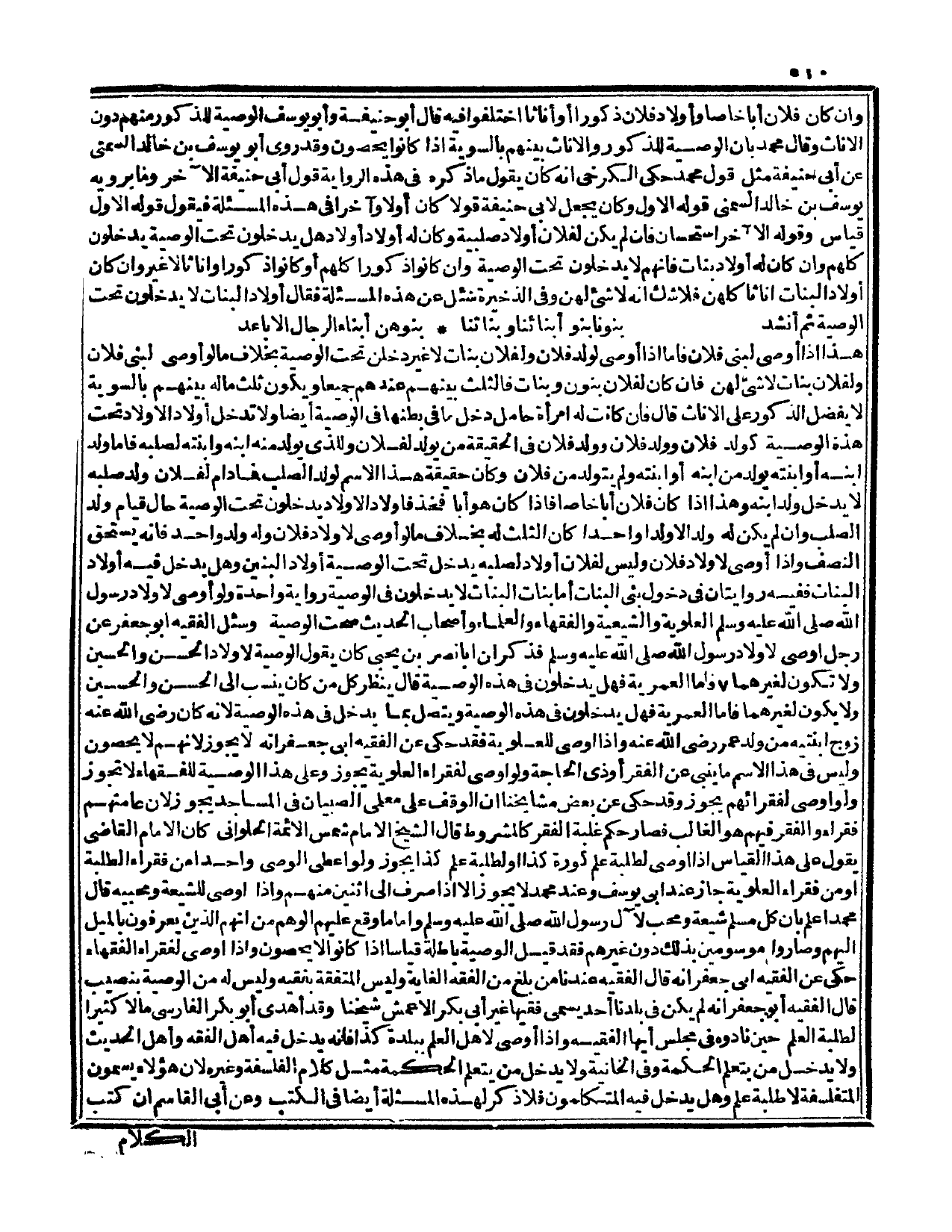 وَلَوْ أَوْصَى لِأَوْلَادِ رَسُولِ اللَّهِ - صَلَّى اللَّهُ عَلَيْهِ وَسَلَّمَ - الْعَلَوِيَّةُ، وَالشِّيعِيَّةُ، وَالْفُقَهَاءُ، وَالْعُلَمَاءُ وَأَصْحَابُ الْحَدِيثِ صَحَّتْ الْوَصِيَّةُ وَسُئِلَ الْفَقِيهُ أَبُو جَعْفَرٍ عَنْ رَجُلٍ أَوْصَى لِأَوْلَادِ رَسُولِ اللَّهِ - صَلَّى اللَّهُ عَلَيْهِ وَسَلَّمَ - فَذَكَرَ أَنَّ أَبَا نَصْرِ بْنَ يَحْيَى كَانَ يَقُولُ الْوَصِيَّةُ لِأَوْلَادِ الْحَسَنِ، وَالْحُسَيْنِ وَلَا تَكُونُ لِغَيْرِهِمَا فَأَمَّا الْعُمَرِيَّةُ فَهَلْ يَدْخُلُونَ فِي هَذِهِ الْوَصِيَّةِ قَالَ يَنْظُرُ كُلُّ مَنْ كَانَ يُنْسَبُ إلَى الْحَسَنِ، وَالْحُسَيْنِ وَلَا يَكُونُ لِغَيْرِهِمَا فَأَمَّا الْعُمَرِيَّةُ فَهَلْ يَدْخُلُونَ فِي هَذِهِ الْوَصِيَّةِ وَيَتَّصِلُ بِمَا يَدْخُلُ فِي هَذِهِ الْوَصِيَّةِ؛ لِأَنَّهُ كَانَ - رَضِيَ اللَّهُ عَنْهُ - زَوْجَ ابْنَتَيْهِ مِنْ وَلَدِ عُمَرَ - رَضِيَ اللَّهُ عَنْهُ -.