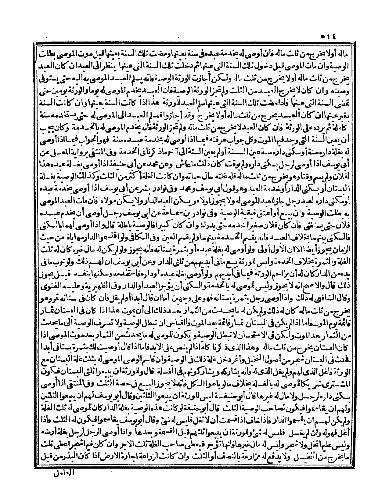 وَعَنْ مُحَمَّدٍ عَنْ أَبِي حَنِيفَةَ إذَا أَوْصَى بِغَلَّةِ عَبْدِهِ هَذَا لِفُلَانٍ وَلَمْ يُسَمِّ وَقْتًا وَهُوَ يَخْرُجُ مِنْ ثُلُثِ مَالِهِ فَلَهُ غَلَّتُهُ حَالَ حَيَاتِهِ، وَإِنْ كَانَتْ الْغَلَّةُ أَكْثَرَ مِنْ الثُّلُثِ وَكَذَلِكَ الْوَصِيَّةُ بِغَلَّةِ الْبُسْتَانِ أَوْ بِسُكْنَى الدَّارِ أَوْ خِدْمَةِ الْعَبْدِ، وَهُوَ قَوْلُ أَبِي يُوسُفَ وَمُحَمَّدٍ، وَفِي نَوَادِرِ بِشْرٍ عَنْ أَبِي يُوسُفَ إذَا أَوْصَى بِخِدْمَةِ عَبْدِهِ أَوْ سُكْنَى دَارِهِ لِعَبْدِ رَجُلٍ جَازَ لِلْعَبْدِ الْمُوصَى لَهُ وَلَا يَجُوزُ لِمَوْلَاهُ وَيَسْكُنُ الْعَبْدُ الدَّارَ وَلَا يَسْكُنُ مَوْلَاهُ فَإِنْ مَاتَ الْعَبْدُ الْمُوصَى بِهِ بَطَلَتْ الْوَصِيَّةُ وَإِنْ بِيعَ أَوْ أُعْتِقَ بَقِيَتْ الْوَصِيَّةُ، وَفِي نَوَادِرِ ابْنِ سِمَاعَةَ عَنْ أَبِي يُوسُفَ رَجُلٌ أَوْصَى أَنْ يَخْدُمَ عَبْدُهُ فُلَانًا حَتَّى يَسْتَغْنِيَ فَإِنْ كَانَ فُلَانٌ صَغِيرًا خَدَمَهُ حَتَّى يُدْرِكَ وَإِنْ كَانَ كَبِيرًا فَالْوَصِيَّةُ بَاطِلَةٌ قَالَ: وَإِذَا أَوْصَى لَهُمَا بِالسُّكْنَى فَالسُّكْنَى بَيْنَهُمَا بِخِلَافِ الْعَبْدِ فَإِنَّهُ يُقَسِّمُ الْخِدْمَةَ بَيْنَهُمَا وَلَمْ يُقَسِّمْ الْعَيْنَ.