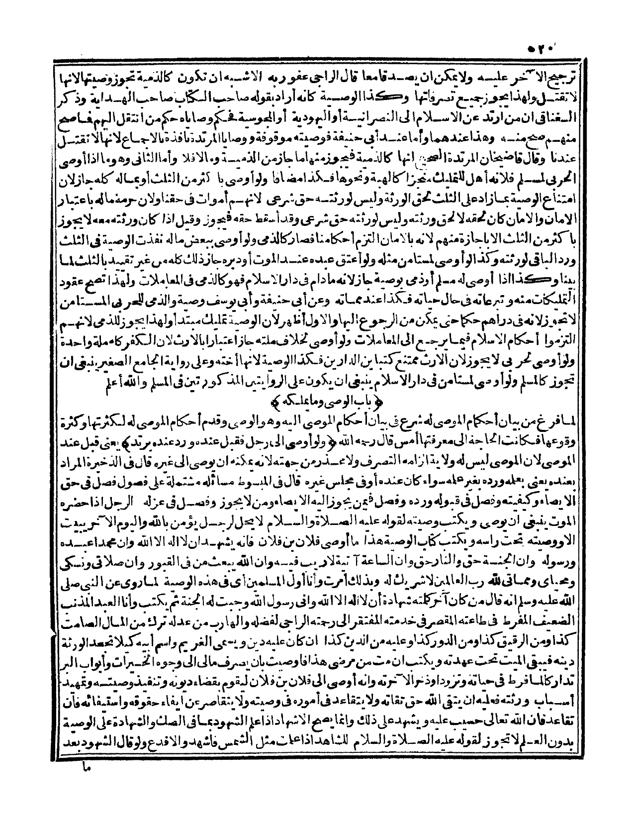 قَالَ - رَحِمَهُ اللَّهُ - (وَلَوْ أَوْصَى إلَى رَجُلٍ فَقَبِلَ عِنْدَهُ وَرَدَّ عِنْدَهُ يَرْتَدُّ) يَعْنِي قَبِلَ عِنْدَ الْمُوصِي؛ لِأَنَّ الْمُوصِيَ لَيْسَ لَهُ وِلَايَةُ إلْزَامِهِ التَّصَرُّفَ وَلَا عُذْرَ مِنْ جِهَتِهِ؛ لِأَنَّهُ يُمْكِنُهُ أَنْ يُوَصِّيَ إلَى غَيْرِهِ قَالَ فِي الذَّخِيرَةِ: الْمُرَادُ بِعِنْدِهِ يَعْنِي بِعِلْمِهِ وَرَدَّهُ بِغَيْرِ عِلْمِهِ سَوَاءٌ كَانَ عِنْدَهُ أَوْ فِي مَجْلِسٍ غَيْرِهِ، قَالَ فِي الْمَبْسُوطِ مَسَائِلُهُ مُشْتَمِلَةٌ عَلَى فُصُولِ فَصْلٍ فِي حَقِّ الْإِيصَاءِ وَكَيْفِيَّتُهُ، وَفَصْلٍ فِي قَبُولِهِ وَرَدِّهِ، وَفَصْلٍ فِيمَنْ يَجُوزُ إلَيْهِ الْإِيصَاءُ وَمَنْ لَا يَجُوزُ، وَفَصْلٍ فِي عَزْلِهِ الرَّجُلَ إذَا حَضَرَهُ الْمَوْتُ يَنْبَغِي أَنْ يُوَصِّيَ وَيَكْتُبَ وَصِيَّتَهُ لِقَوْلِهِ - عَلَيْهِ الصَّلَاةُ وَالسَّلَامُ - «لَا يَحِلُّ لِرَجُلٍ يُؤْمِنُ بِاَللَّهِ، وَالْيَوْمِ الْآخِرِ يَبِيتُ إلَّا وَوَصِيَّتُهُ تَحْتَ رَأْسِهِ» وَيَكْتُبُ كِتَابَ الْوَصِيَّةِ هَذَا مَا أَوْصَى فُلَانُ بْنُ فُلَانٍ فَإِنَّهُ يَشْهَدُ: أَنْ لَا إلَهَ إلَّا اللَّهُ، وَأَنَّ مُحَمَّدًا اعَبْدُهُ وَرَسُولُهُ وَأَنَّ الْجَنَّةَ حَقٌّ، وَالنَّارَ حَقٌّ وَأَنَّ السَّاعَةَ آتِيَةٌ لَا رَيْبَ فِيهَا وَأَنَّ اللَّهَ يَبْعَثُ مَنْ فِي الْقُبُورِ، وَأَنَّ صَلَاتِي وَنُسُكِي وَمَحْيَايَ وَمَمَاتِي لِلَّهِ رَبِّ الْعَالَمِينَ لَا شَرِيكَ لَهُ وَبِذَلِكَ أُمِرْت وَأَنَا أَوَّلُ الْمُسْلِمِينَ أَيْ فِي هَذِهِ الْوَصِيَّةِ لِمَا رُوِيَ عَنْ النَّبِيِّ - صَلَّى اللَّهُ عَلَيْهِ وَسَلَّمَ - أَنَّهُ قَالَ «مَنْ كَانَ آخِرُ كَلِمَتِهِ شَهَادَةَ أَنْ لَا إلَهَ إلَّا اللَّهُ وَأَنِّي رَسُولُ اللَّهِ وَجَبَتْ لَهُ الْجَنَّةُ» ثُمَّ يَكْتُبُ وَأَنَا الْعَبْدُ الْمُذْنِبُ الضَّعِيفُ الْمُفَرِّطُ فِي طَاعَتِهِ الْمُقَصِّرُ فِي خِدْمَتِهِ الْمُفْتَقِرُ إلَى رَحْمَتِهِ الرَّاجِي لِفَضْلِهِ، وَالْهَارِبُ مِنْ عَدْلِهِ تَرَكَ مِنْ الْمَالِ الصَّامِتِ كَذَا، وَمِنْ الرَّقِيقِ كَذَا وَمِنْ الدُّورِ كَذَا وَعَلَيْهِ مِنْ الدَّيْنِ.