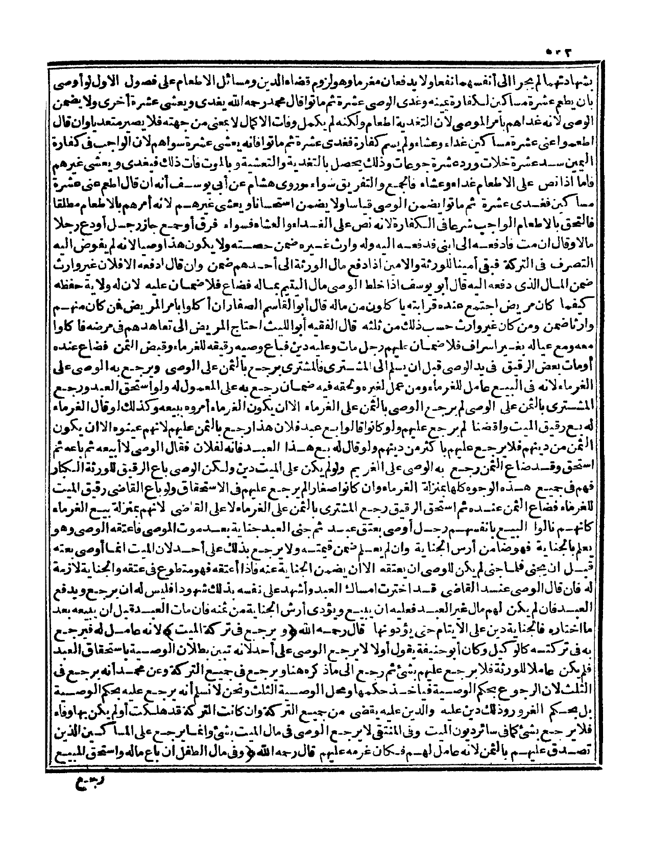 وَمَسَائِلُ الْإِطْعَامِ عَلَى فُصُولٍ: الْأَوَّلِ: لَوْ أَوْصَى بِأَنْ يُطْعِمَ عَشَرَةَ مَسَاكِينَ لِكَفَّارَةِ يَمِينِهِ، وَغَدَّى الْوَصِيُّ عَشَرَةَ ثُمَّ مَاتُوا قَالَ مُحَمَّدٌ - رَحِمَهُ اللَّهُ - يُغَدِّي وَيُعَشِّي عَشَرَةً أُخْرَى وَلَا يَضْمَنُ الْوَصِيُّ؛ لِأَنَّهُ غَدَّاهُمْ بِأَمْرِ الْمُوصِي؛ لِأَنَّ التَّغْدِيَةَ إطْعَامٌ وَلَكِنَّهُ لَمْ يَكْمُلْ، وَفَاتَ الْإِكْمَالُ لَا بِمَعْنًى مِنْ جِهَتِهِ فَلَا يَصِيرُ مُتَعَدِّيًا وَإِنْ قَالَ: أَطْعِمُوا عَنِّي عَشَرَةَ مَسَاكِينَ غَدَاءً وَعَشَاءً، وَلَمْ يُسَمِّ كَفَّارَةً فَغَدَّى عَشَرَةً ثُمَّ مَاتُوا فَإِنَّهُ يُعَشِّي عَشَرَةً سِوَاهُمْ؛ لِأَنَّ الْوَاجِبَ فِي كَفَّارَةِ الْيَمِينِ سَدُّ عَشَرَةِ خُلَّاتٍ وَرَدُّ عَشَرَةِ جَوْعَاتٍ وَذَلِكَ يَحْصُلُ بِالتَّغْدِيَةِ، وَالتَّعْشِيَةِ وَبِالْمَوْتِ فَاتَ ذَلِكَ فَيُغَدِّي وَيُعَشِّي غَيْرَهُمْ فَأَمَّا إذَا نَصَّ عَلَى الْإِطْعَامِ غَدَاءً وَعَشَاءً فَالْجَمْعُ، وَالتَّفْرِيقُ سَوَاءٌ وَرَوَى هِشَامٌ عَنْ أَبِي يُوسُفَ أَنَّهُ إنْ قَالَ: أَطْعِمْ عَنِّي عَشَرَةَ مَسَاكِينَ فَغَدَّى عَشَرَةً ثُمَّ مَاتُوا يَضْمَنُ الْوَصِيُّ قِيَاسًا وَلَا يَضْمَنُ اسْتِحْسَانًا وَيُعَشِّي غَيْرَهُمْ؛ لِأَنَّهُ أَمَرَهُمْ بِالْإِطْعَامِ مُطْلَقًا فَالْتَحَقَ بِالْإِطْعَامِ الْوَاجِبِ شَرْعًا فِي الْكَفَّارَةِ؛ لِأَنَّهُ نَصَّ عَلَى الْغَدَاءِ، وَالْعِشَاءِ فَسَوَاءٌ فَرَّقَ أَوْ جَمَعَ جَازَ.