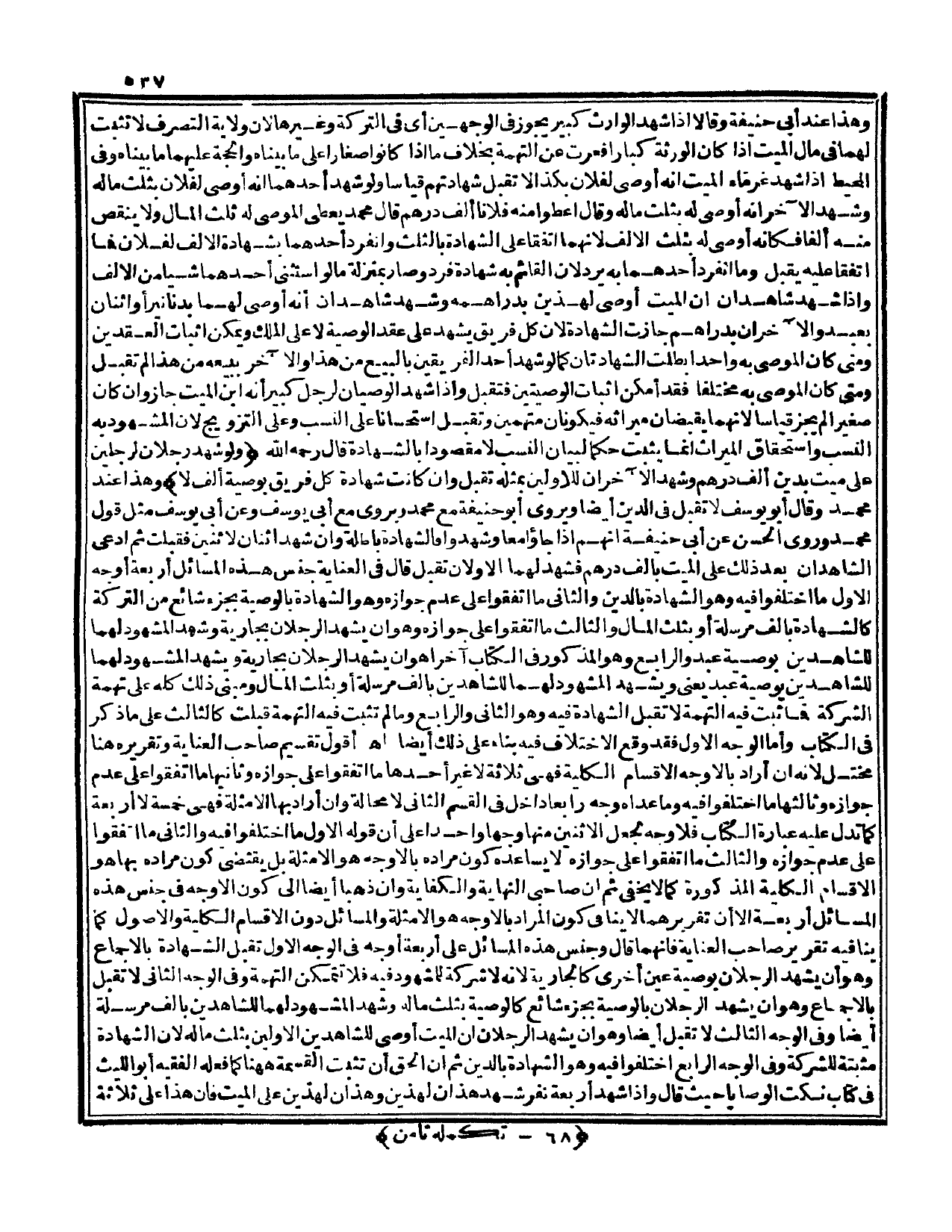 كَمَا لَا يَخْفَى ثَمَّ أَنَّ صَاحِبَيْ النِّهَايَةِ، وَالْكِفَايَةِ وَإِنْ ذَهَبَا أَيْضًا إلَى كَوْنِ الْأَوْجُهِ فِي جِنْسِ هَذِهِ الْمَسَائِلِ أَرْبَعَةً إلَّا أَنَّ تَقْرِيرَهُمَا لَا يُنَافِي كَوْنَ الْمُرَادِ بِالْأَوْجُهِ هُوَ الْأَمْثِلَةُ، وَالْمَسَائِلُ دُونَ الْأَقْسَامِ الْكُلِّيَّةِ، وَالْأُصُولِ كَمَا يُنَافِيهِ تَقْرِيرُ صَاحِبِ الْعِنَايَةِ فَإِنَّهُمَا قَالَ وَجِنْسُ هَذِهِ الْمَسَائِلِ عَلَى أَرْبَعَةِ أَوْجُهٍ فِي الْوَجْهِ الْأَوَّلِ تُقْبَلُ الشَّهَادَةُ بِالْإِجْمَاعِ وَهُوَ أَنْ يَشْهَدَ الرَّجُلَانِ بِوَصِيَّةِ عَيْنٍ أُخْرَى كَالْجَارِيَةِ؛ لِأَنَّهُ لَا شَرِكَةَ لِلْمَشْهُودِ فِيهِ فَلَا تَتَمَكَّنُ التُّهْمَةُ، وَفِي الْوَجْهِ الثَّانِي: لَا تُقْبَلُ بِالْإِجْمَاعِ وَهُوَ أَنْ يَشْهَدَ الرَّجُلَانِ بِالْوَصِيَّةِ بِجُزْءٍ شَائِعٍ كَالْوَصِيَّةِ بِثُلُثِ مَالِهِ وَشَهِدَ الْمَشْهُودُ لَهُمَا لِلشَّاهِدَيْنِ بِأَلْفٍ مُرْسَلَةٍ أَيْضًا، وَفِي الْوَجْهِ الثَّالِثِ لَا تُقْبَلُ أَيْضًا وَهُوَ أَنْ يَشْهَدَ الرَّجُلَانِ أَنَّ الْمَيِّتَ أَوْصَى لِلشَّاهِدَيْنِ الْأَوَّلَيْنِ بِثُلُثِ مَالِهِ؛ لِأَنَّ الشَّهَادَةَ مُثْبِتَةٌ لِلشَّرِكَةِ، وَفِي الْوَجْهِ الرَّابِعِ اخْتَلَفُوا فِيهِ وَهُوَ الشَّهَادَةُ بِالدَّيْنِ ثُمَّ إنَّ الْحَقَّ أَنْ تَثْبُتَ الْقِسْمَةُ هَاهُنَا كَمَا فَعَلَهُ الْفَقِيهُ أَبُو اللَّيْثِ فِي كِتَابِ نُكَتِ الْوَصَايَا حَيْثُ قَالَ: وَإِذَا شَهِدَ أَرْبَعَةُ نَفَرٍ شَهِدَ هَذَانِ لِهَذَيْنِ، وَهَذَانِ لِهَذَيْنِ عَلَى الْمَيِّتِ فَإِنَّ هَذَا عَلَى ثَلَاثَةِ